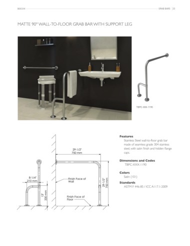 MATTE 90° WALL-T O-FLOOR GRAB BAR WITH SUPPORT LEG