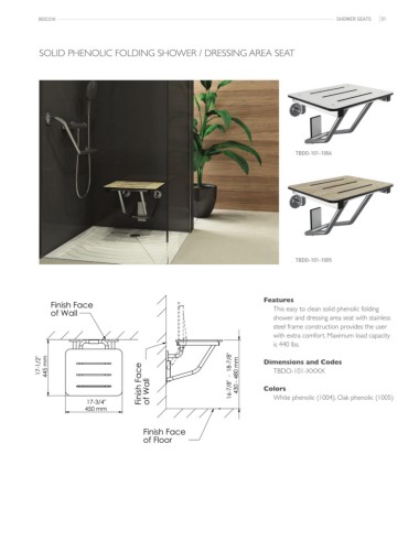 SOLID PHENOLIC FOLDING SHOWER / DRESSING AREA SEAT