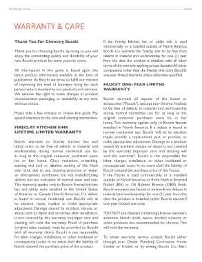 Bocchi warrants its fireclay kitchen, bar, and make appropriate adjustment. Damage to a product