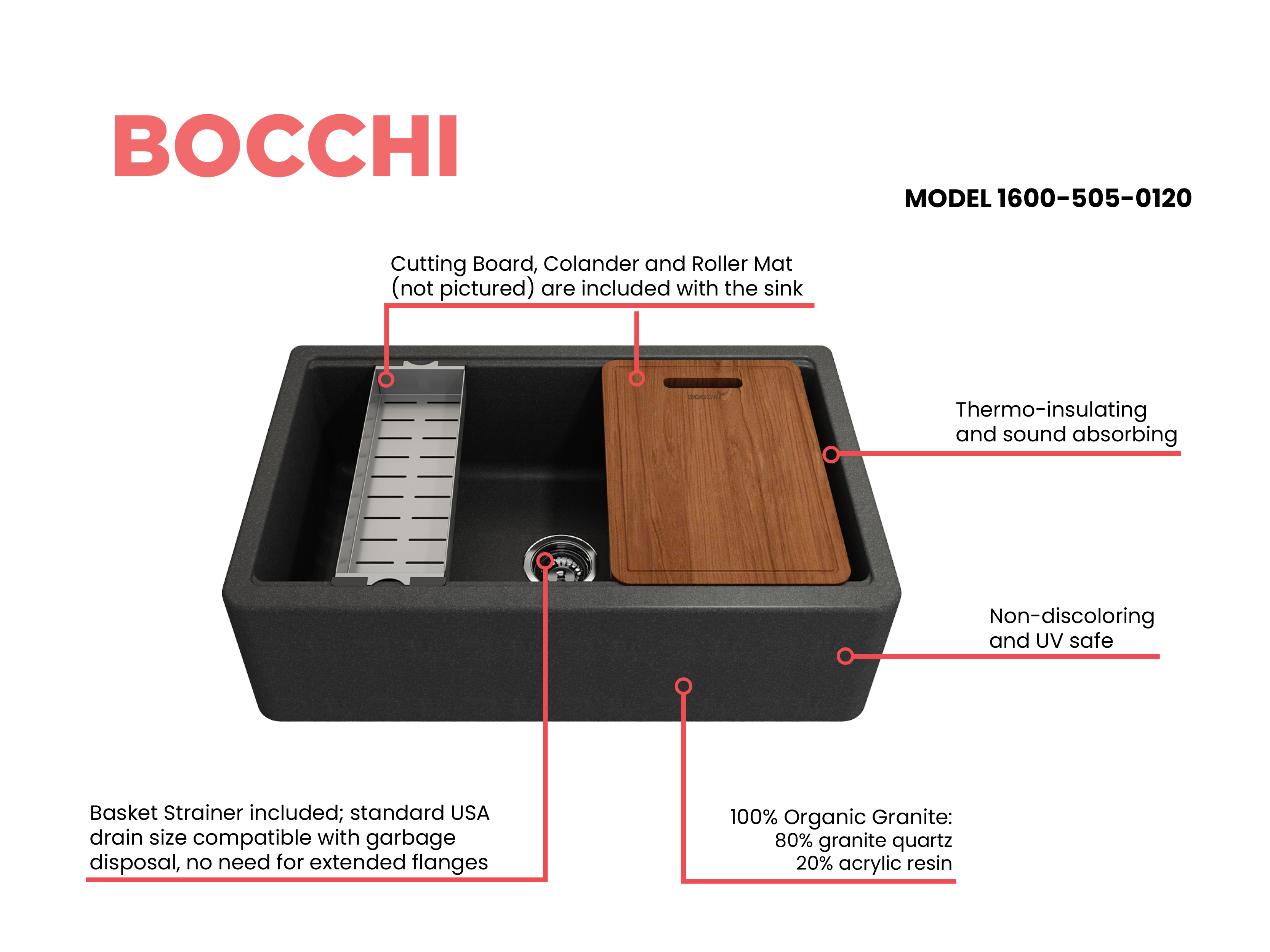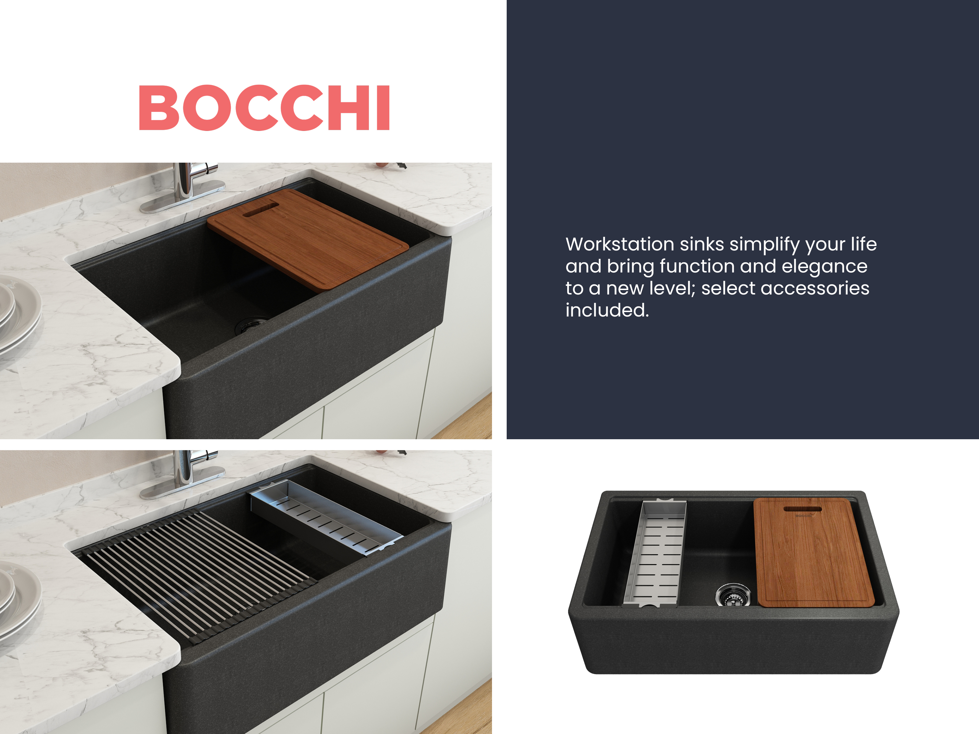 BOCCHI Granite Sinks bring a timeless, durable and all-natural material to your home with all the latest in technology and style. Crafted in Italy, BOCCHI Granite Sinks are anti-bacterial, odor neutralizing, impact and scratch proof and won’t discolor due to sun while resisting stains and other buildup. Unique installation options allow homeowners to choose their style and personalize their homes.
