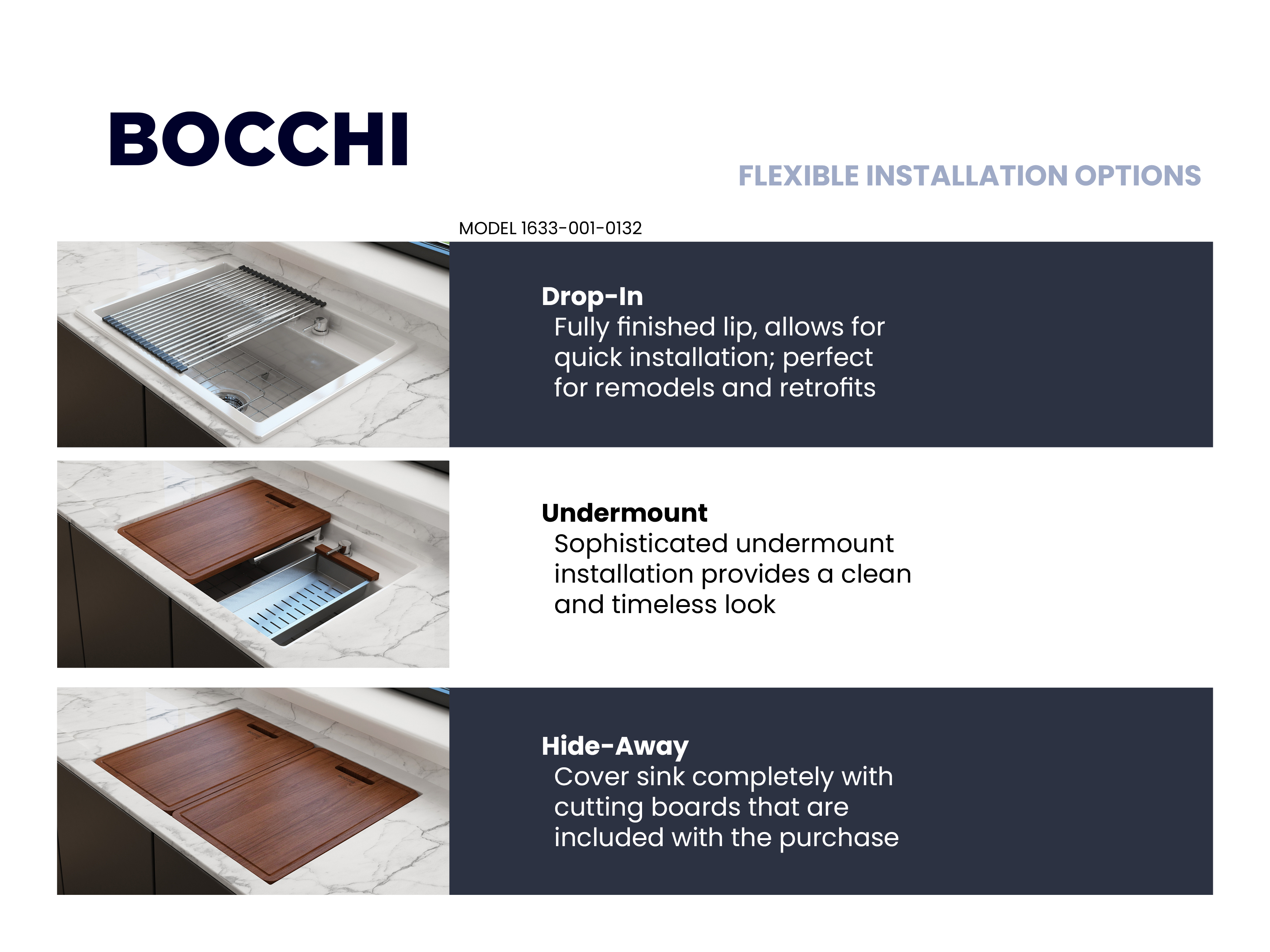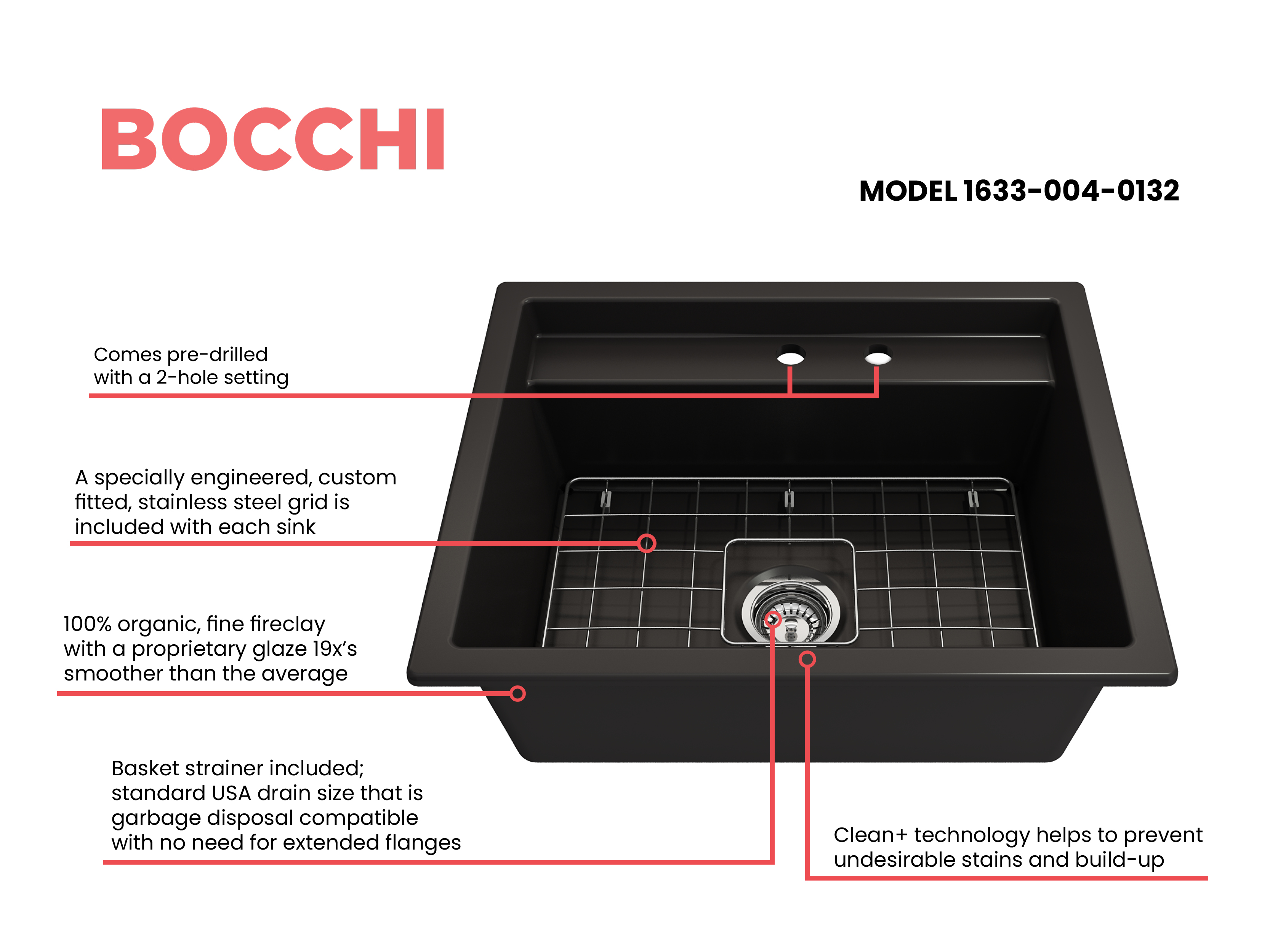 BOCCHI Farmhouse Sinks bring back the ultimate material to your kitchen. Fireclay, a 100% natural organic and recyclable material used by craftsman for centuries to create timeless appliances has now returned to your kitchen. With the firing in our kilns up to 2000°F temperatures, Fireclay becomes the most durable material used in today's kitchens. Thus, dealing with extreme heat coming from pots and pans is definitely not a problem. Due to their special glaze coating fused with the fireclay body, our sinks have a non-porous, uniform, scratch and stain resistant surface. With its protective bottom grid and distinctive looks, BOCCHI Farmhouse Sinks are truly crafted to match your design and functional desires.