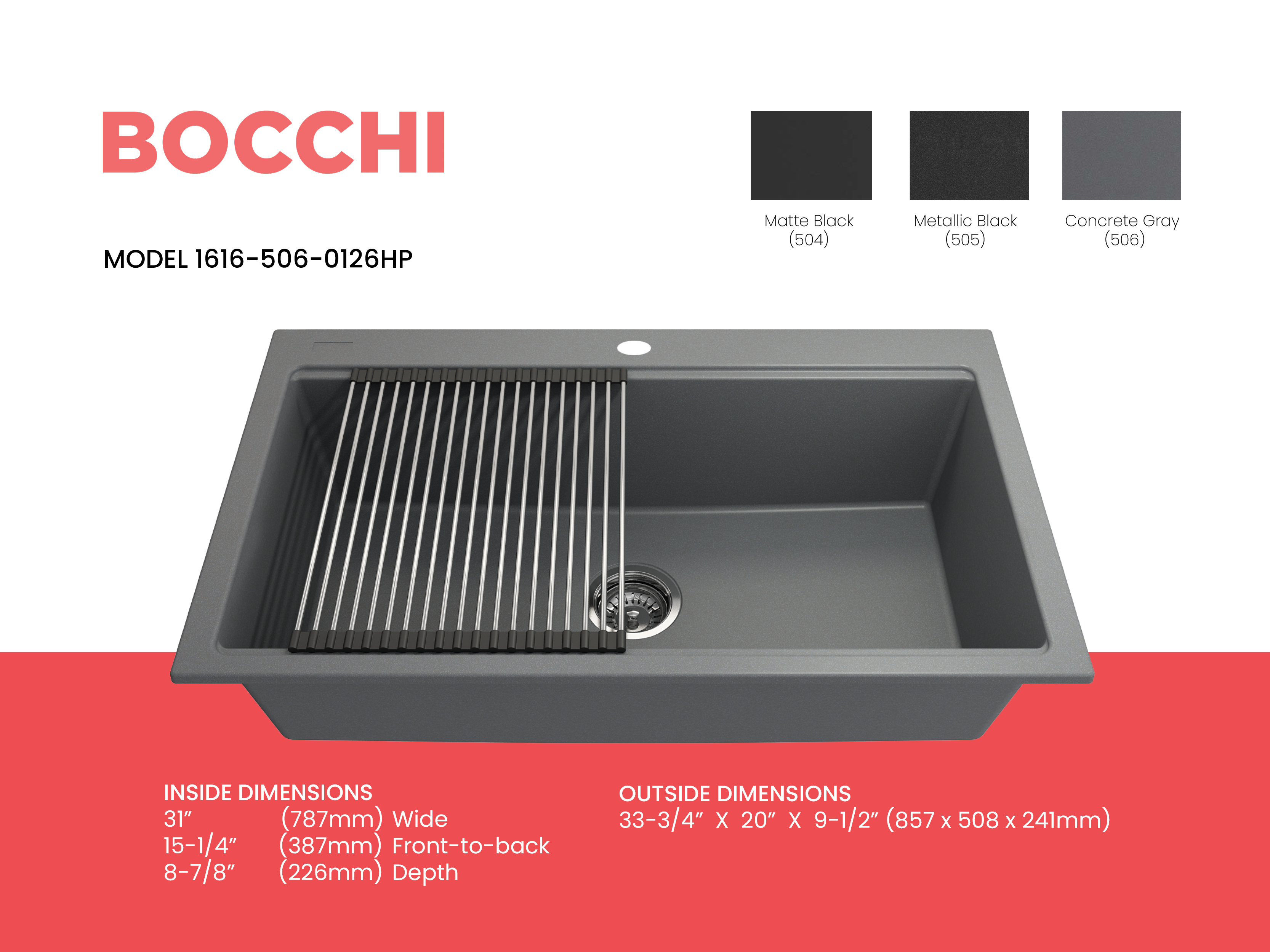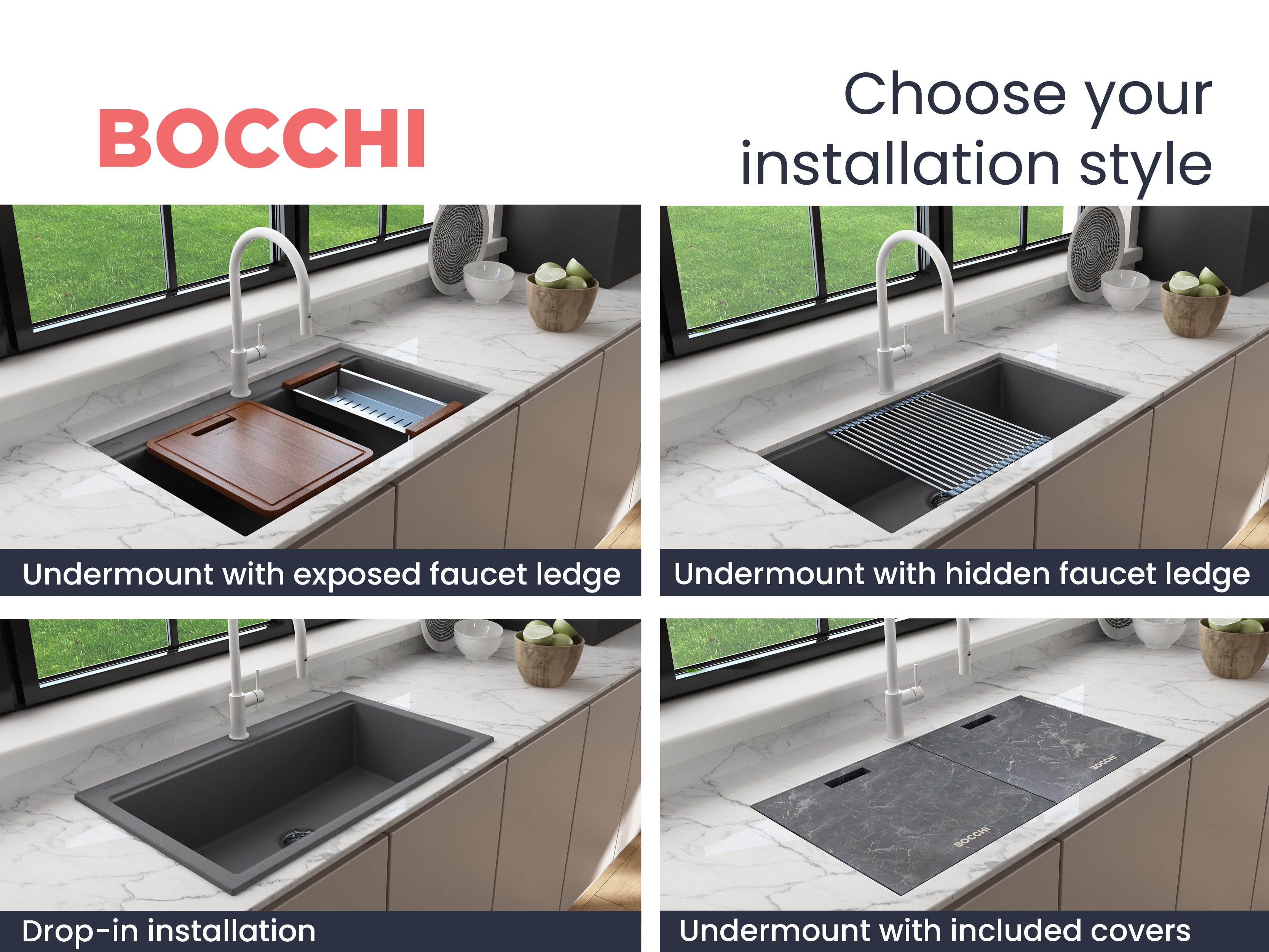 BOCCHI Granite Sinks bring a timeless, durable and all-natural material to your home with all the latest in technology and style. Crafted in Italy, BOCCHI Granite Sinks are anti-bacterial, odor neutralizing, impact and scratch proof and won’t discolor due to sun while resisting stains and other buildup. Unique installation options allow homeowners to choose their style and personalize their homes.