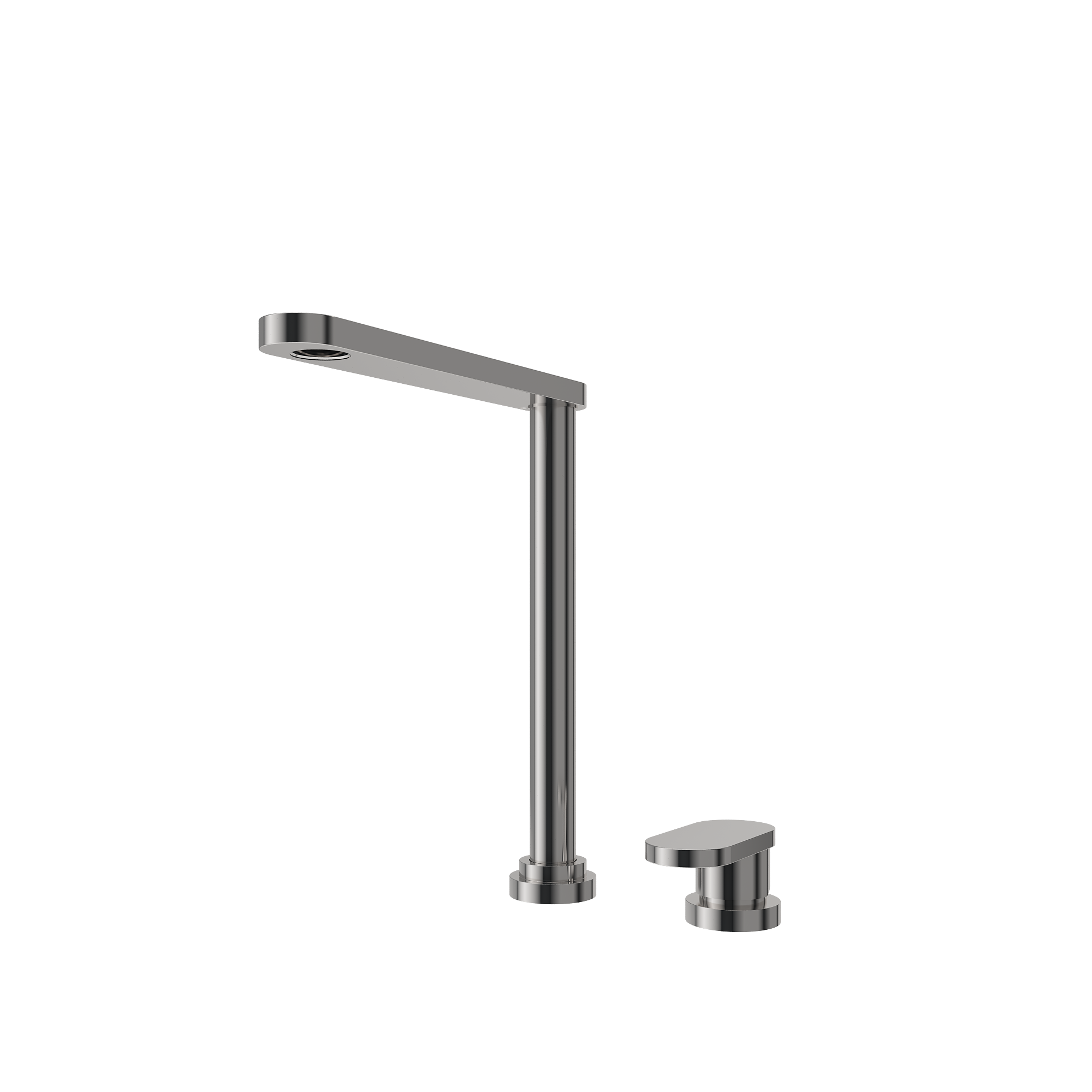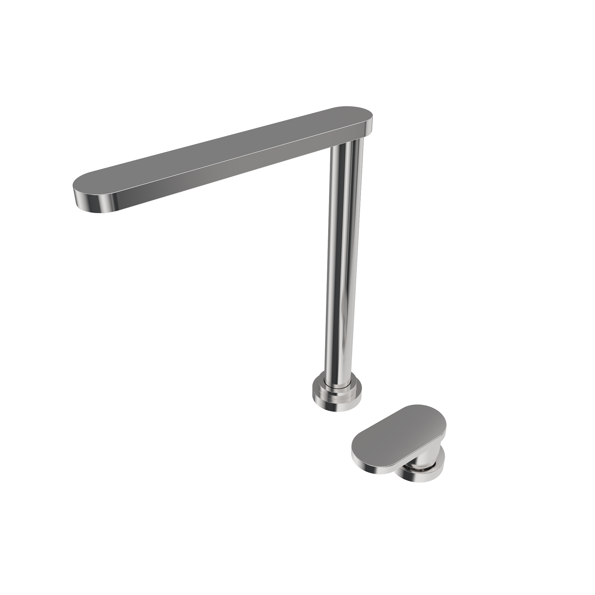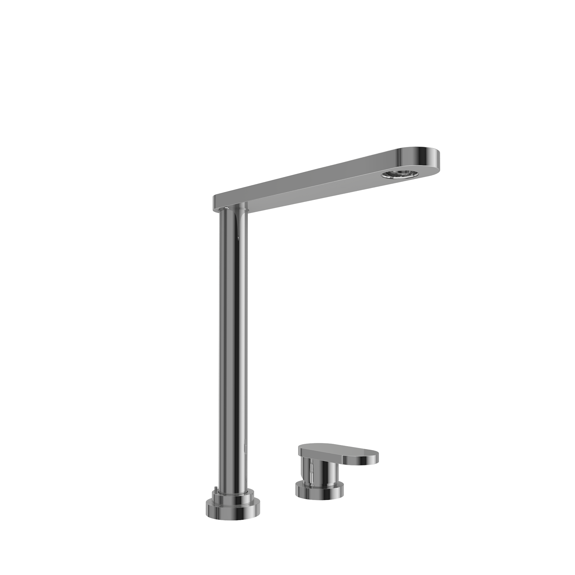 Telescopic kitchen faucet with ceramic cartridges and brass body. Features standard spray with side control.