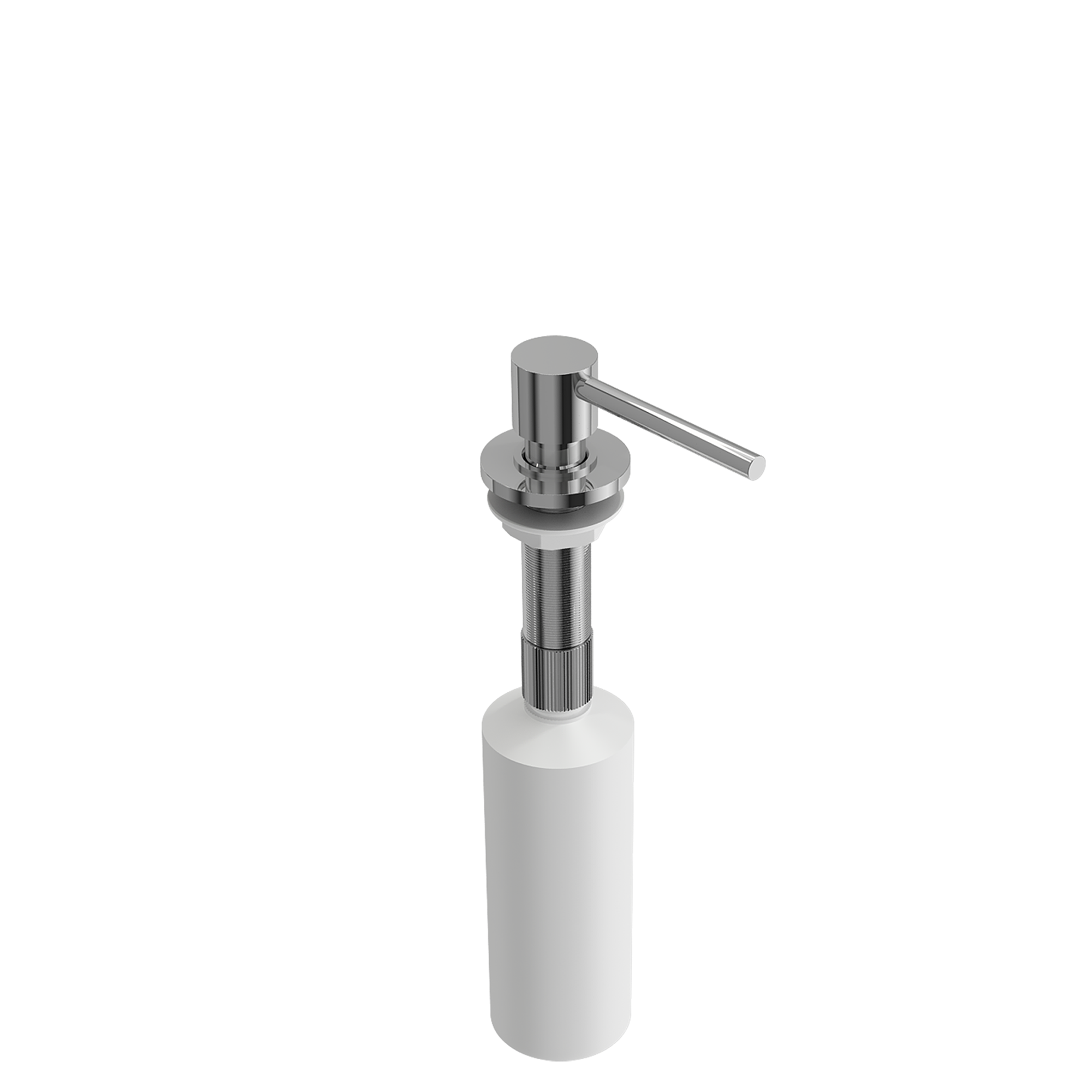 Brass soap dispenser can dicharge liquid soap, dishwashing liquid, or hand lotion in a convenient dispenser with a modern design matching BOCCHI kitchen faucets. The self-priming pump is constructed from 100% lead-free brass for maximum durability. The pump swivels 360° and is refillable from above for added convenience.