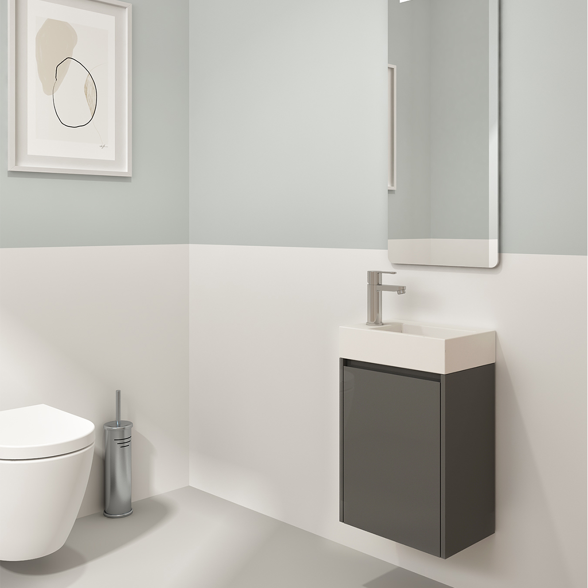 Milano 14" Bath cabinet, Anthracite, to use with Milano sink model 1419; door is hinged on the right-side-facing.