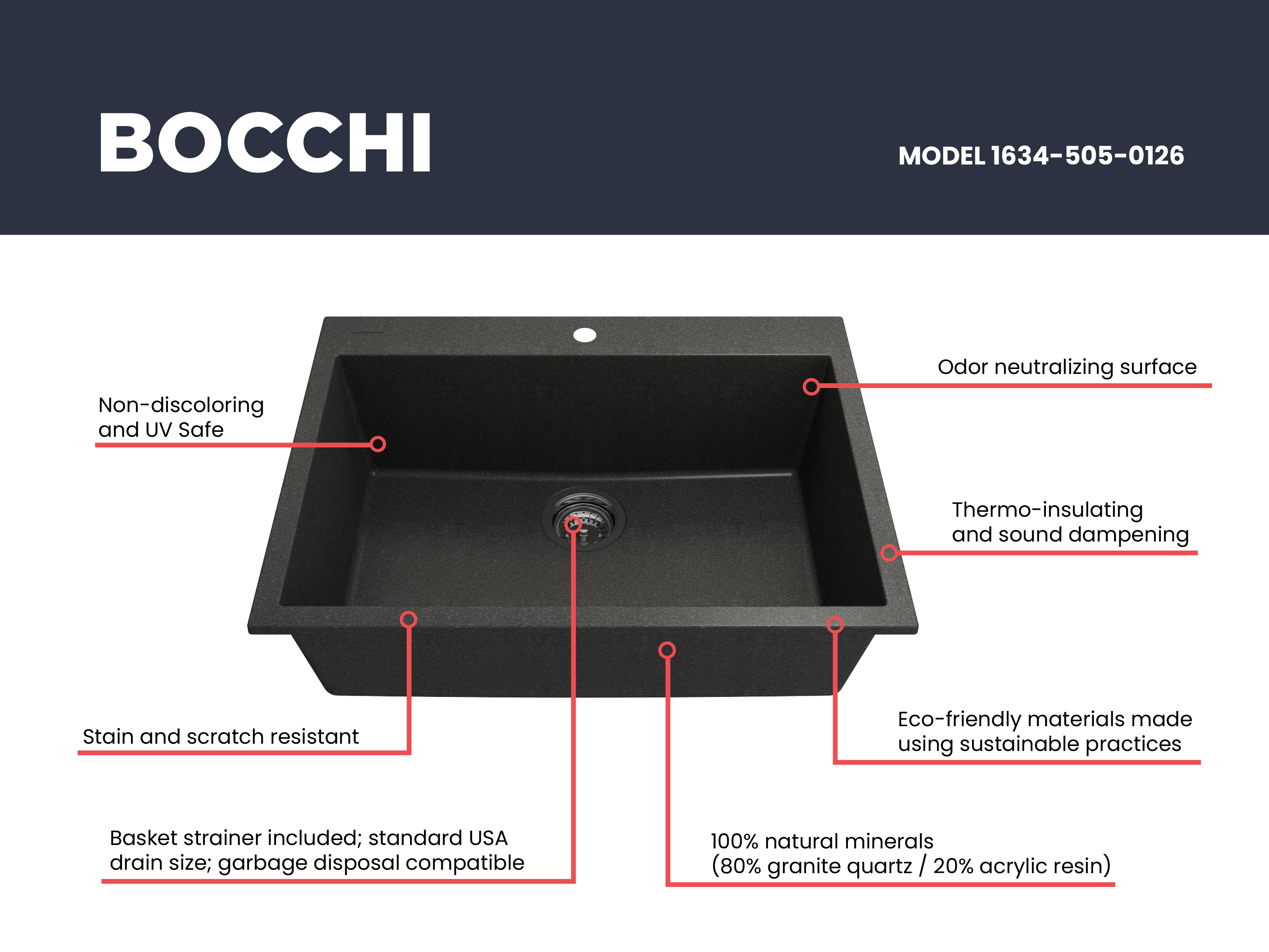 BOCCHI Granite Sinks bring a timeless, durable and all-natural material to your home with all the latest in technology and style. Crafted in Italy, BOCCHI Granite Sinks are anti-bacterial, odor neutralizing, impact and scratch proof and won’t discolor due to sun while resisting stains and other buildup. Unique installation options allow homeowners to choose their style and personalize their homes.