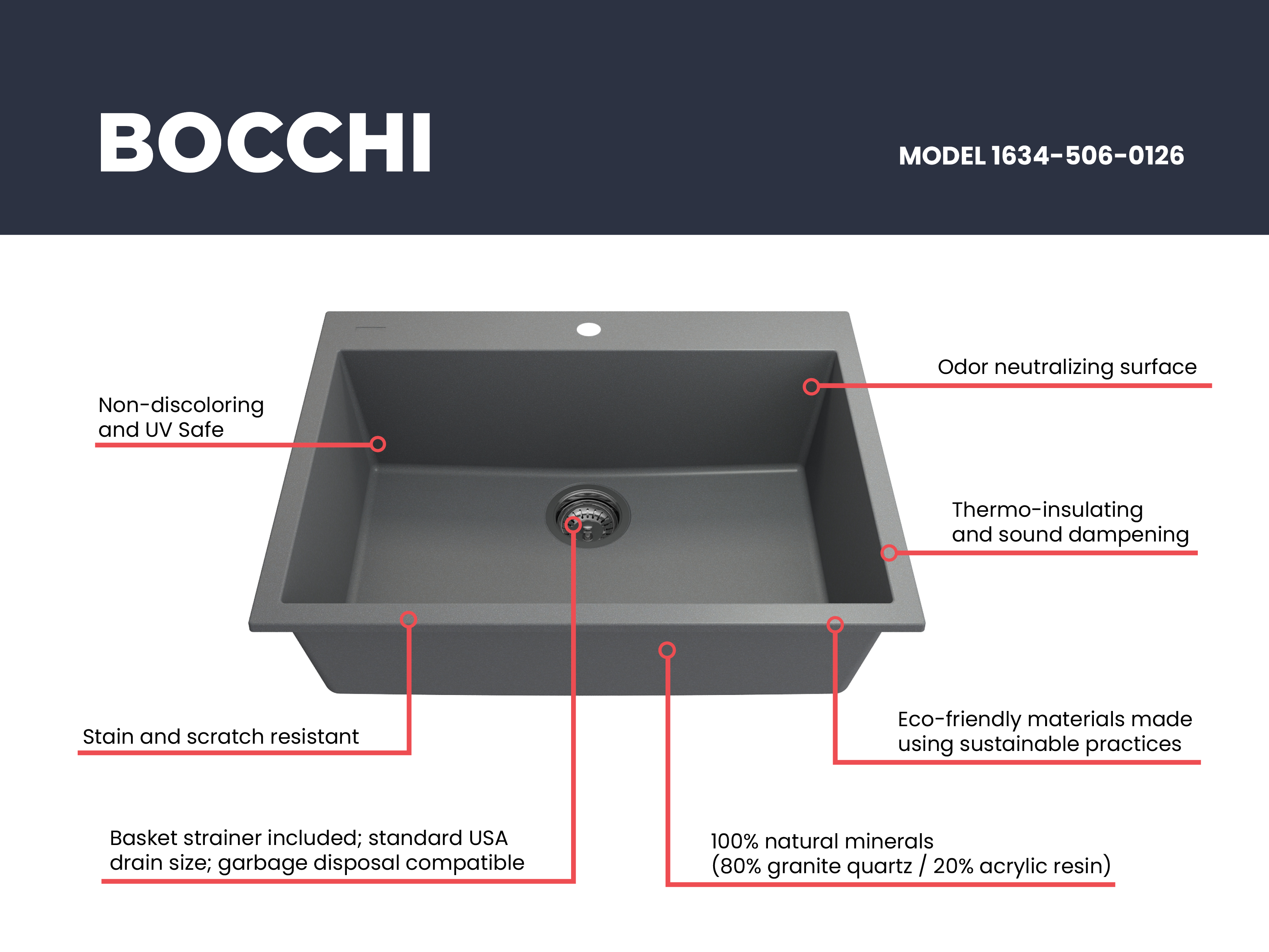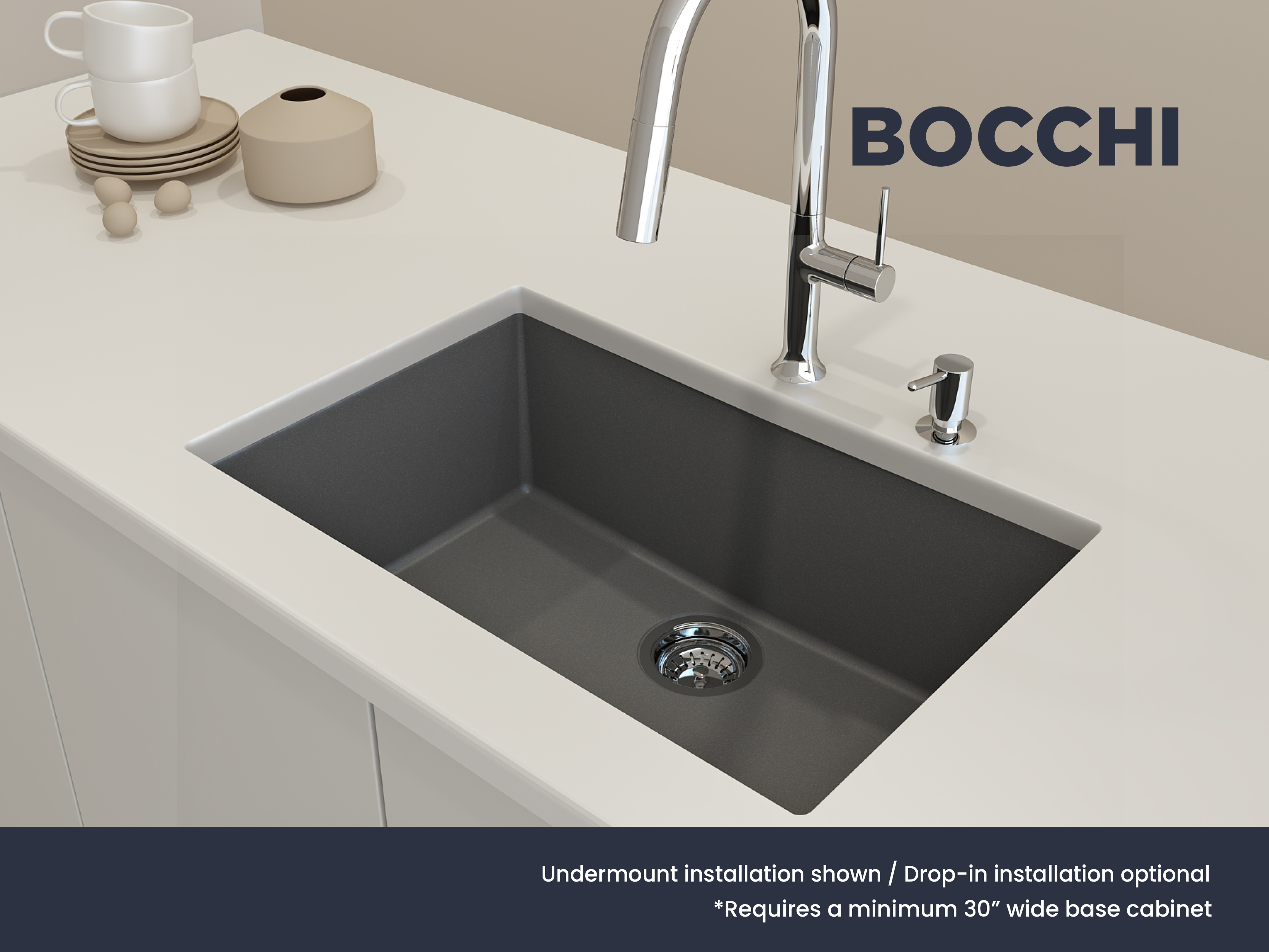 BOCCHI Granite Sinks bring a timeless, durable and all-natural material to your home with all the latest in technology and style. Crafted in Italy, BOCCHI Granite Sinks are anti-bacterial, odor neutralizing, impact and scratch proof and won’t discolor due to sun while resisting stains and other buildup. Unique installation options allow homeowners to choose their style and personalize their homes.