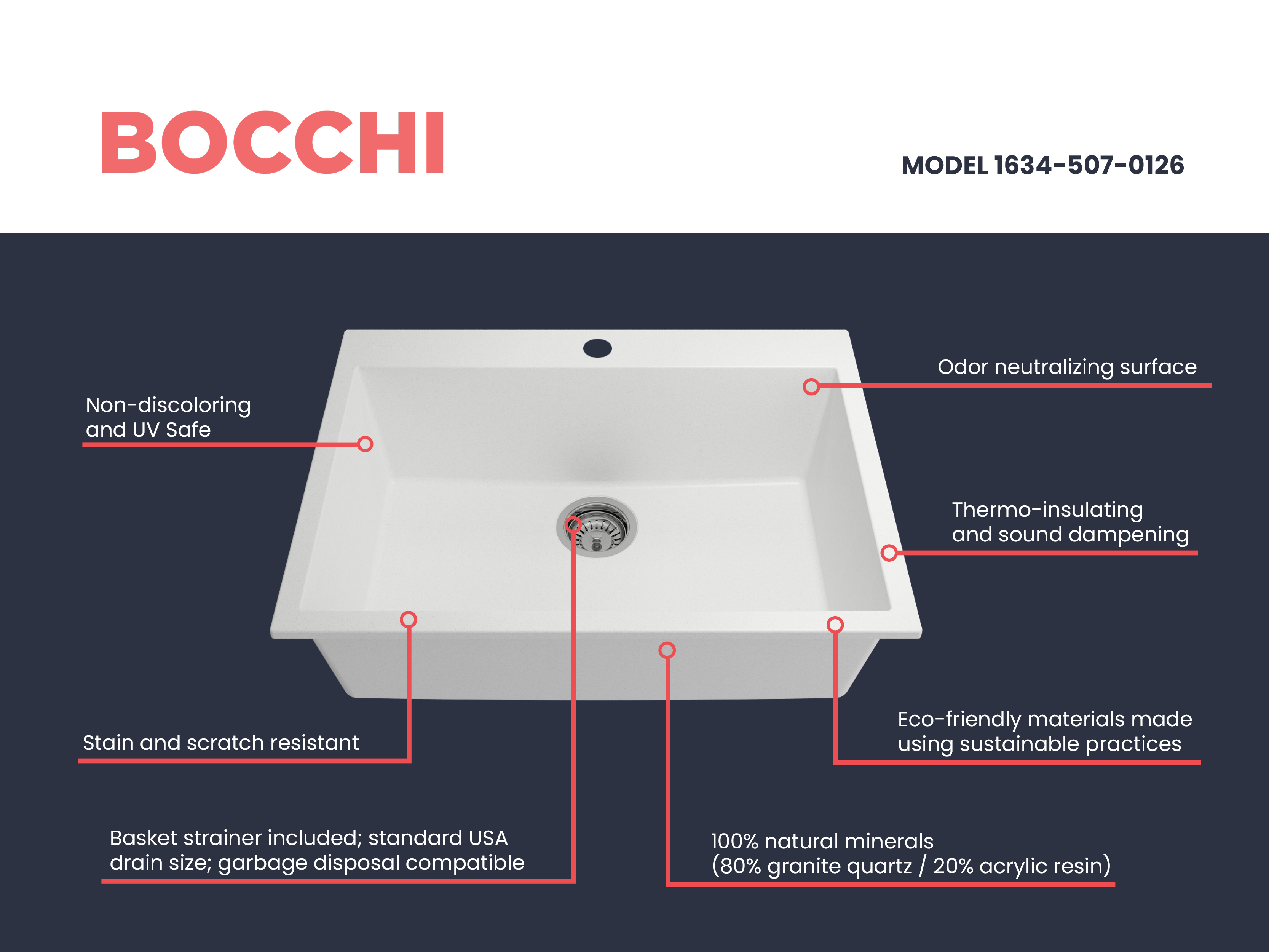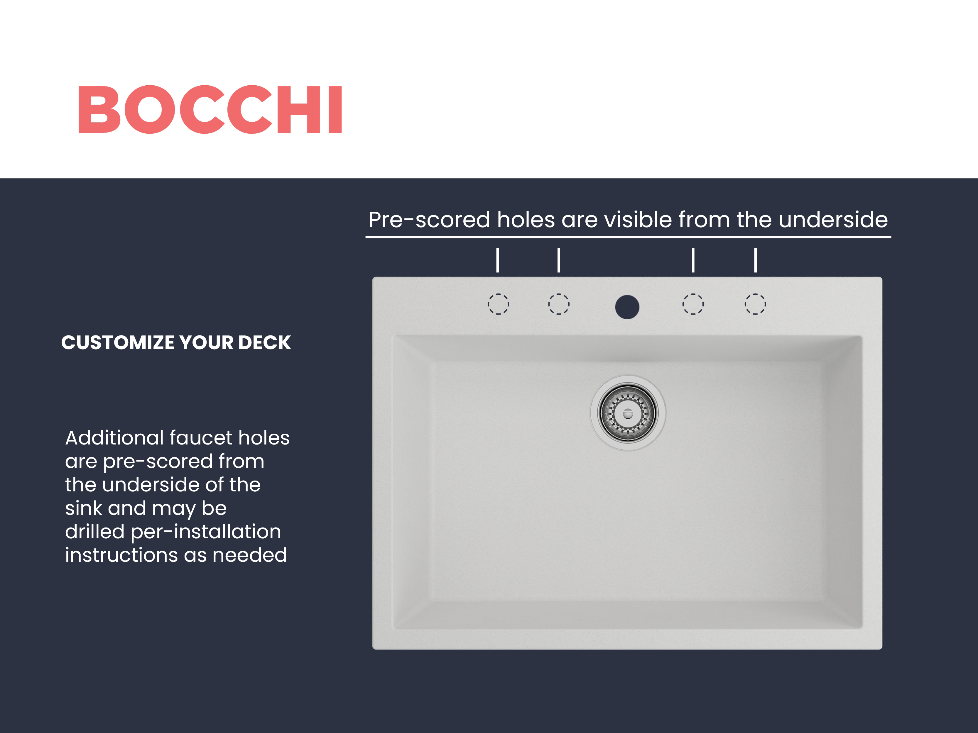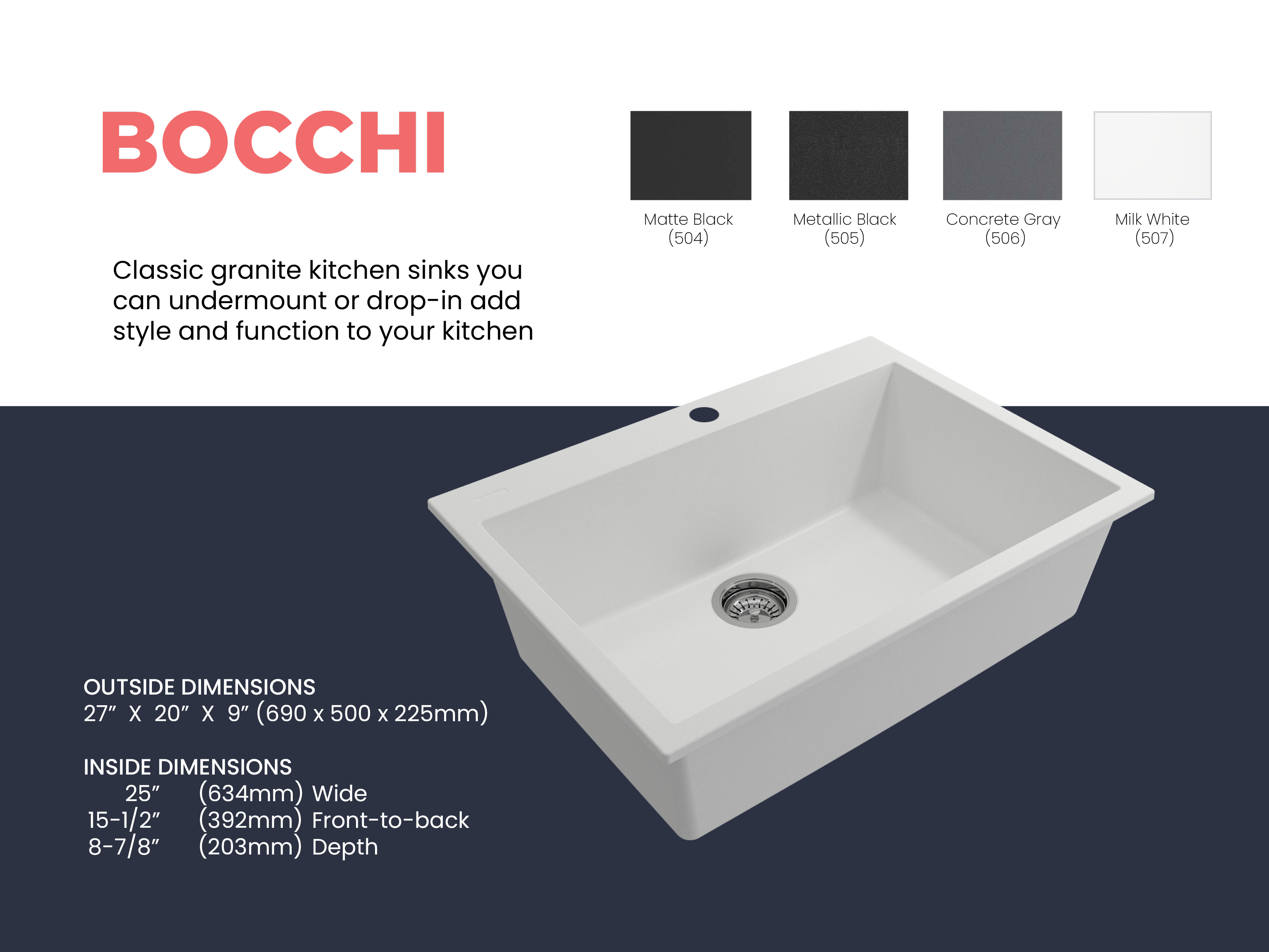BOCCHI Granite Sinks bring a timeless, durable and all-natural material to your home with all the latest in technology and style. Crafted in Italy, BOCCHI Granite Sinks are anti-bacterial, odor neutralizing, impact and scratch proof and won’t discolor due to sun while resisting stains and other buildup. Unique installation options allow homeowners to choose their style and personalize their homes.