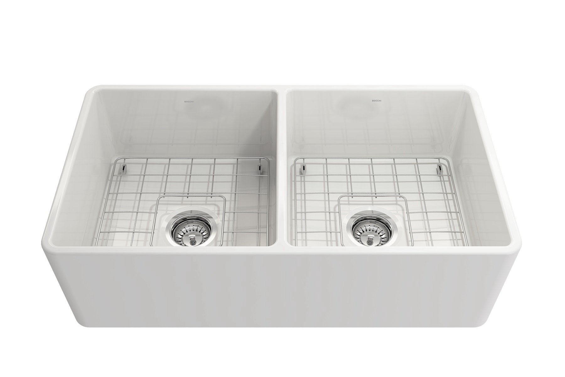 BOCCHI Farmhouse Sinks bring back the ultimate material to your kitchen. Fireclay, a 100% natural organic and recyclable material used by craftsman for centuries to create timeless appliances has now returned to your kitchen. With the firing in our kilns up to 2000°F temperatures, Fireclay becomes the most durable material used in today's kitchens. Thus, dealing with extreme heat coming from pots and pans is definitely not a problem. Due to their special glaze coating fused with the fireclay body, our sinks have a non-porous, uniform, scratch and stain resistant surface. With its protective bottom grid and distinctive looks, BOCCHI Farmhouse Sinks are truly crafted to match your design and functional desires.