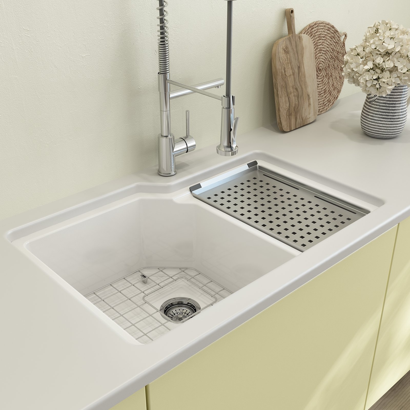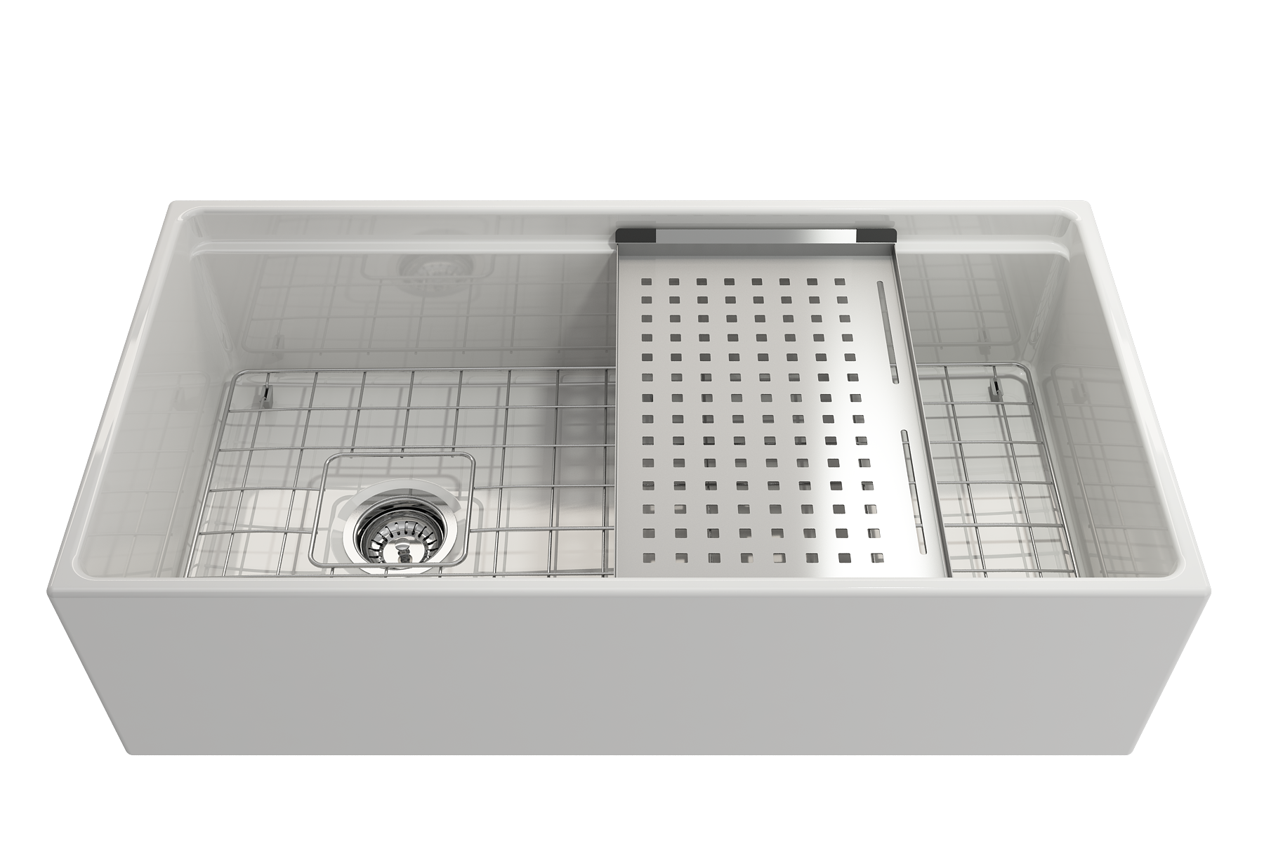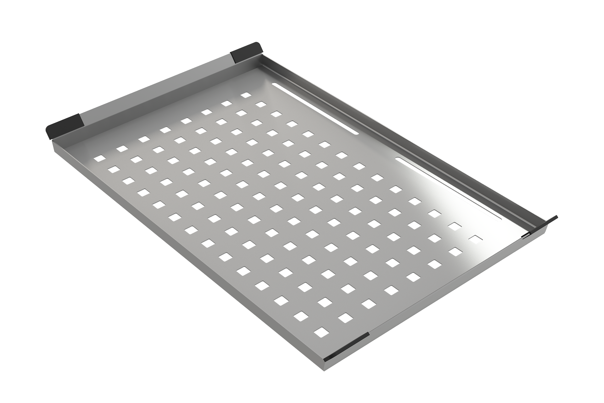 BOCCHI Colendar Tray helps easily rinse and drain fruits, vegetables, and other foods. Crafted from durable stainless-steel body and featuring a unique flat surface, this custom made colander is designed to conveniently rest on the step rim of the BOCCHI Fireclay Workstation Kitchen Sinks.