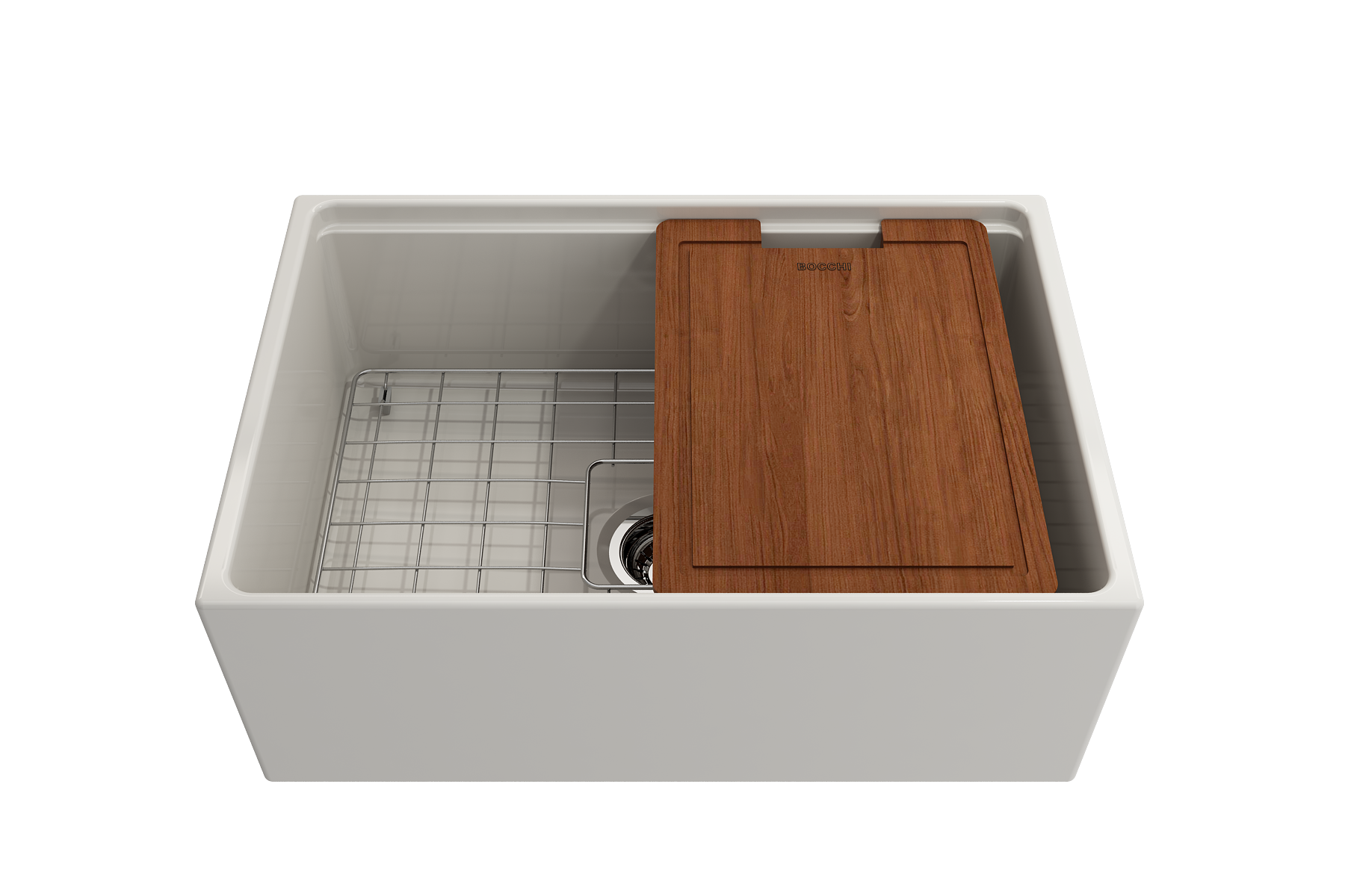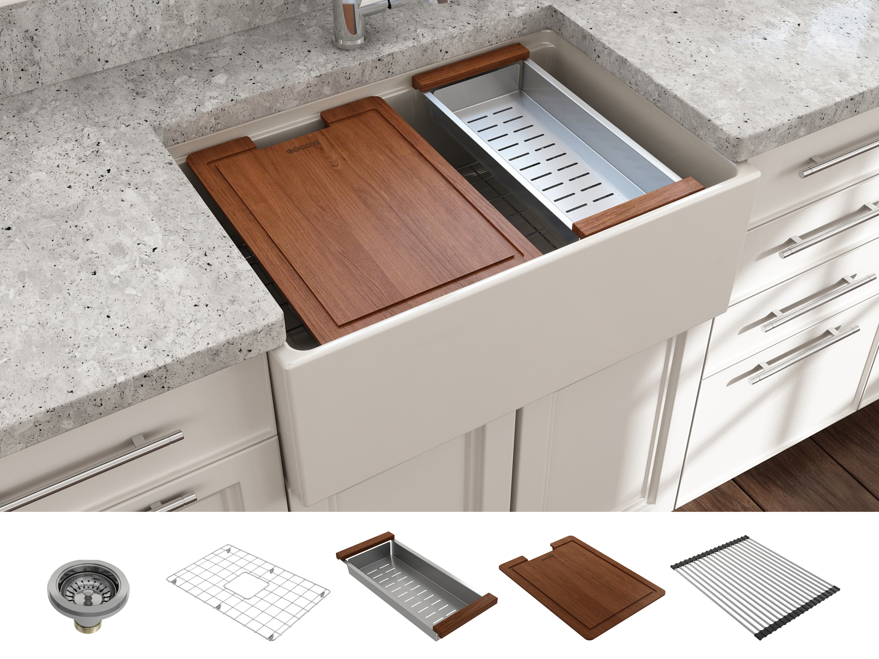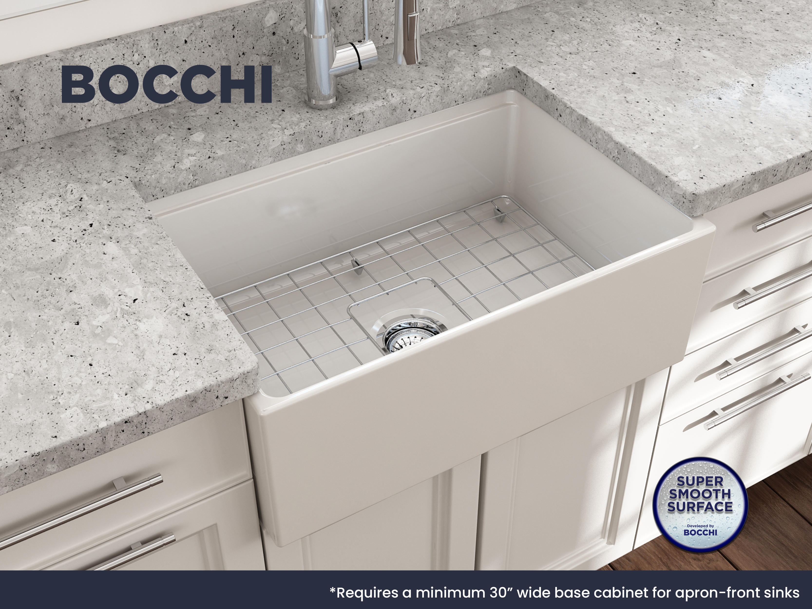 BOCCHI Farmhouse Sinks bring back the ultimate material to your kitchen. Fireclay, a 100% natural organic and recyclable material used by craftsman for centuries to create timeless appliances has now returned to your kitchen. With the firing in our kilns up to 2000°F temperatures, Fireclay becomes the most durable material used in today's kitchens. Thus, dealing with extreme heat coming from pots and pans is definitely not a problem. Due to their special glaze coating fused with the fireclay body, our sinks have a non-porous, uniform, scratch and stain resistant surface. With its protective bottom grid and distinctive looks, BOCCHI Farmhouse Sinks are truly crafted to match your design and functional desires.