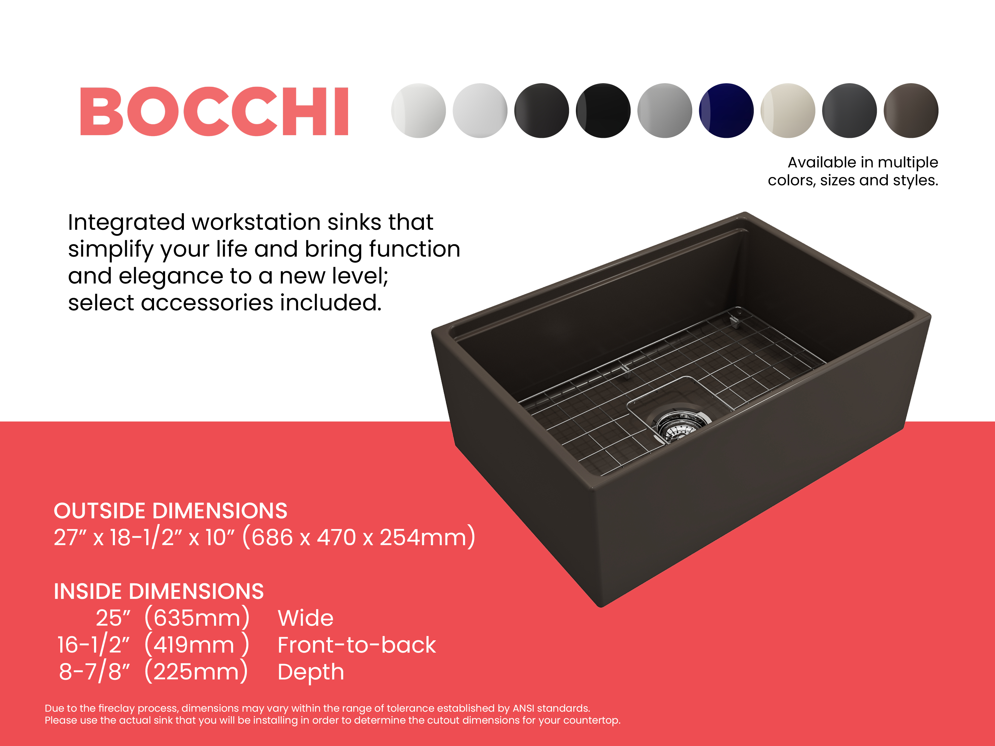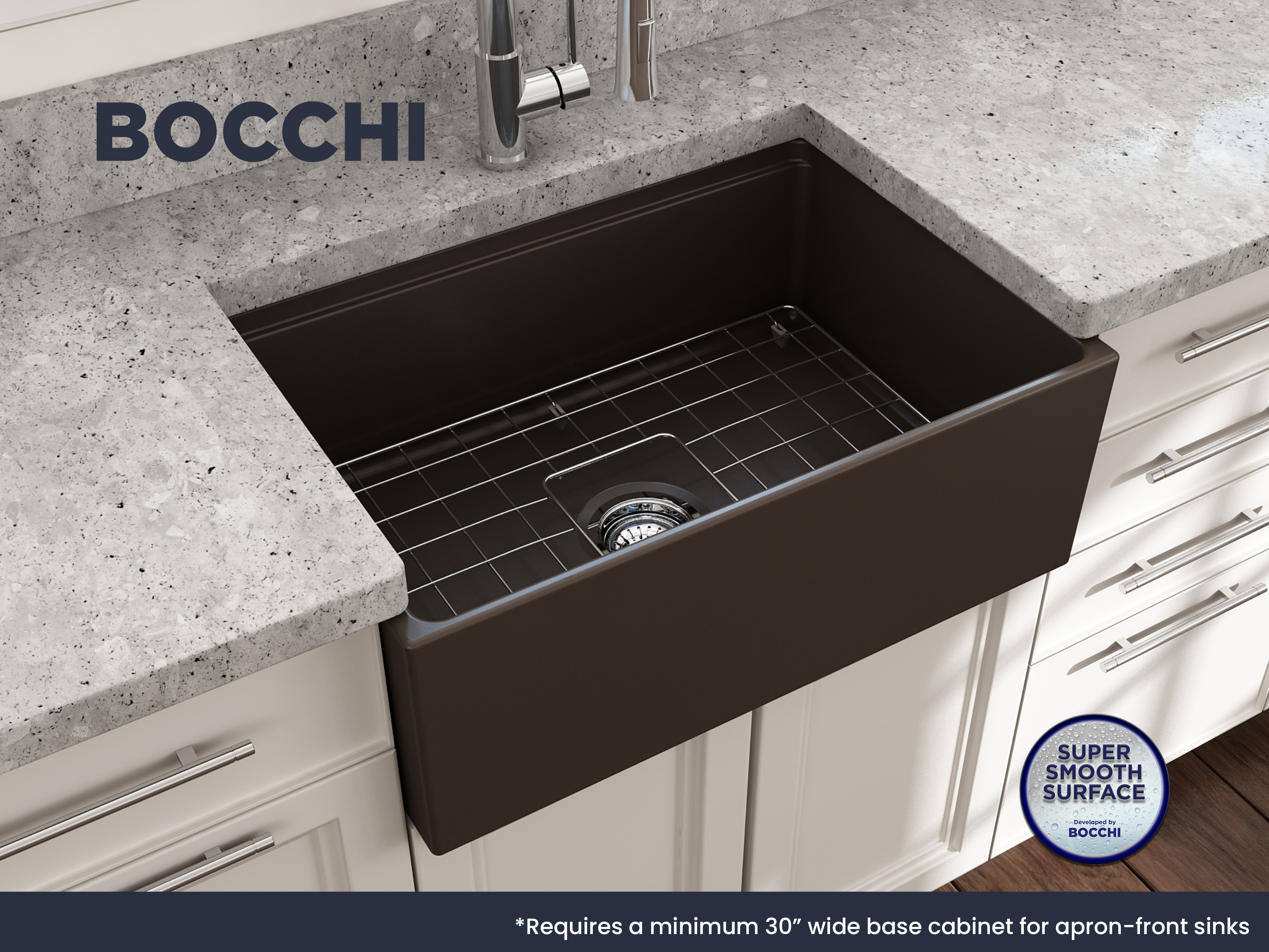 BOCCHI Farmhouse Sinks bring back the ultimate material to your kitchen. Fireclay, a 100% natural organic and recyclable material used by craftsman for centuries to create timeless appliances has now returned to your kitchen. With the firing in our kilns up to 2000°F temperatures, Fireclay becomes the most durable material used in today's kitchens. Thus, dealing with extreme heat coming from pots and pans is definitely not a problem. Due to their special glaze coating fused with the fireclay body, our sinks have a non-porous, uniform, scratch and stain resistant surface. With its protective bottom grid and distinctive looks, BOCCHI Farmhouse Sinks are truly crafted to match your design and functional desires.