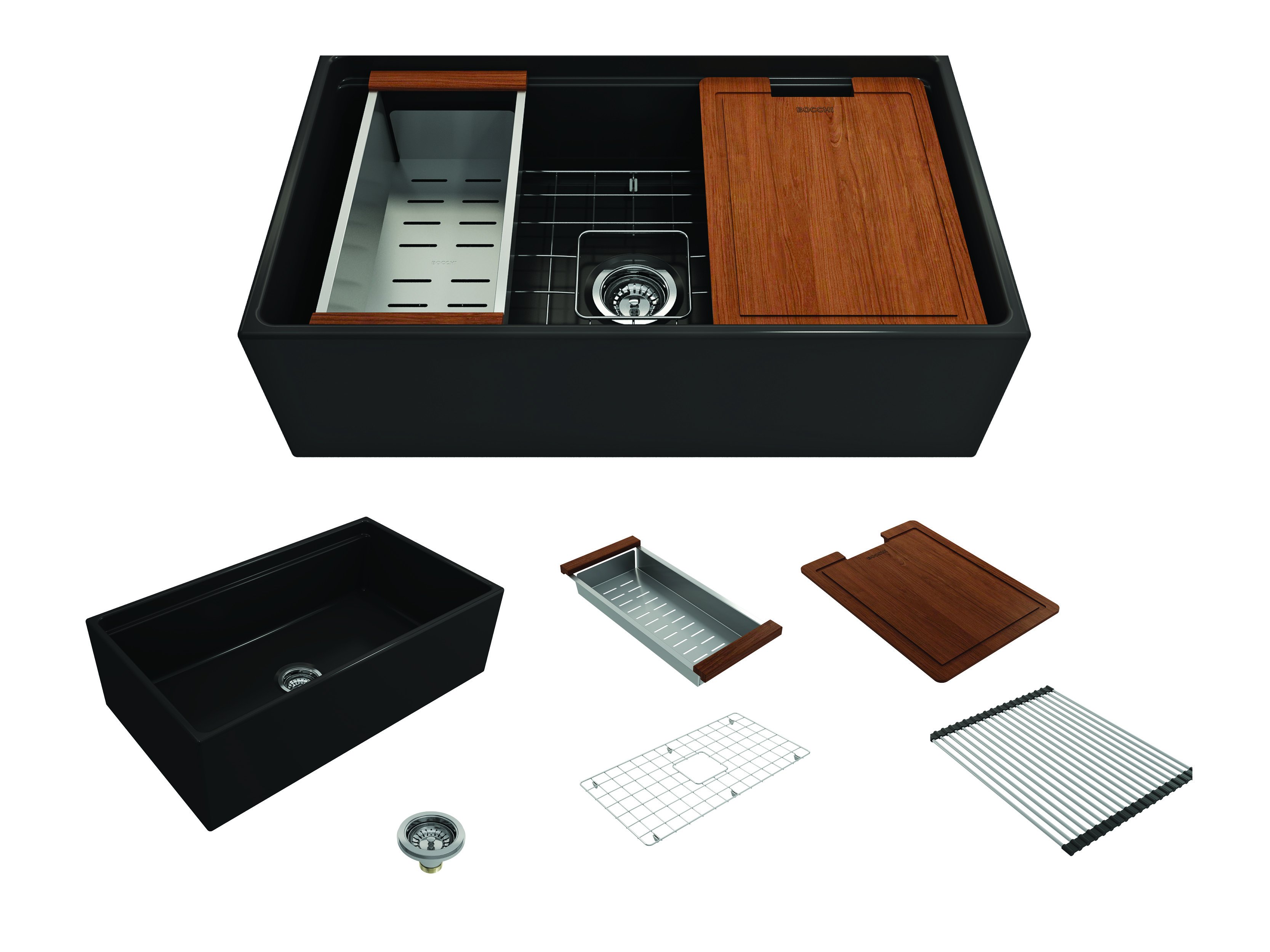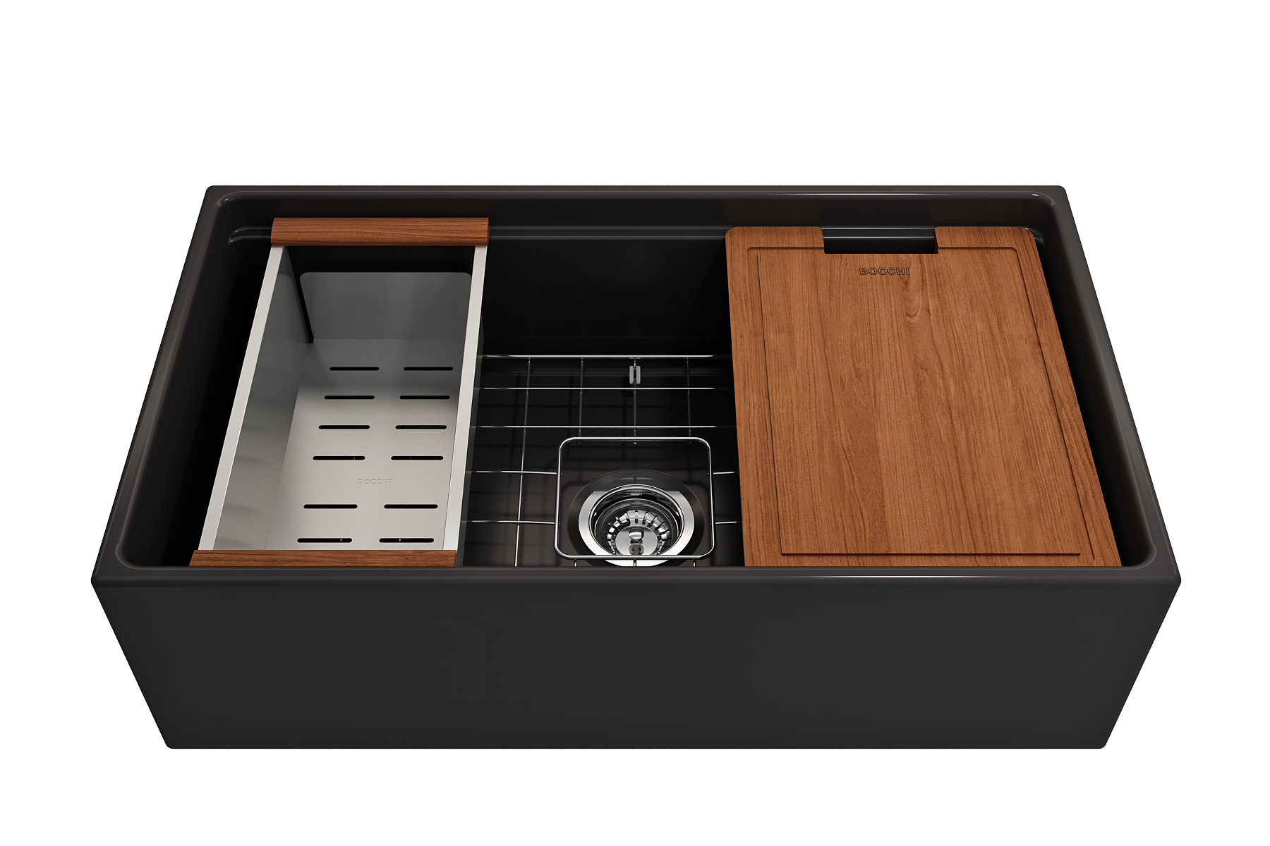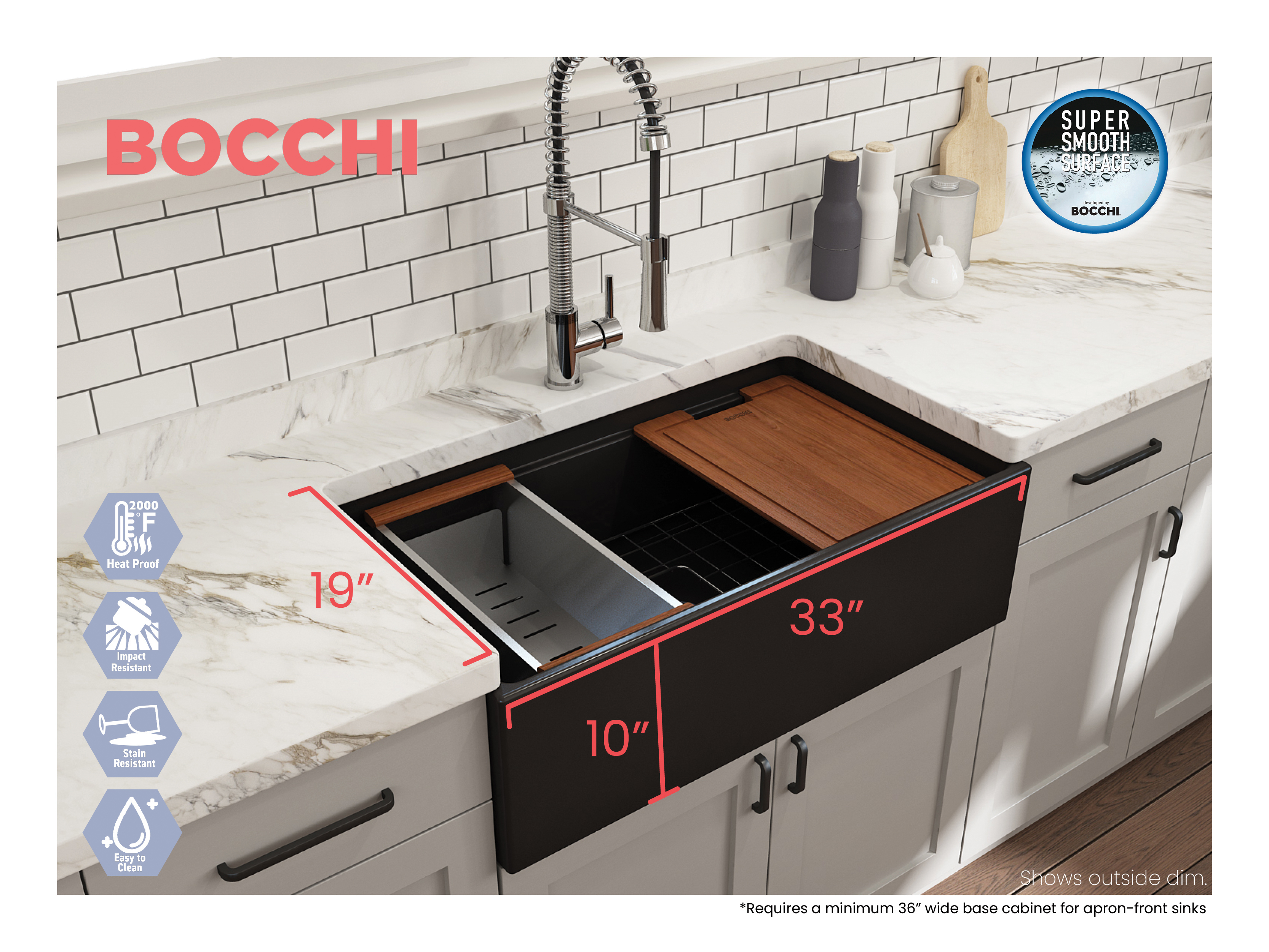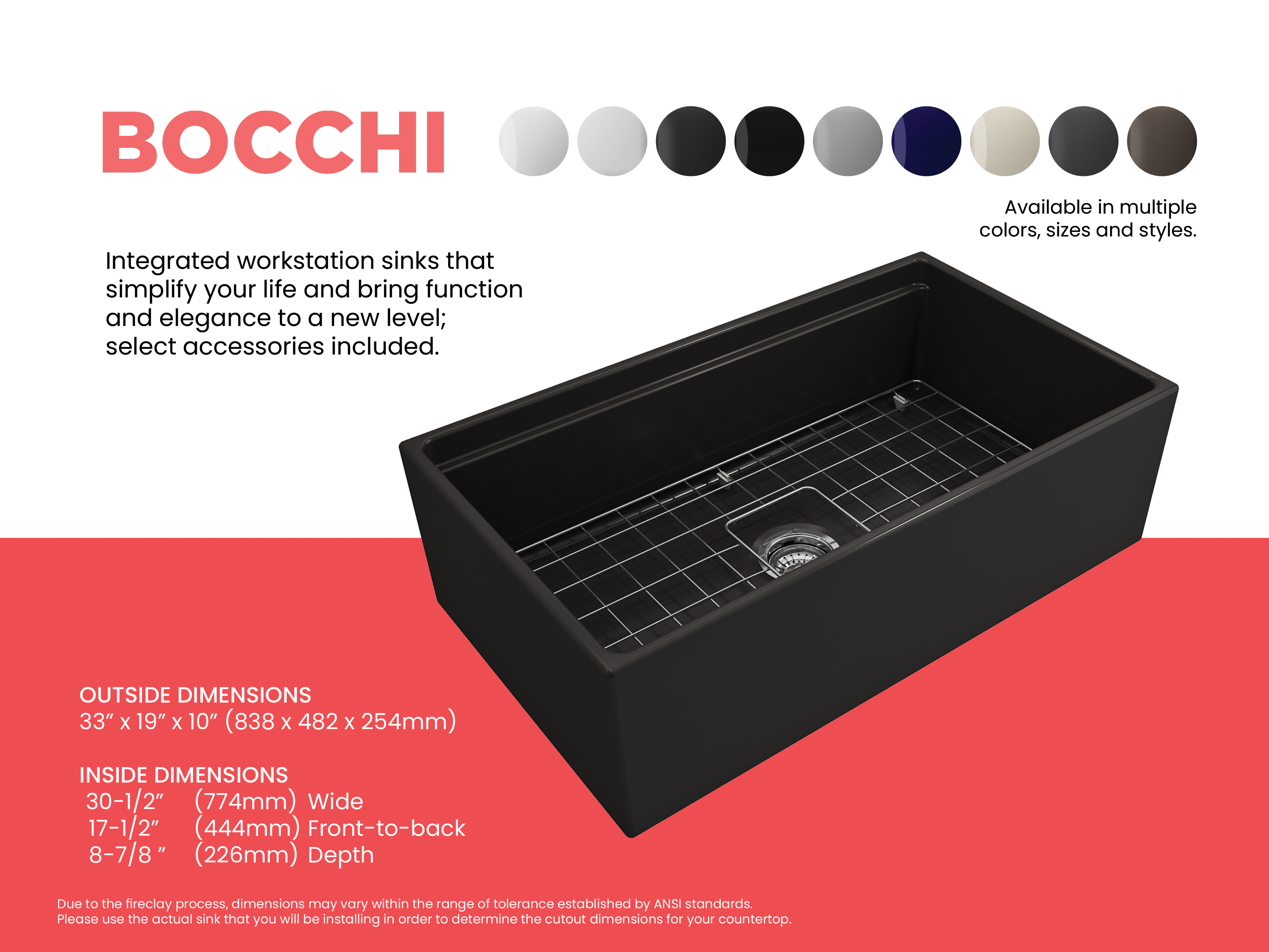 BOCCHI Farmhouse Sinks bring back the ultimate material to your kitchen. Fireclay, a 100% natural organic and recyclable material used by craftsman for centuries to create timeless appliances has now returned to your kitchen. With the firing in our kilns up to 2000°F temperatures, Fireclay becomes the most durable material used in today's kitchens. Thus, dealing with extreme heat coming from pots and pans is definitely not a problem. Due to their special glaze coating fused with the fireclay body, our sinks have a non-porous, uniform, scratch and stain resistant surface. With its protective bottom grid and distinctive looks, BOCCHI Farmhouse Sinks are truly crafted to match your design and functional desires.