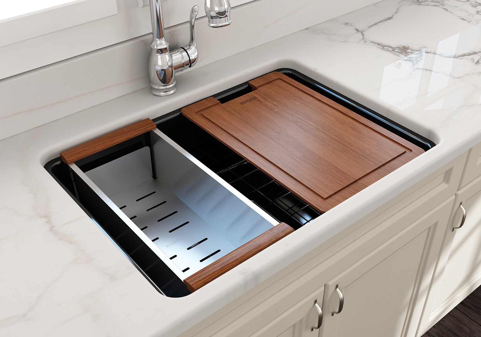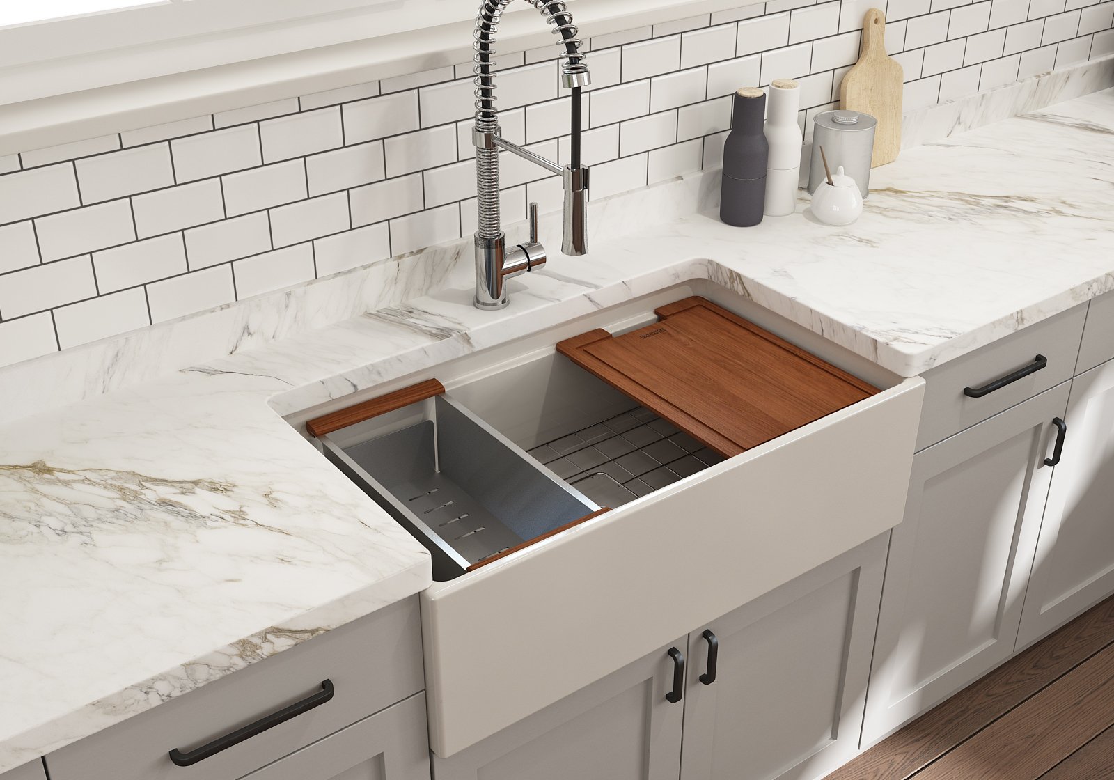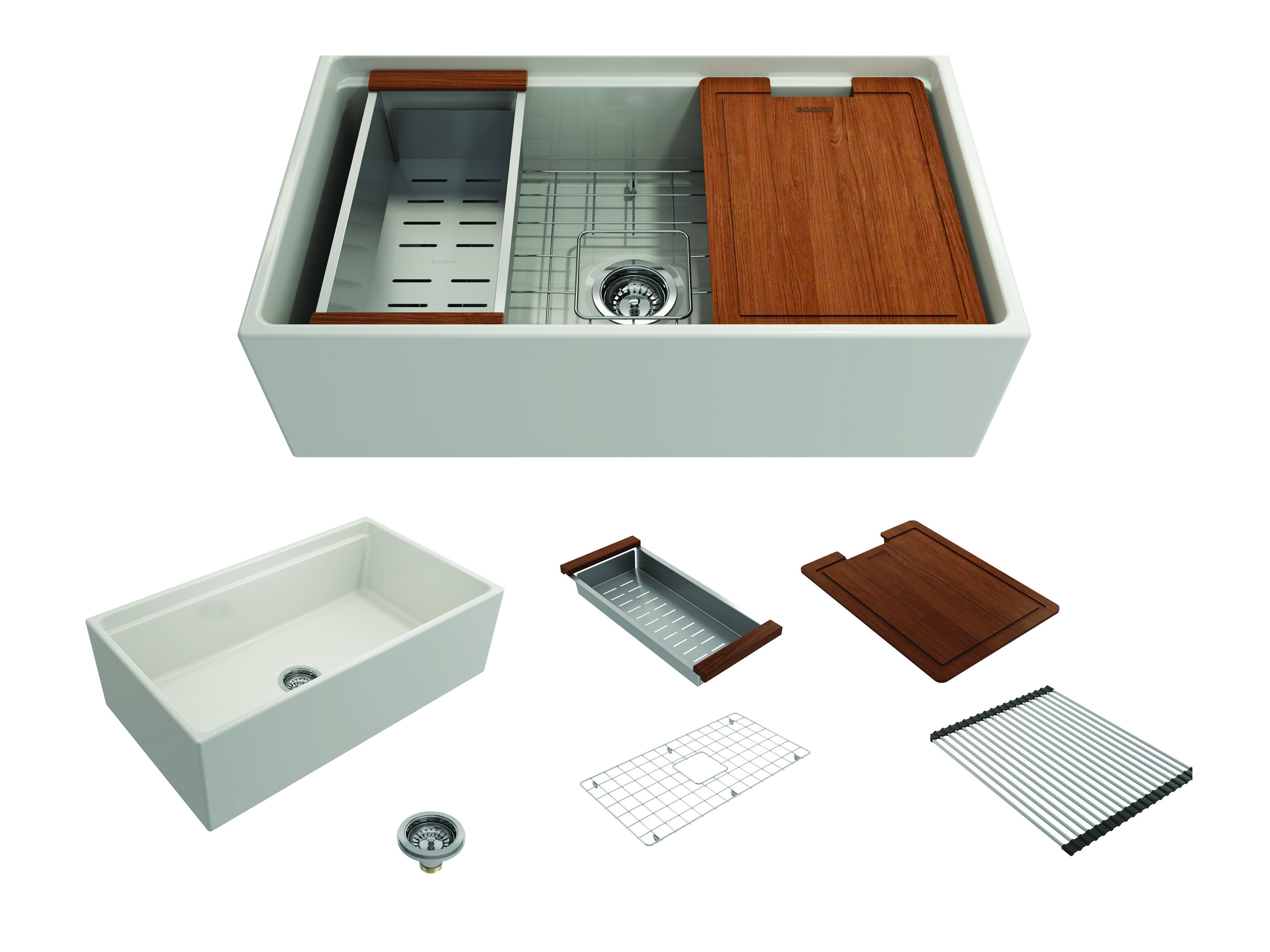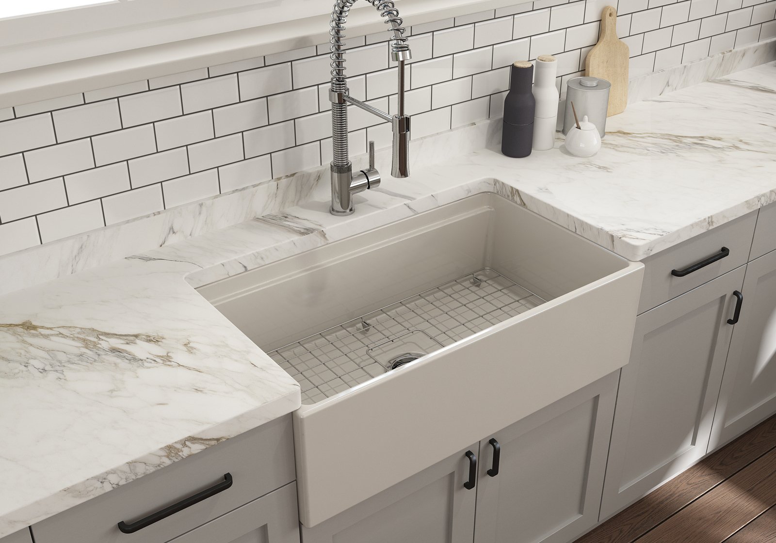 BOCCHI Farmhouse Sinks bring back the ultimate material to your kitchen. Fireclay, a 100% natural organic and recyclable material used by craftsman for centuries to create timeless appliances has now returned to your kitchen. With the firing in our kilns up to 2000°F temperatures, Fireclay becomes the most durable material used in today's kitchens. Thus, dealing with extreme heat coming from pots and pans is definitely not a problem. Due to their special glaze coating fused with the fireclay body, our sinks have a non-porous, uniform, scratch and stain resistant surface. With its protective bottom grid and distinctive looks, BOCCHI Farmhouse Sinks are truly crafted to match your design and functional desires.