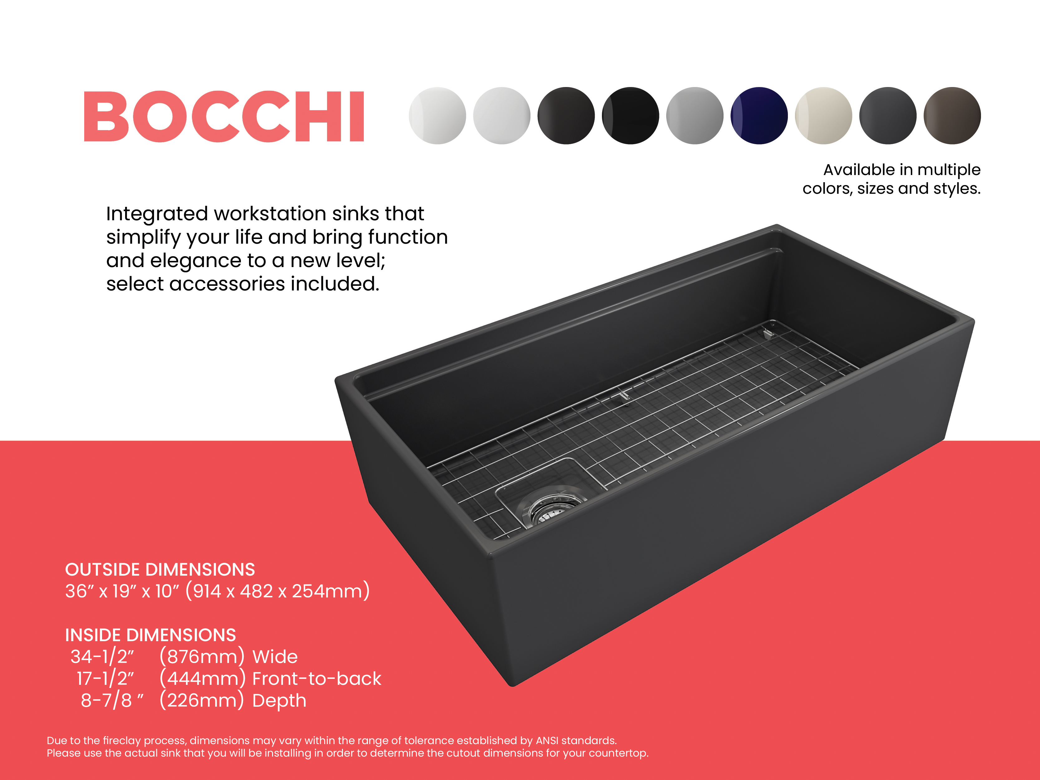 BOCCHI Farmhouse Sinks bring back the ultimate material to your kitchen. Fireclay, a 100% natural organic and recyclable material used by craftsman for centuries to create timeless appliances has now returned to your kitchen. With the firing in our kilns up to 2000°F temperatures, Fireclay becomes the most durable material used in today's kitchens. Thus, dealing with extreme heat coming from pots and pans is definitely not a problem. Due to their special glaze coating fused with the fireclay body, our sinks have a non-porous, uniform, scratch and stain resistant surface. With its protective bottom grid and distinctive looks, BOCCHI Farmhouse Sinks are truly crafted to match your design and functional desires.