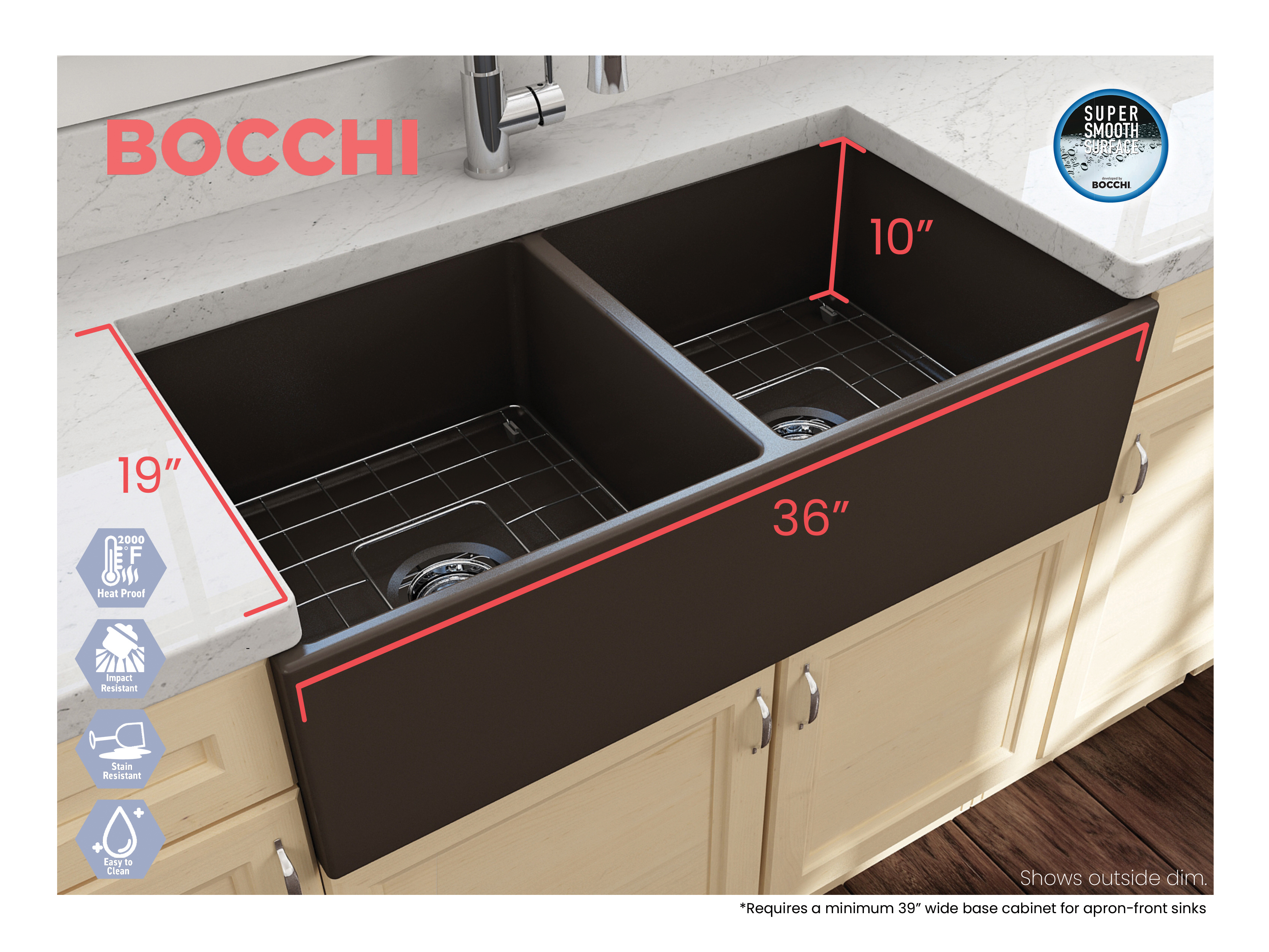 BOCCHI Farmhouse Sinks bring back the ultimate material to your kitchen. Fireclay, a 100% natural organic and recyclable material used by craftsman for centuries to create timeless appliances has now returned to your kitchen. With the firing in our kilns up to 2000°F temperatures, Fireclay becomes the most durable material used in today's kitchens. Thus, dealing with extreme heat coming from pots and pans is definitely not a problem. Due to their special glaze coating fused with the fireclay body, our sinks have a non-porous, uniform, scratch and stain resistant surface. With its protective bottom grid and distinctive looks, BOCCHI Farmhouse Sinks are truly crafted to match your design and functional desires.