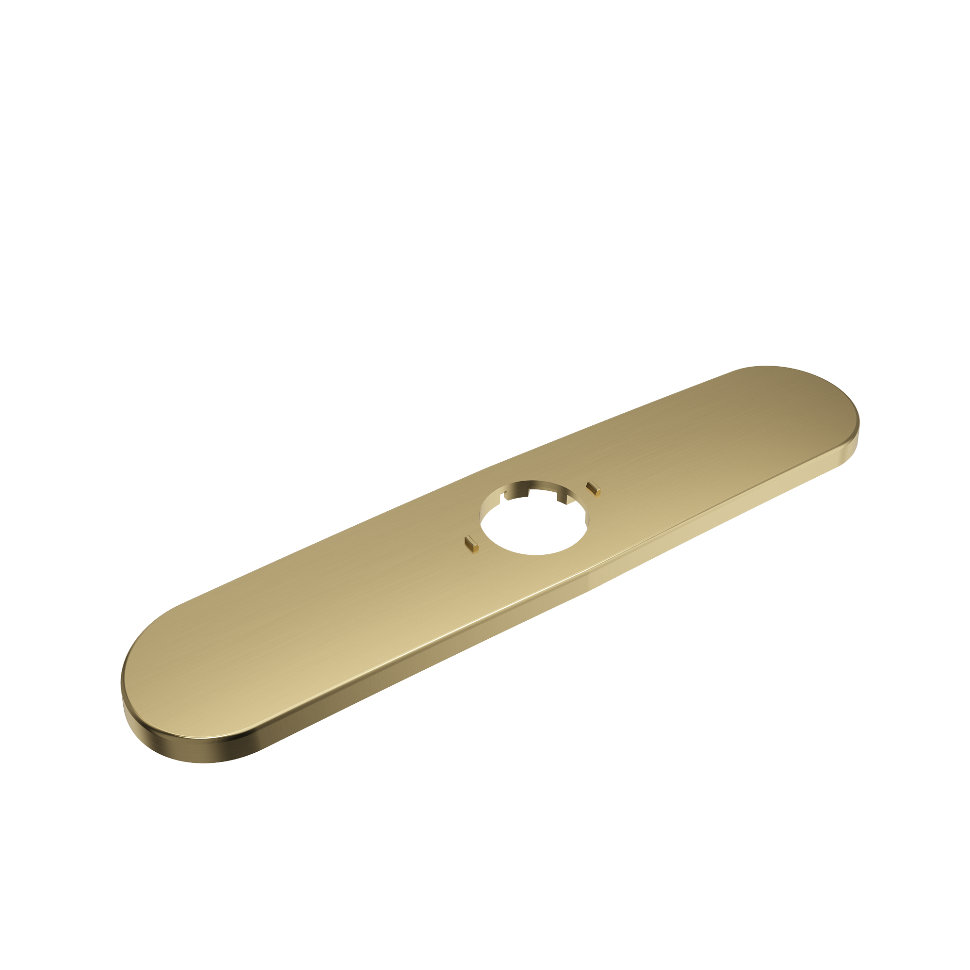 Brass deck plate (escutcheon) for single kitchen faucets. Features a universal design with a slightly rounded, rectangular edge that compliments all faucet designs including contemporary models.