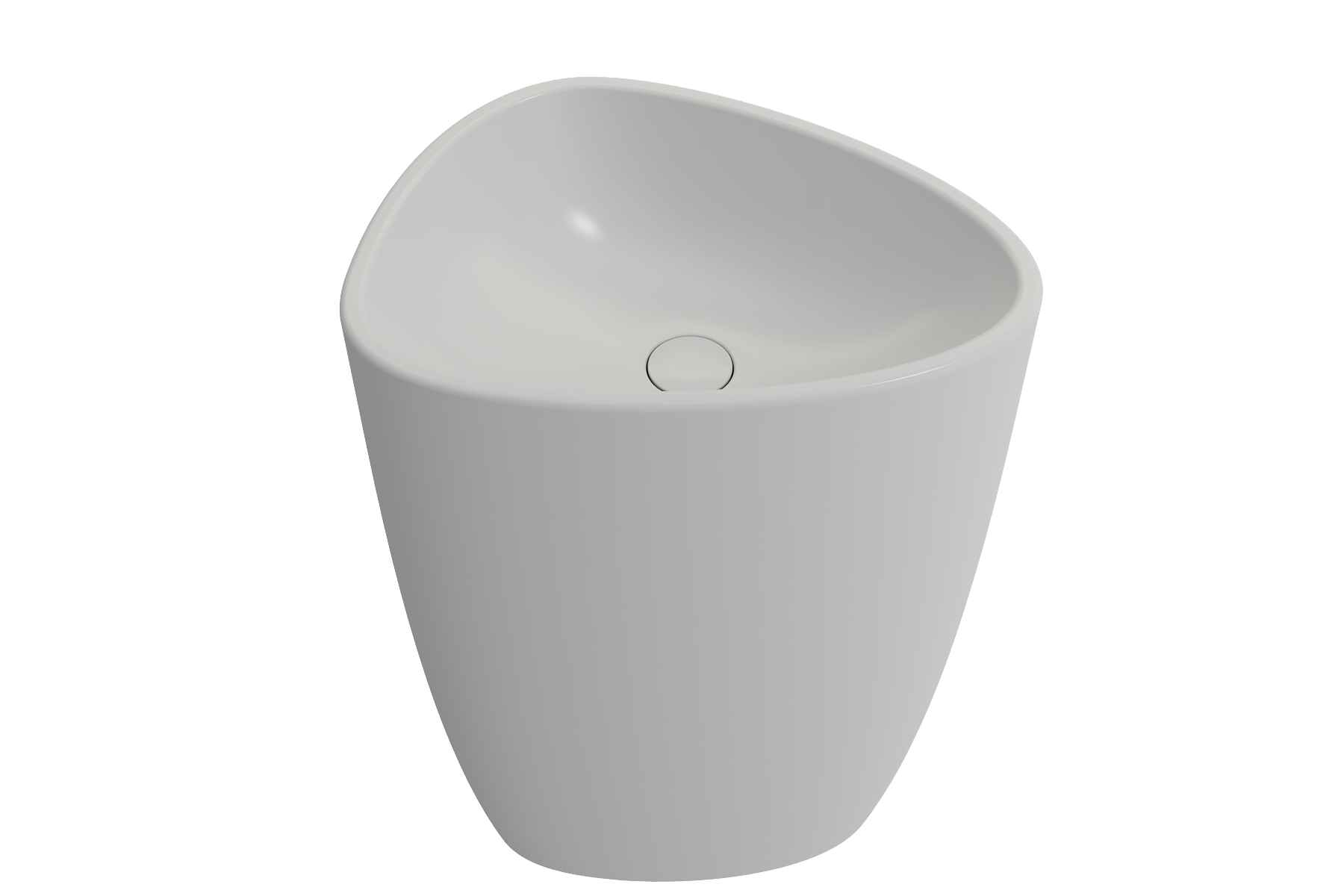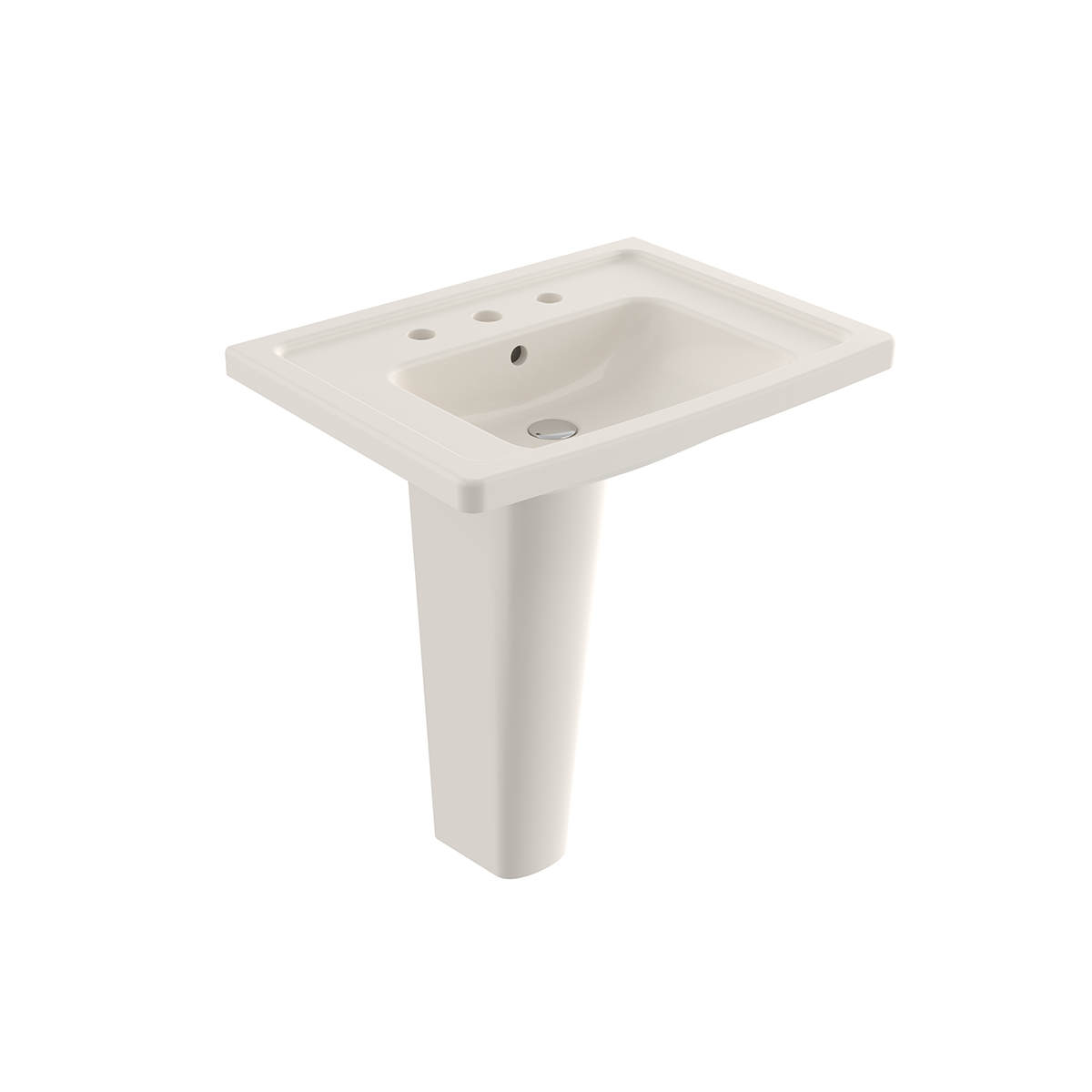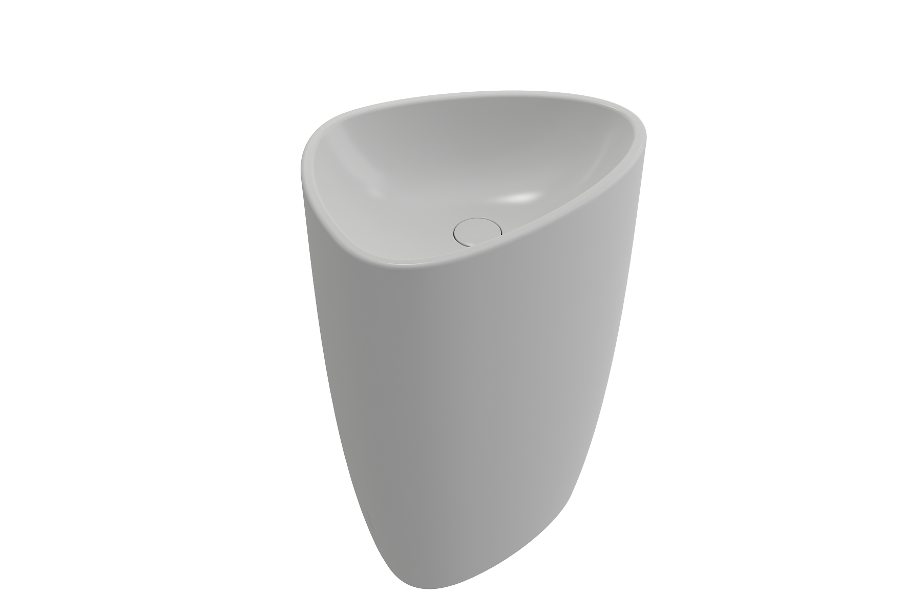 Unique artist's palette shaped pedestal sink with seamless, integrated base. Includes color-matched, pop-up drain cover. Without faucet setting; requires either a wall-mounted or floor-mounted faucet.