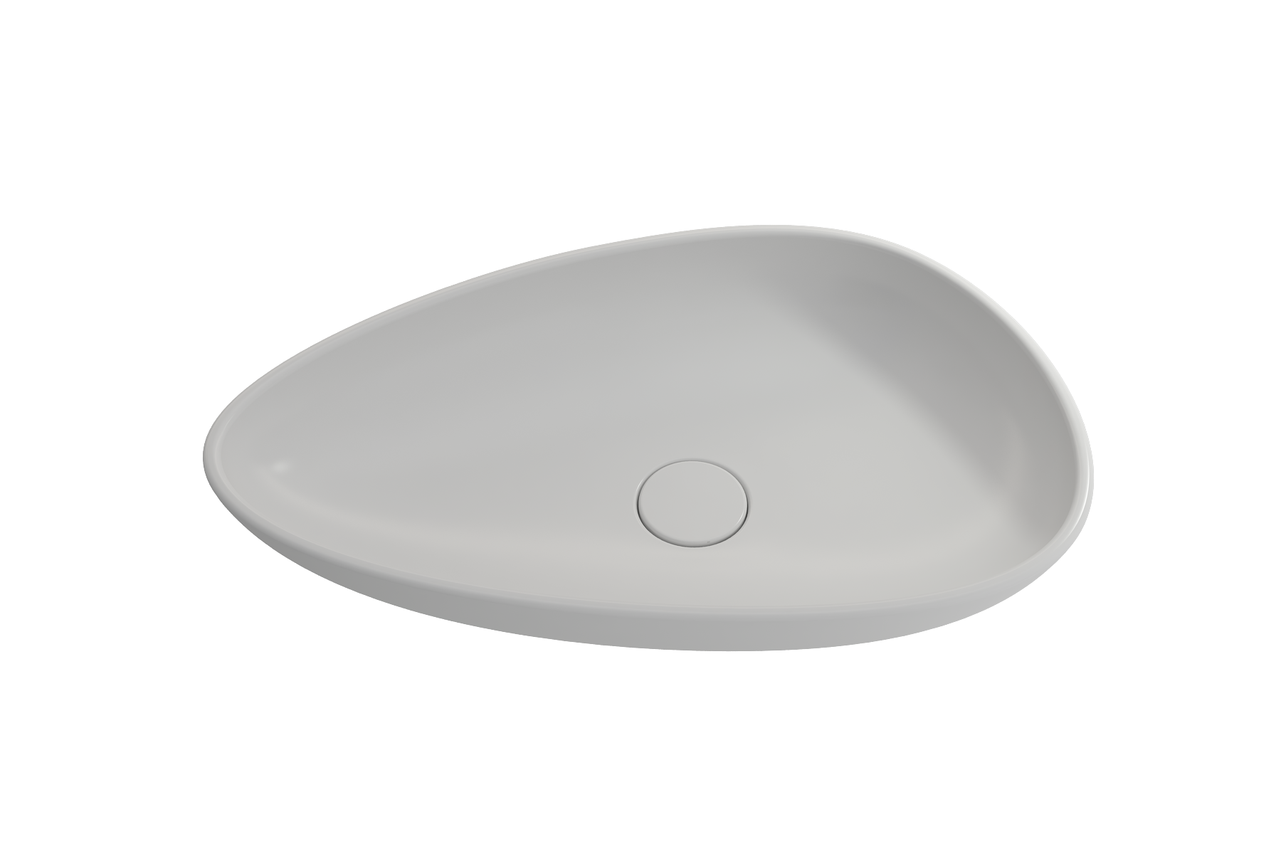 Unique artist's palette shaped vessel sink with color-matched, pop-up drain cover. Made of durable fine fireclay.