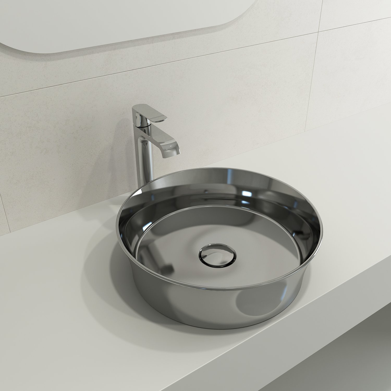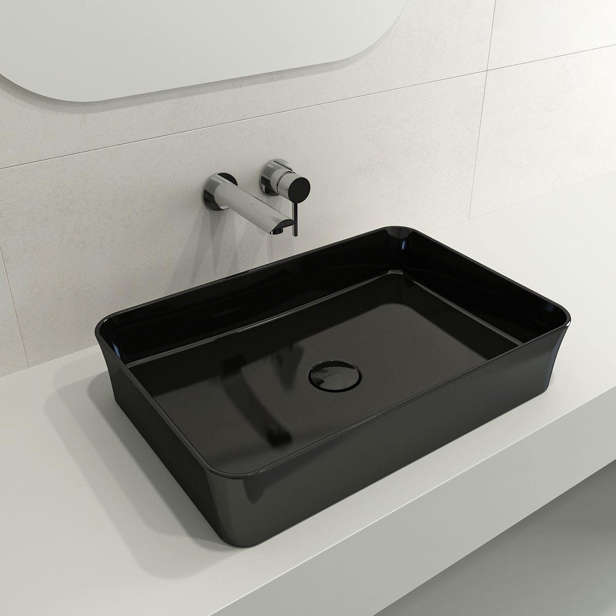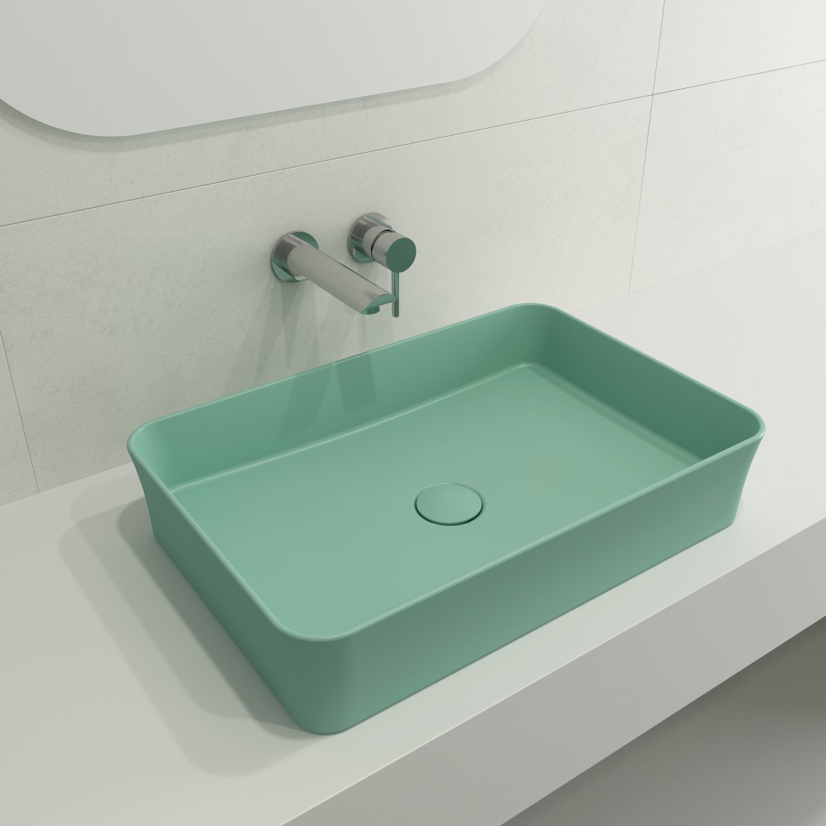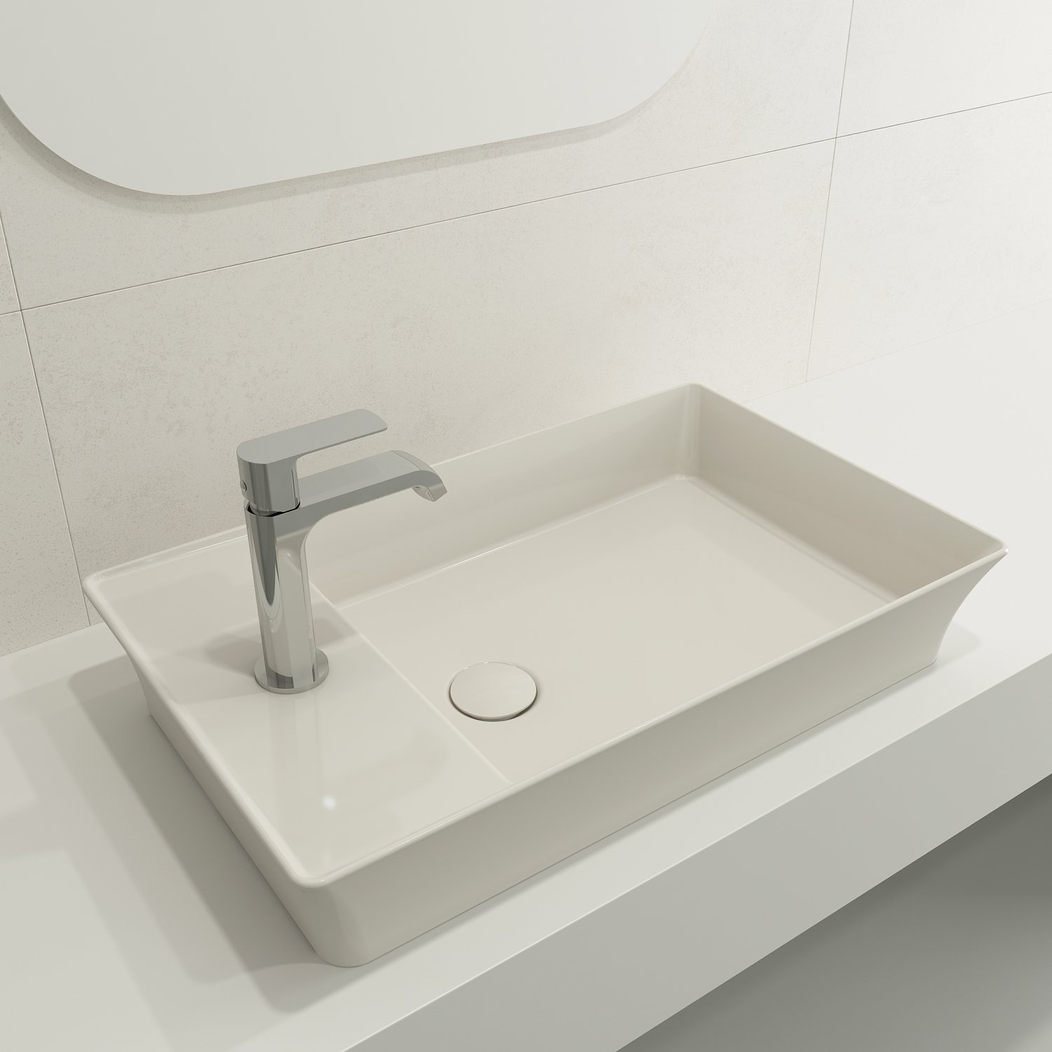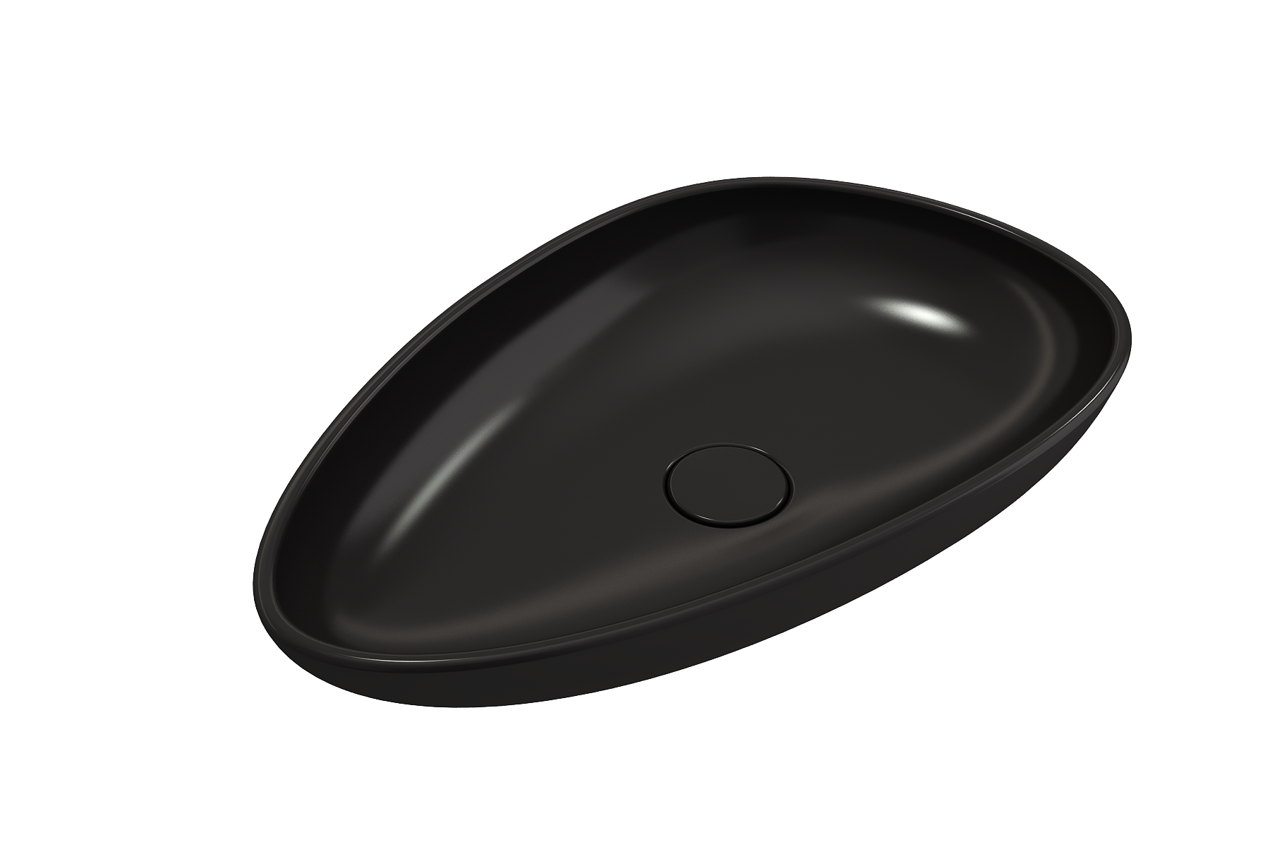 Unique artist's palette shaped vessel sink with color-matched, pop-up drain cover. Made of durable fine fireclay.