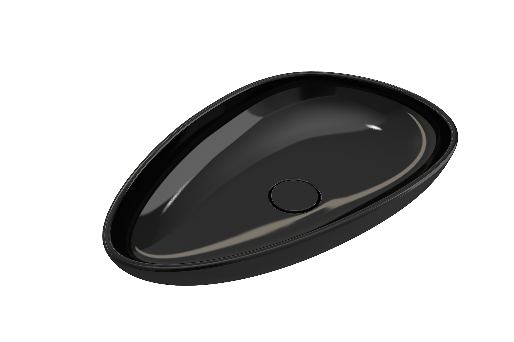 Unique artist's palette shaped vessel sink with color-matched, pop-up drain cover. Made of durable fine fireclay.