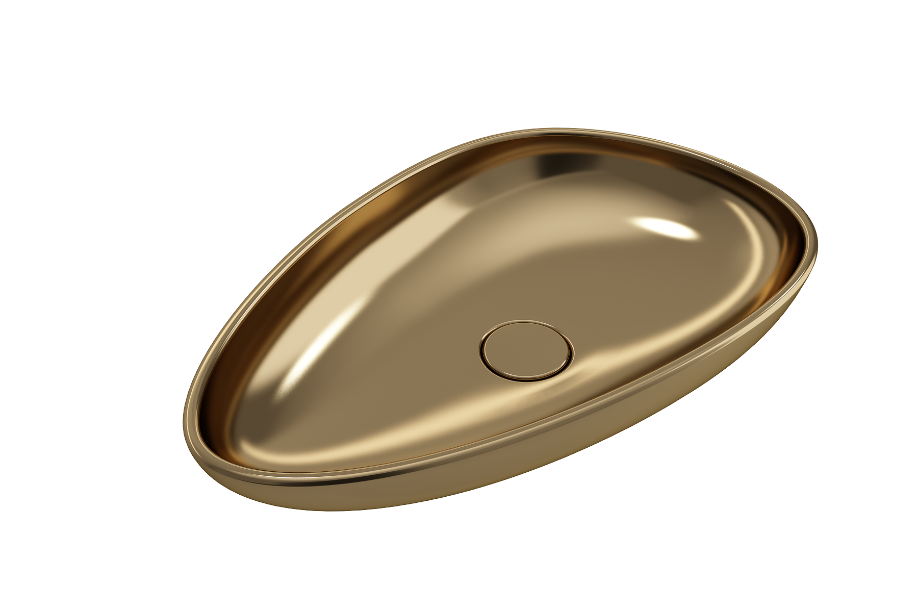 Unique artist's palette shaped vessel sink with color-matched, pop-up drain cover. Made of durable fine fireclay.