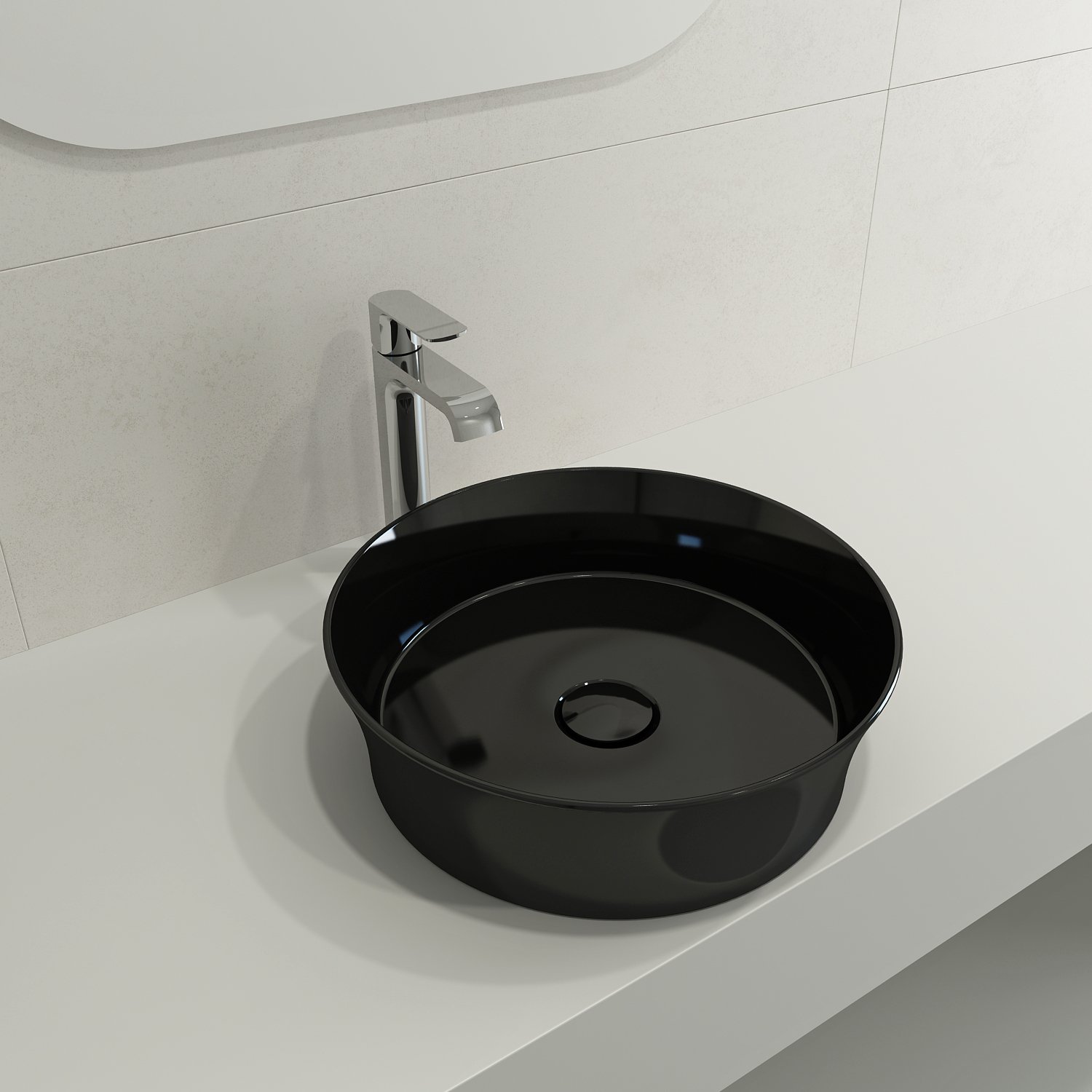 Unique minimalist vessel sink with single hole faucet setting. Made of durable fine fireclay.