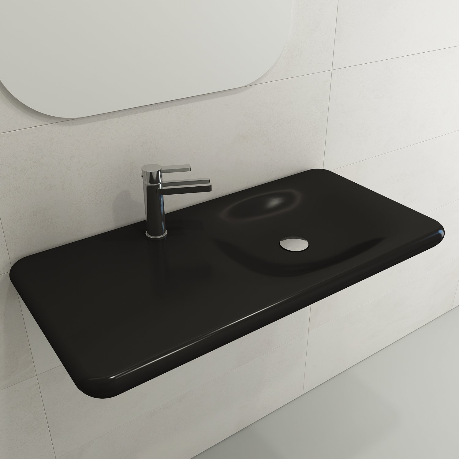 Unique minimalist wall-hung sink with single hole faucet setting. May be wall-hung, used with 3930 0001 metal console legs, or set ontop of the counter as a vessel.Â