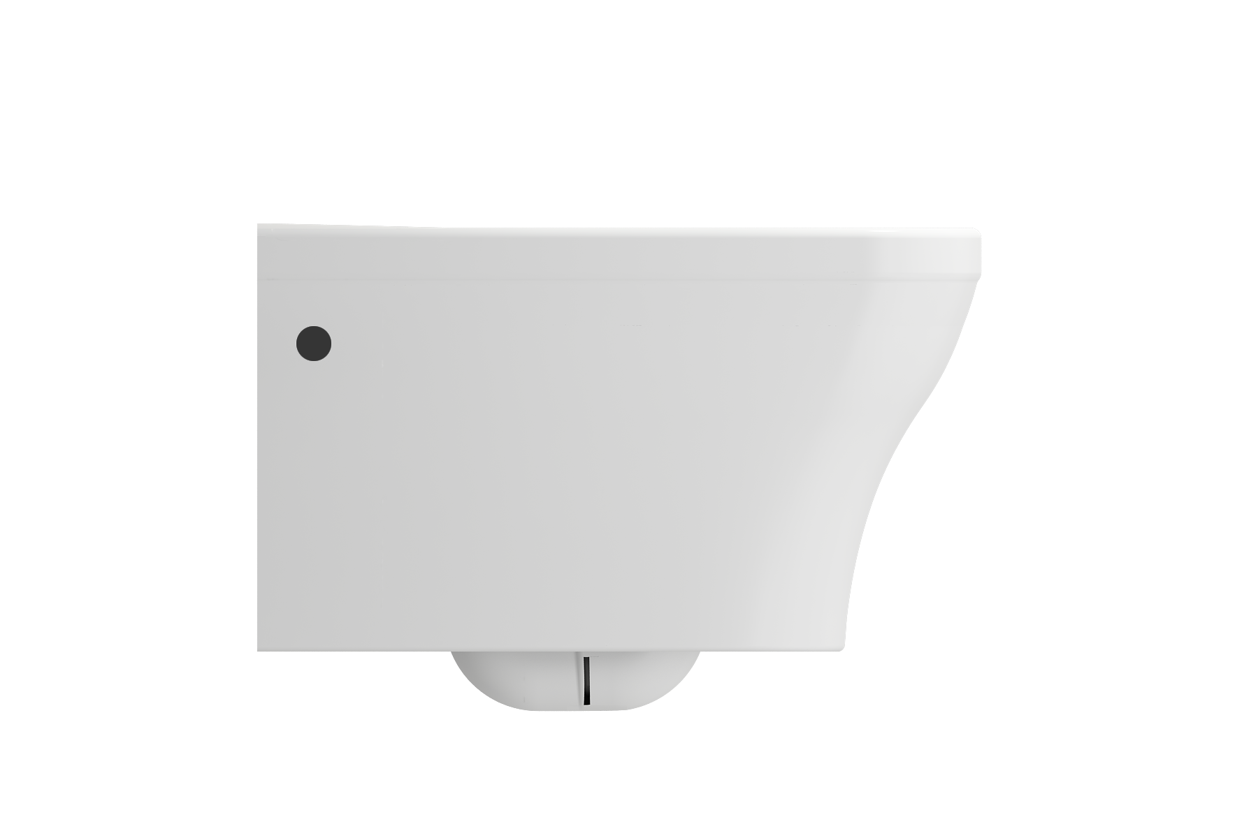 Wall-hung toilet bowl with wash-down flush and Euro-front design. Rimless vitreous china construction with color-matched soft close toilet seat (sold seperately). Compatible with in-wall tanks (sold seperately).