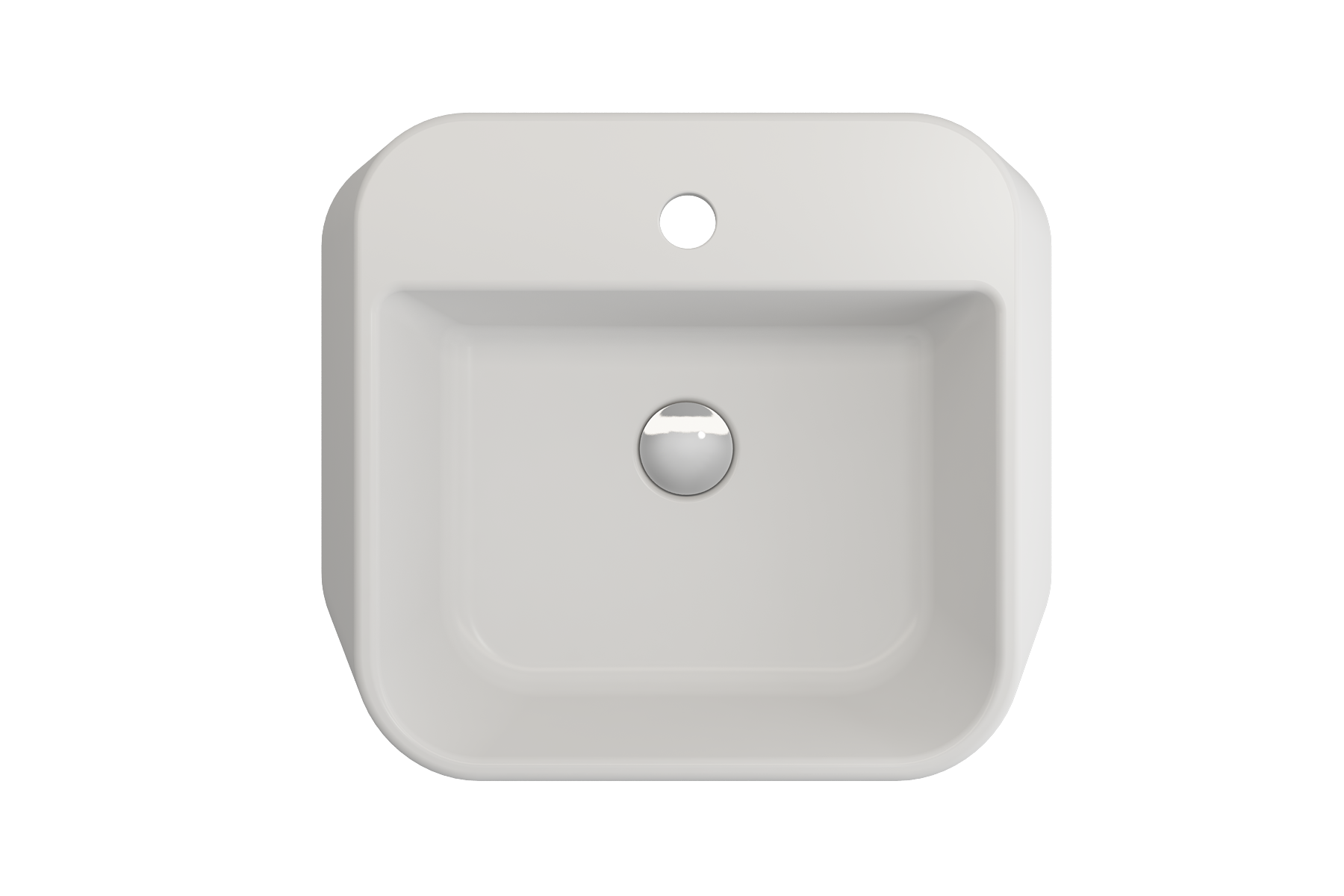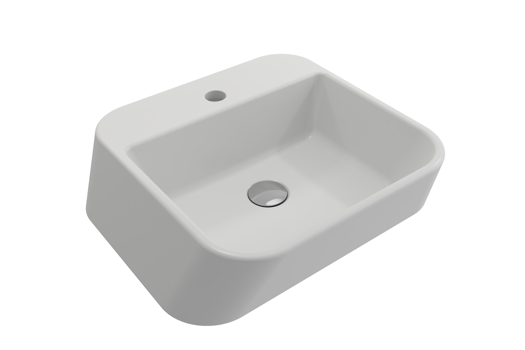 Unique vessel sink with single hole faucet setting. Made of durable fine fireclay.