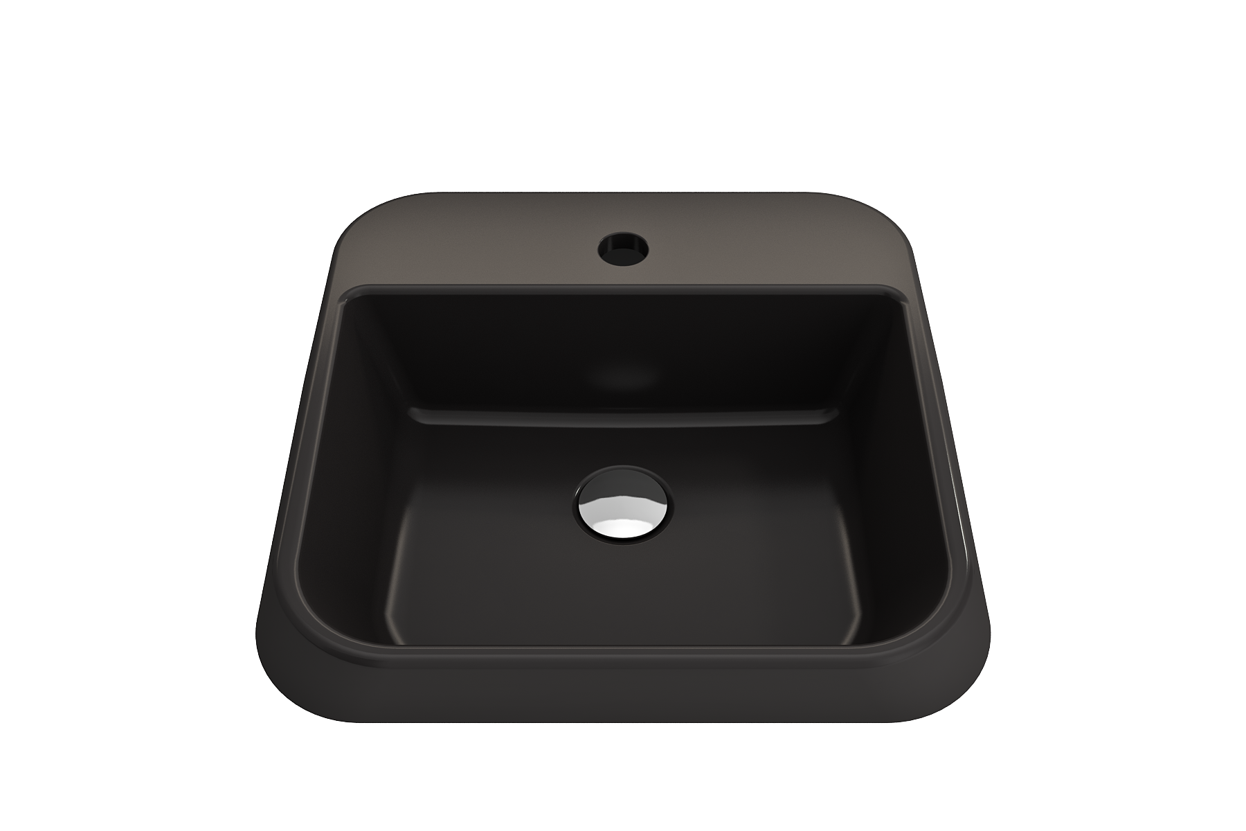 Unique vessel sink with single hole faucet setting. Made of durable fine fireclay.