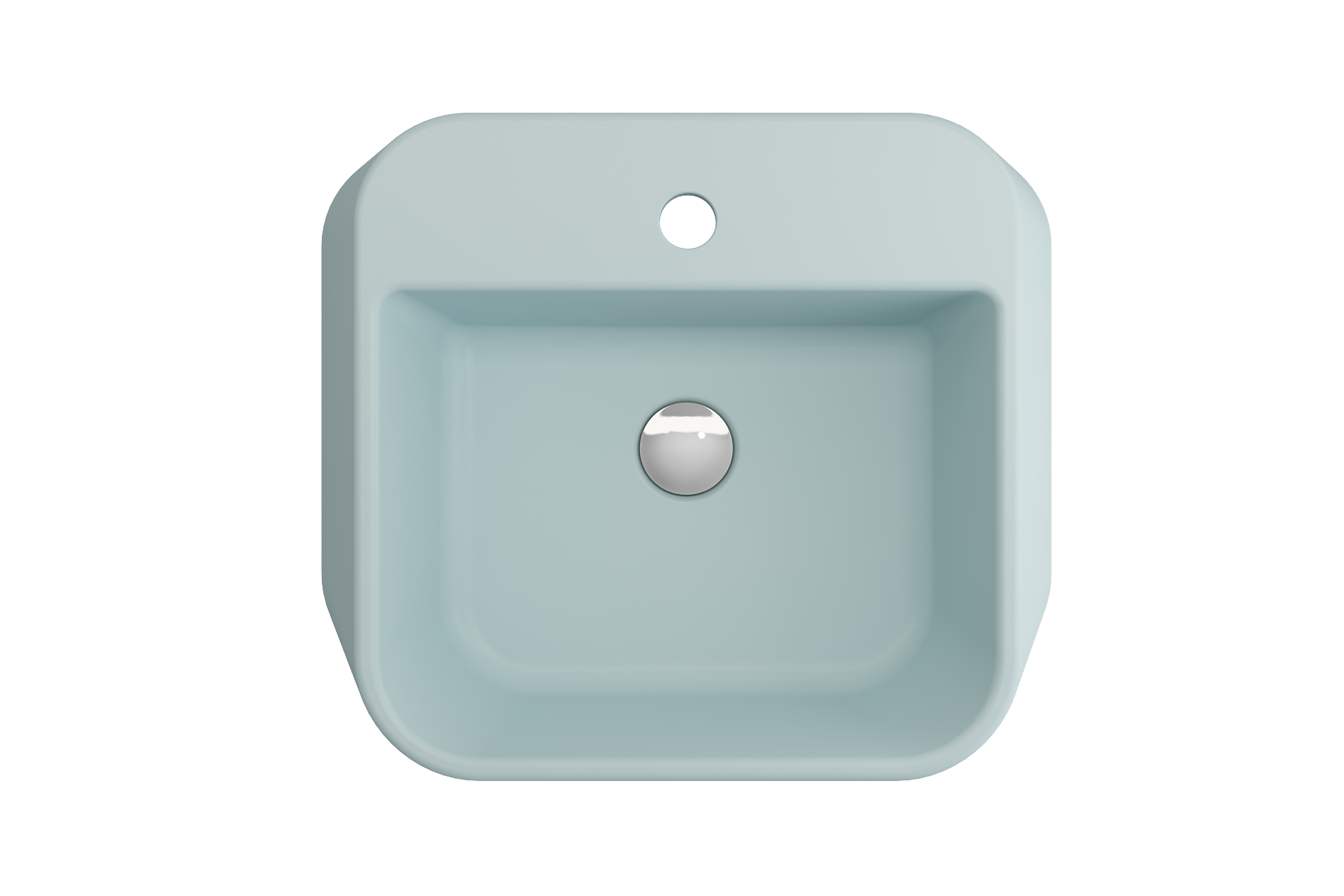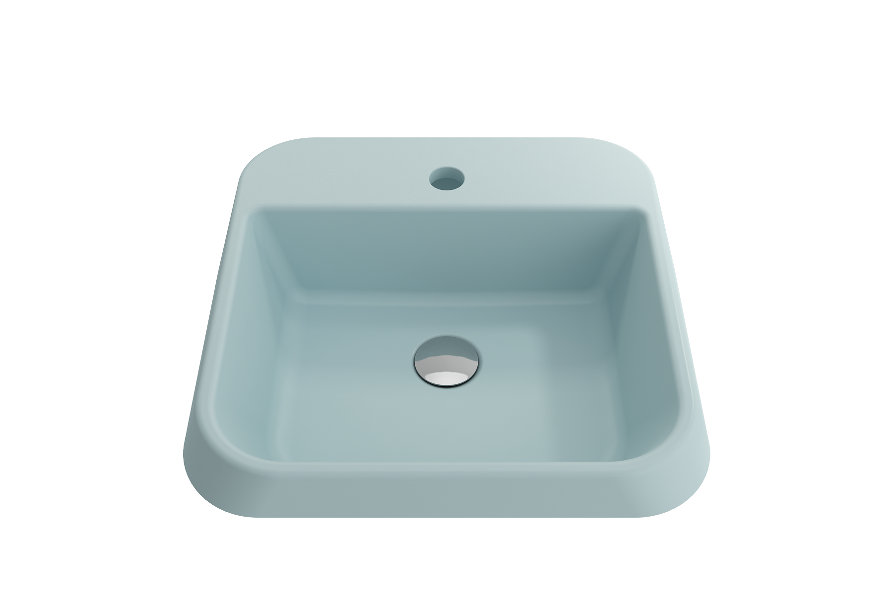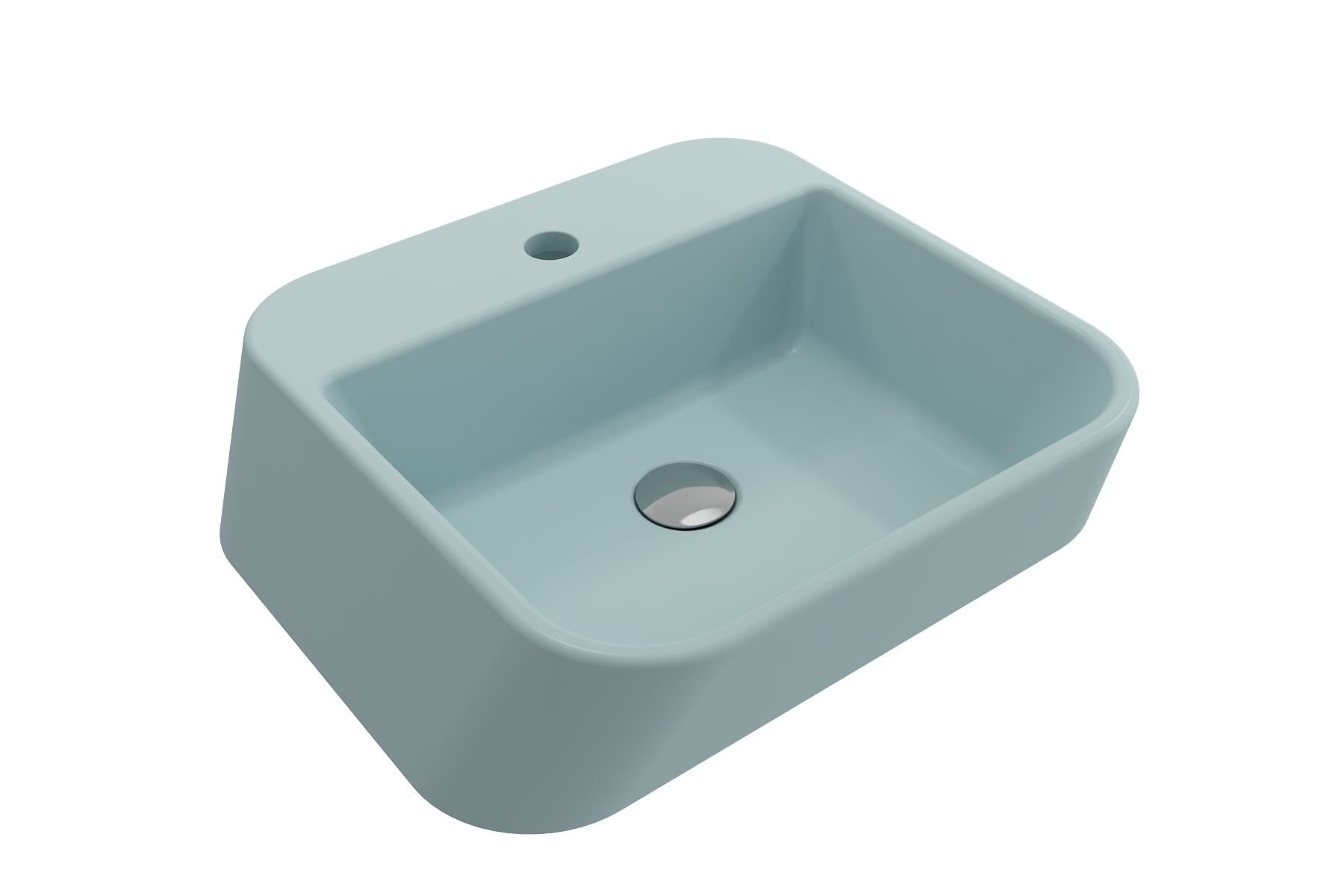 Unique vessel sink with single hole faucet setting. Made of durable fine fireclay.