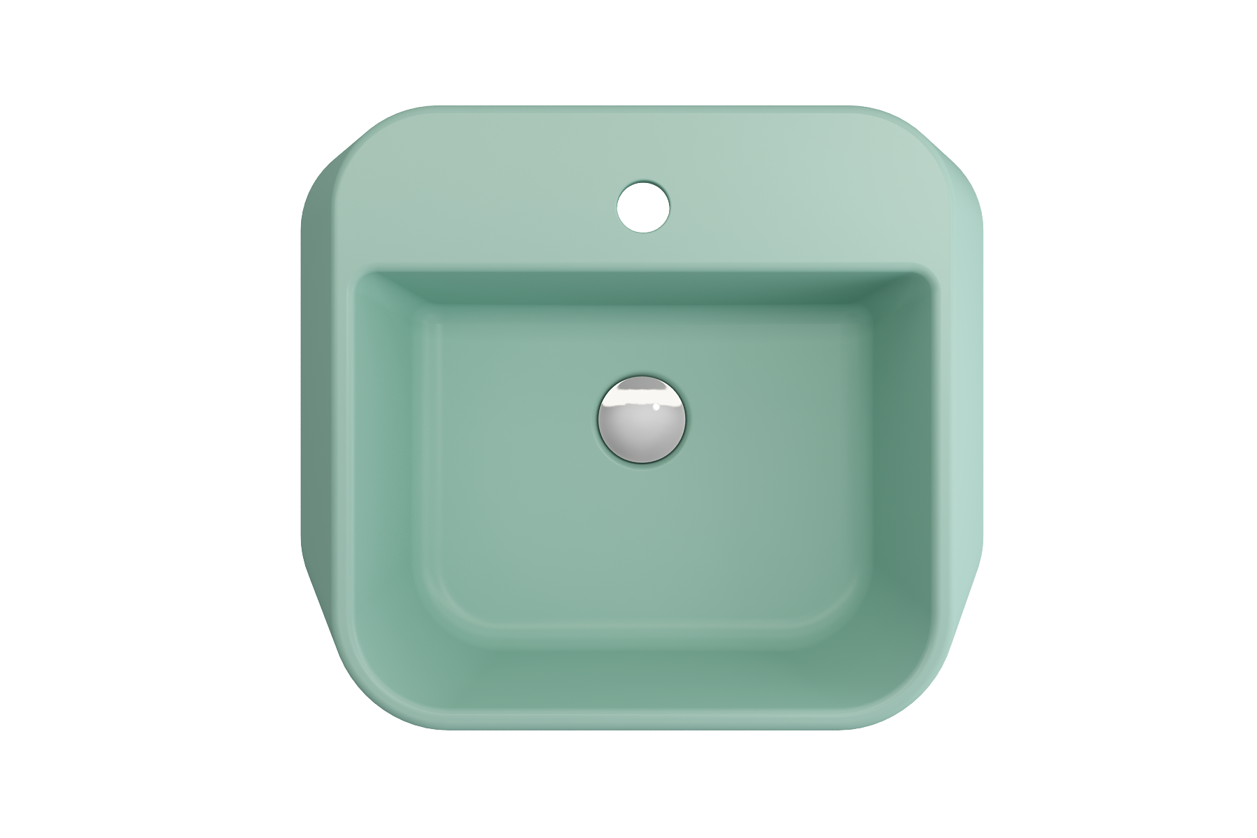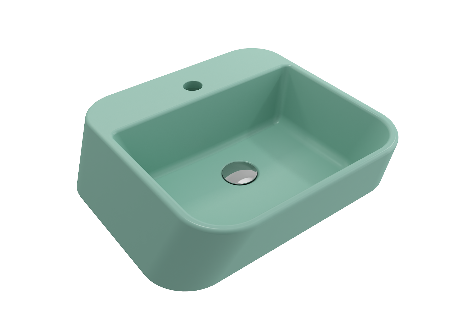 Unique vessel sink with single hole faucet setting. Made of durable fine fireclay.