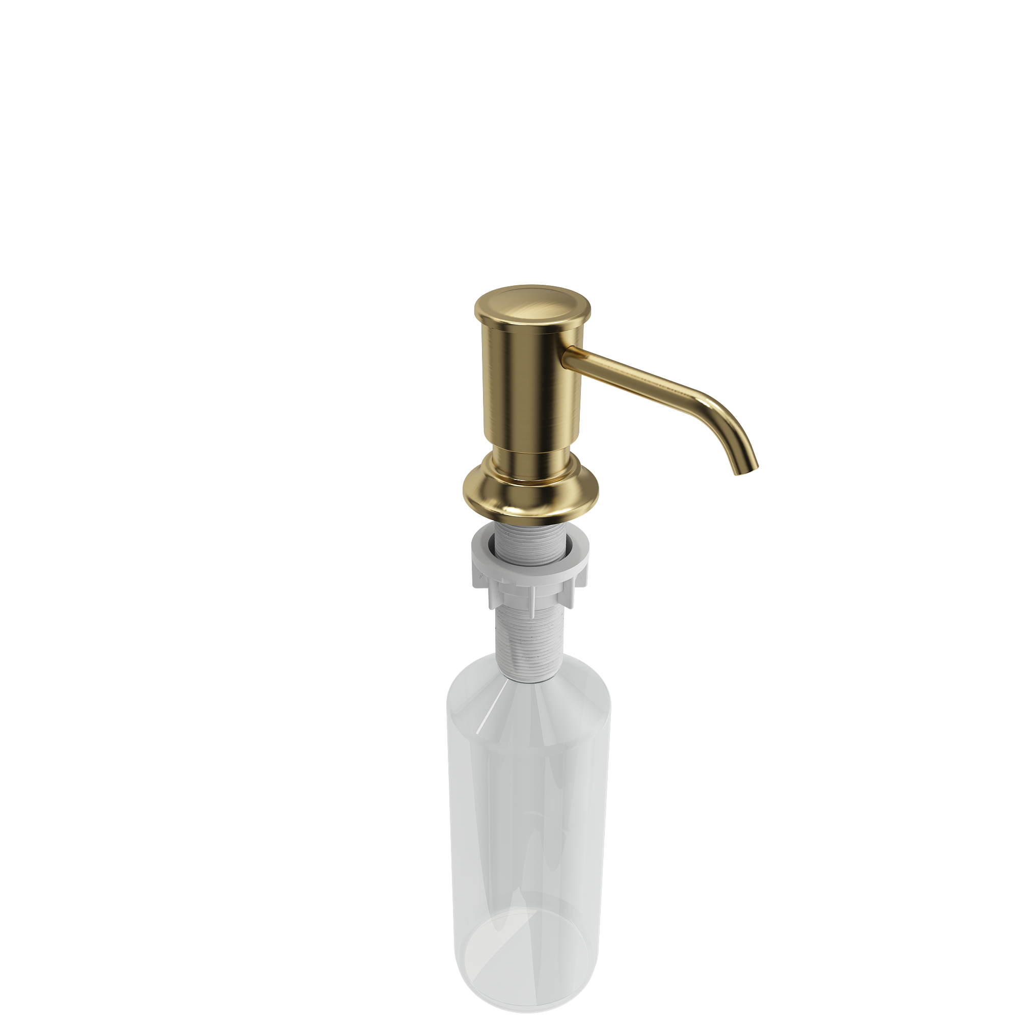 Brass soap dispenser can dicharge liquid soap, dishwashing liquid, or hand lotion in a convenient dispenser with a traditional design matching BOCCHI kitchen faucets. The self-priming pump is constructed from 100% lead-free brass for maximum durability. The pump swivels 360° and is refillable from above for added convenience.