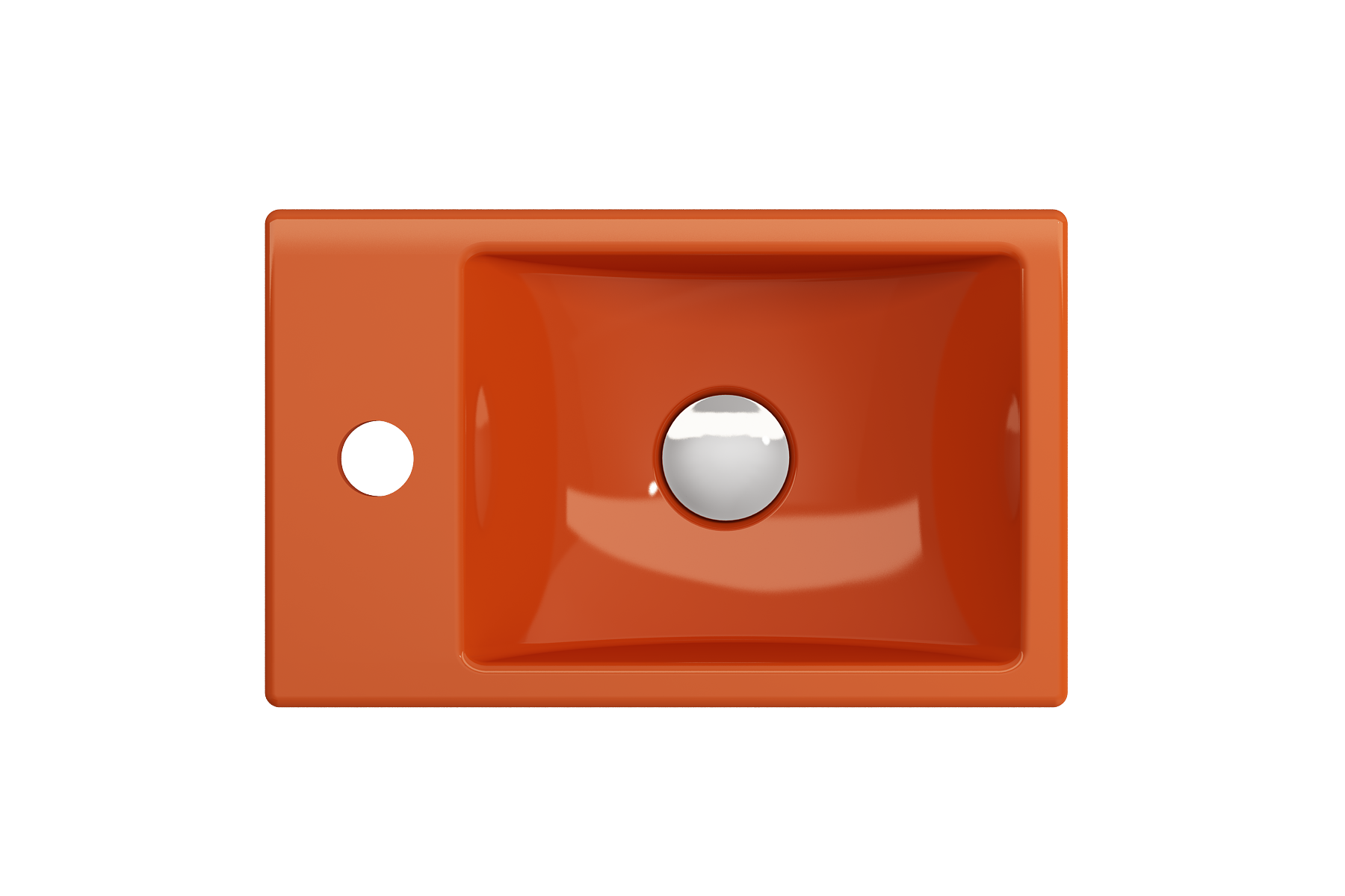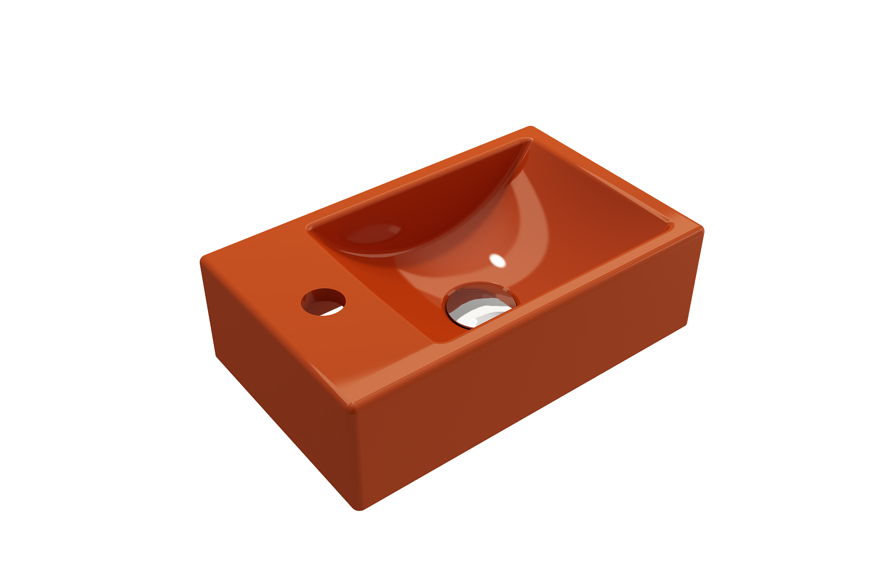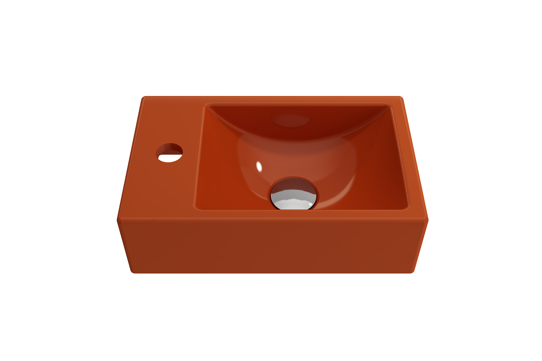 Petite wall-hung sink with single-hole faucet on left-side-facing. May be set on counter as a vessel.