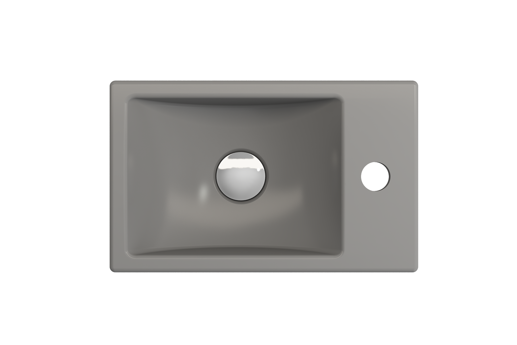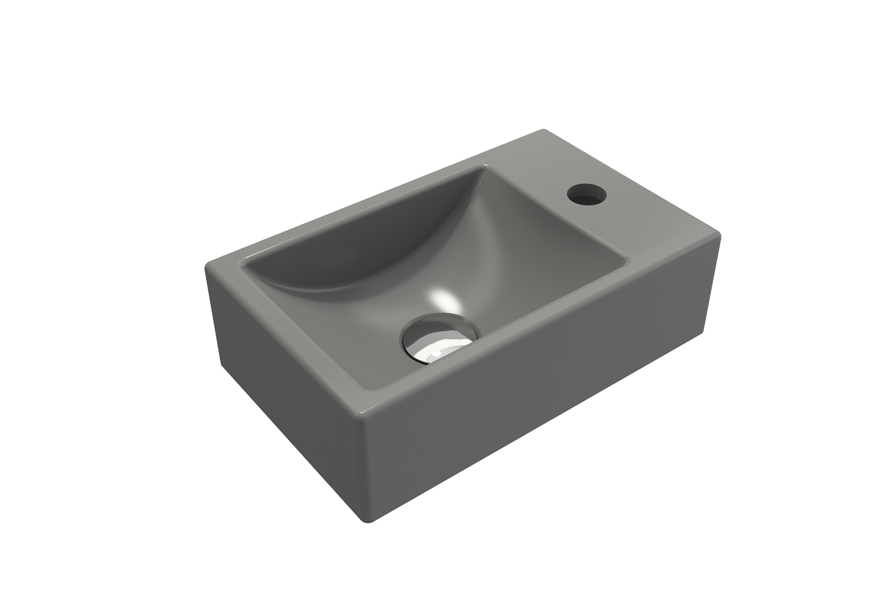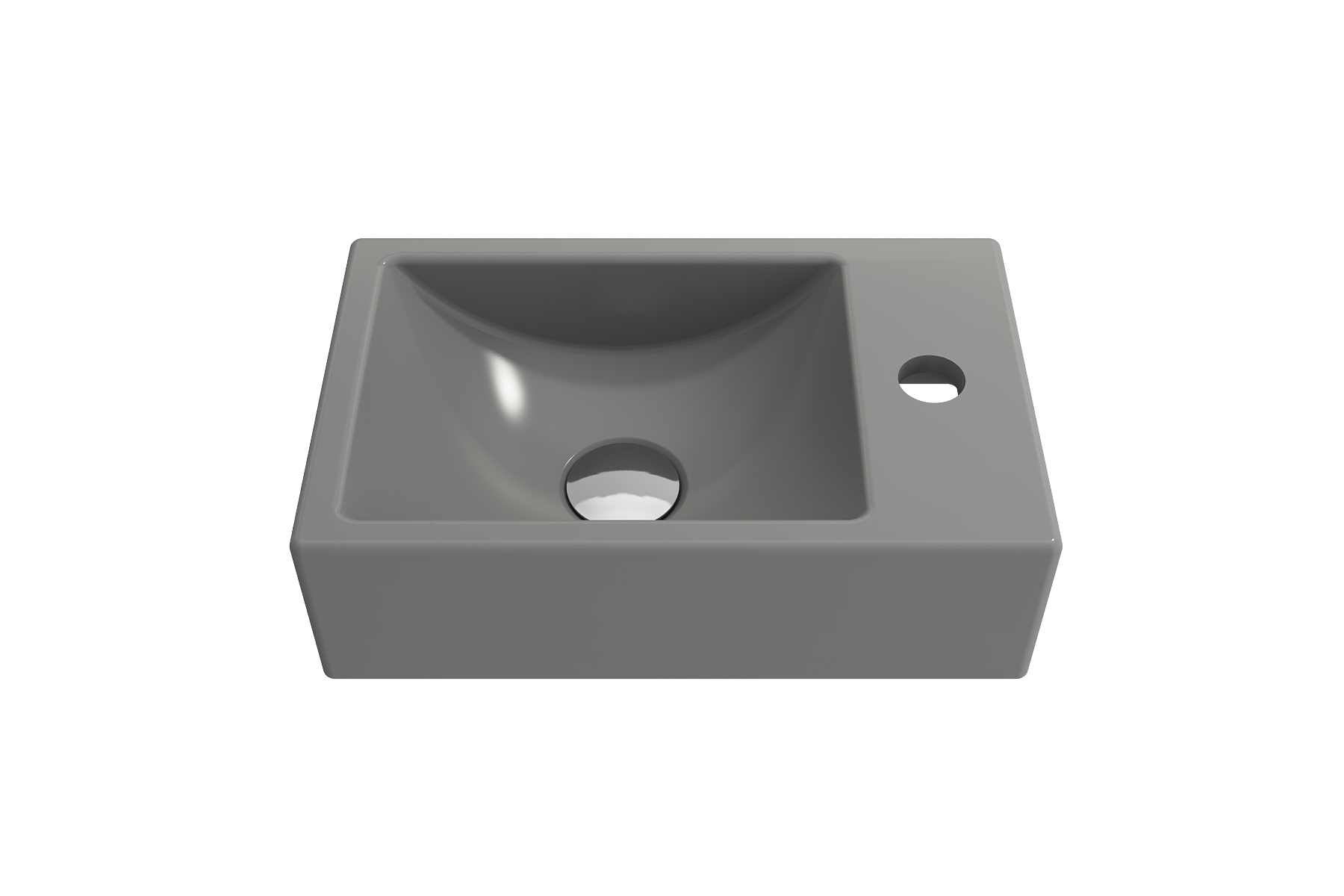 Petite wall-hung sink with single-hole faucet on right-side-facing. May be set on counter as a vessel.