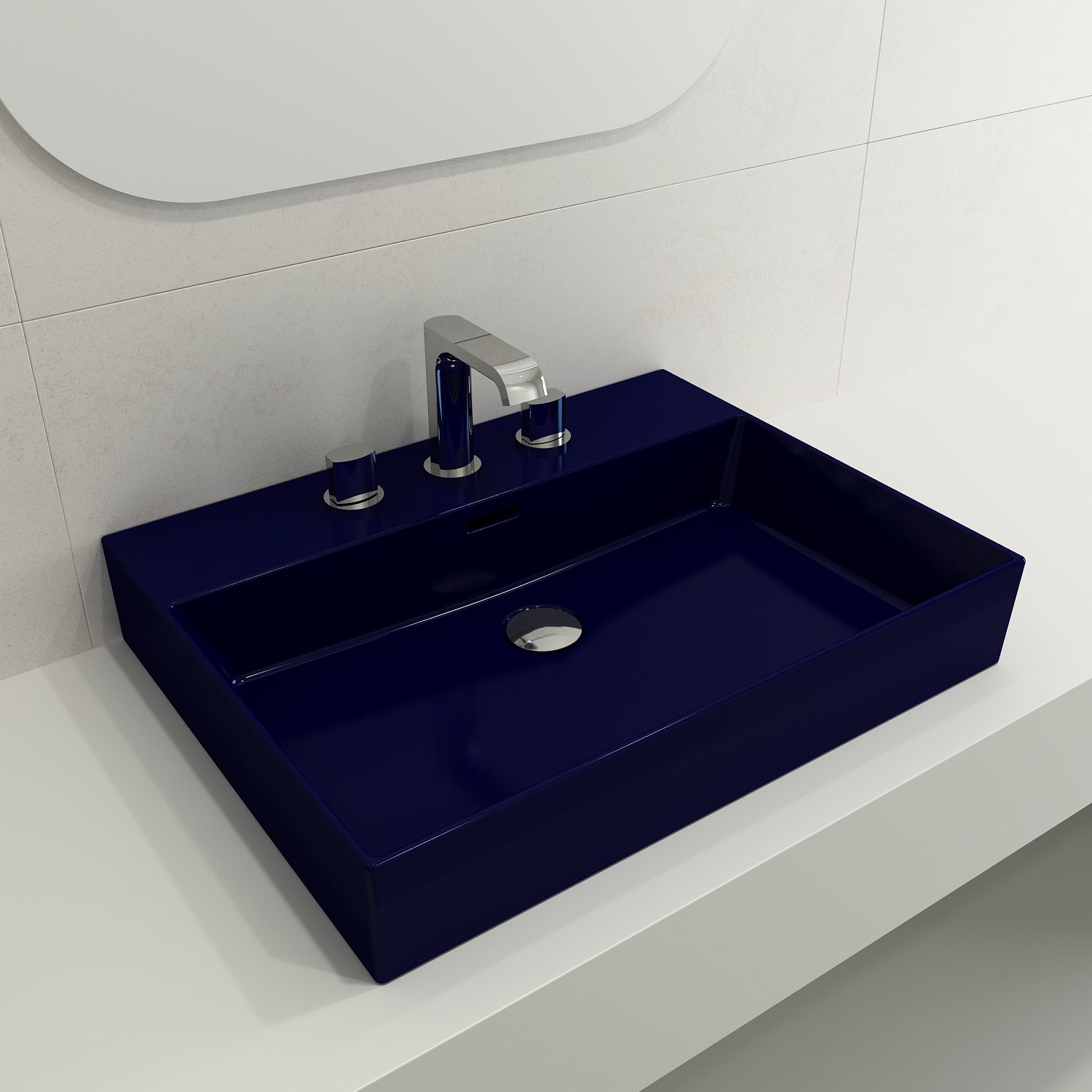 May be set on top of or semi-recessed into counter