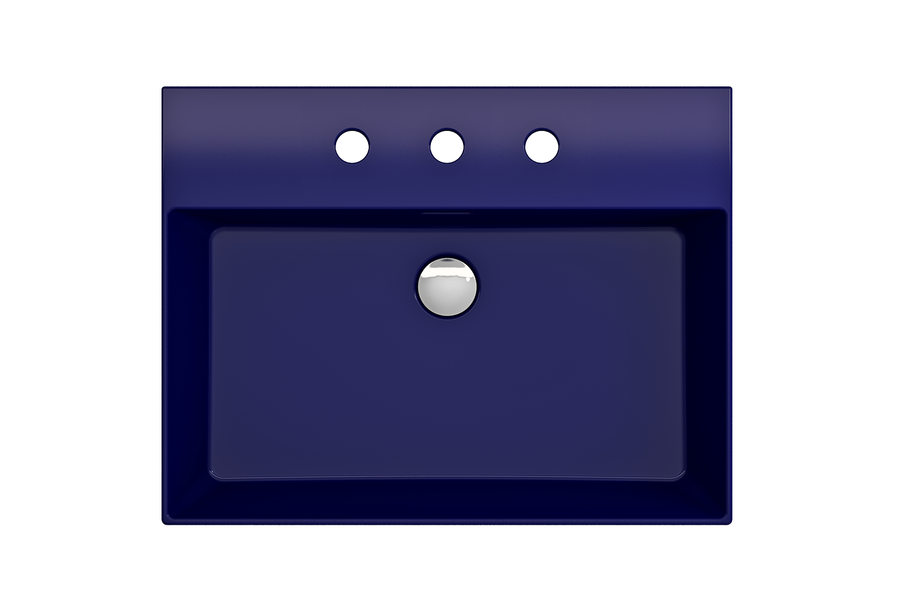 Bathroom sink with 3-hole (in.) faucet setting. May be wall-hung, used with metal console legs, or counterset.