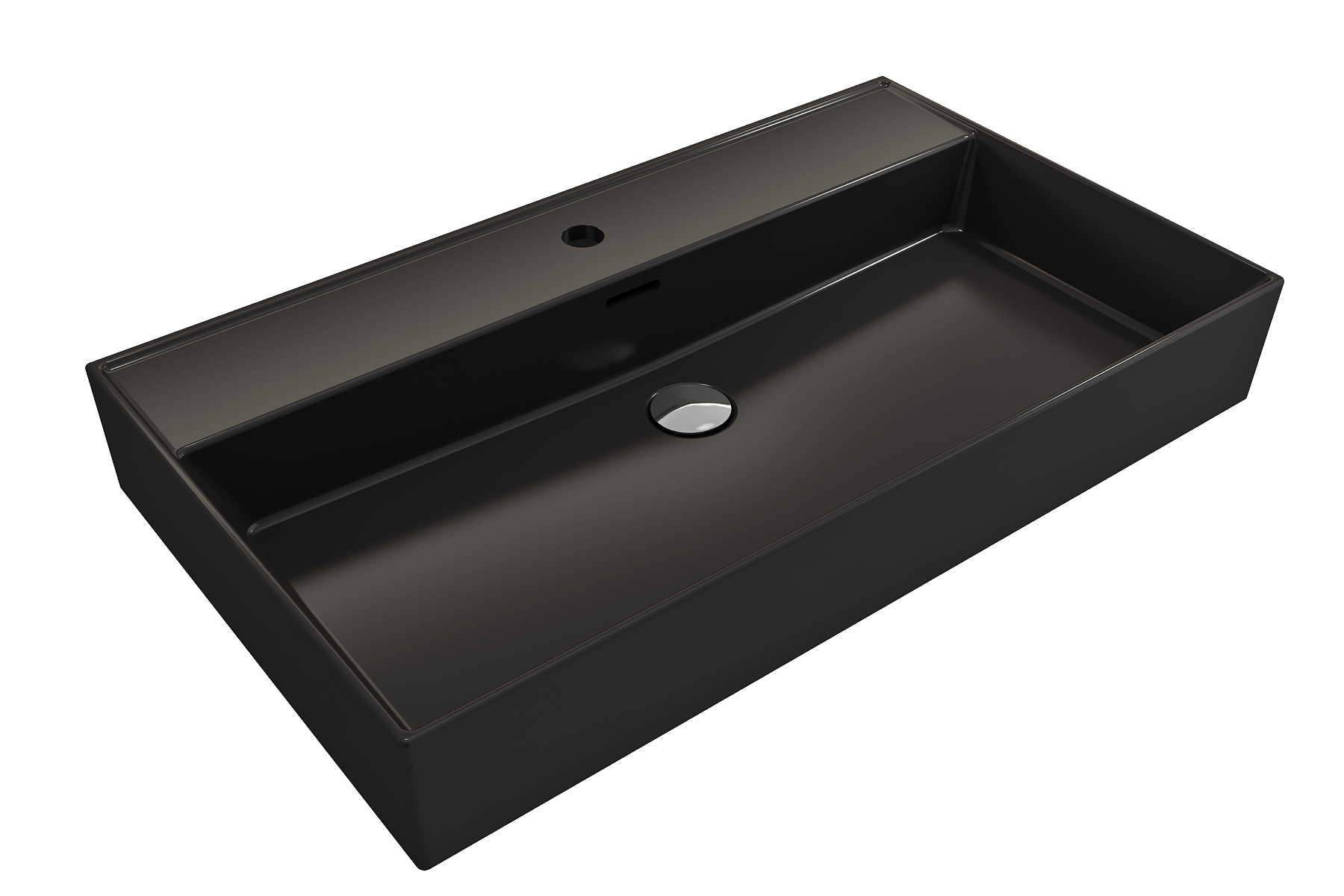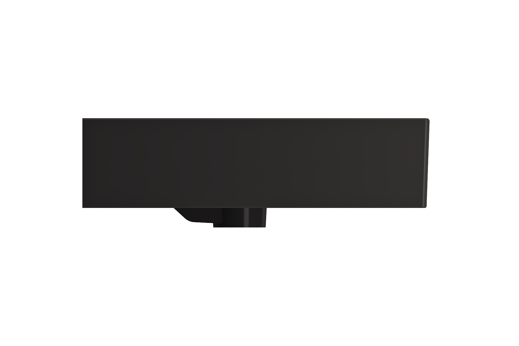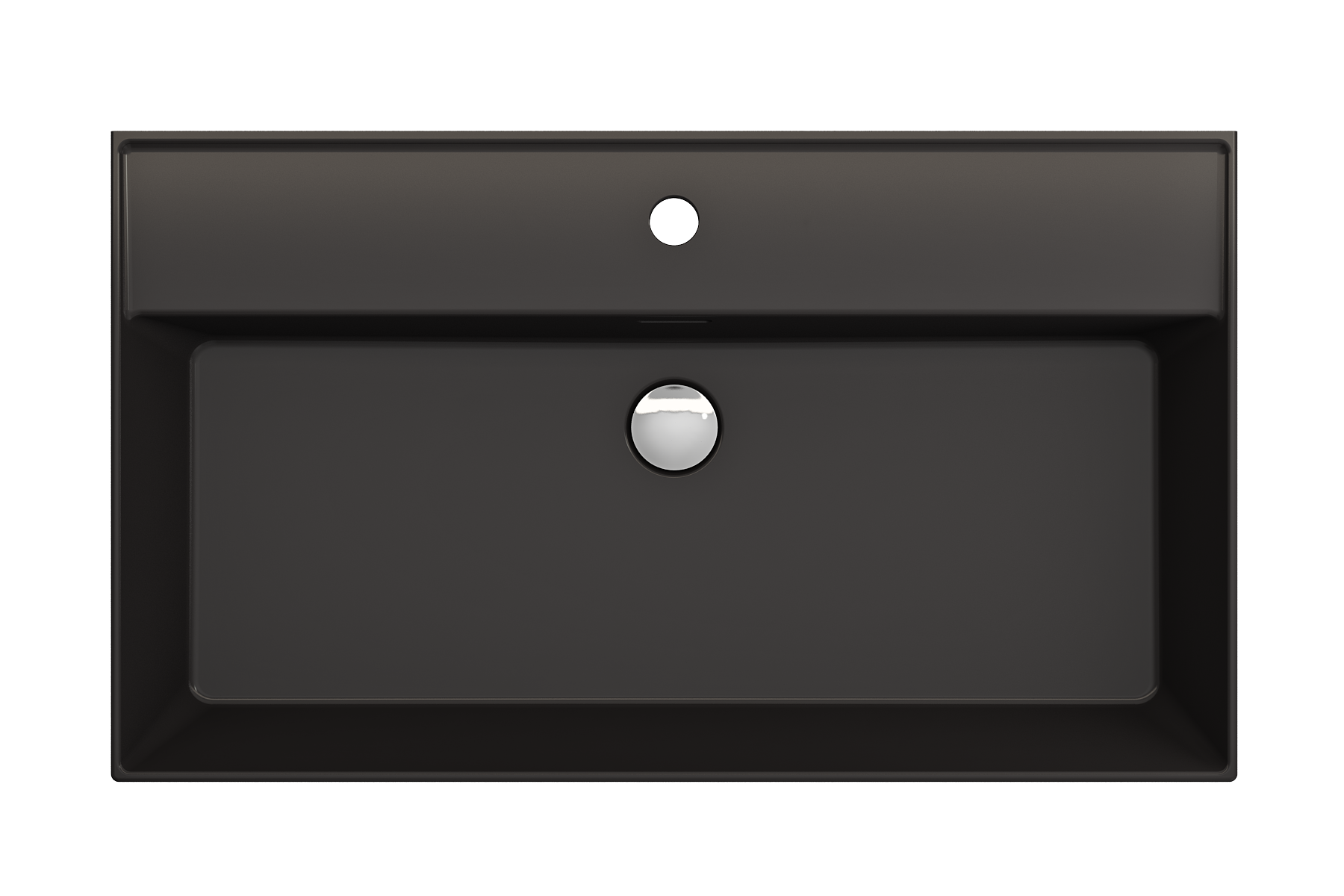 Bathroom sink with single-hole faucet setting. May be wall-hung, used with metal console legs, or counterset.