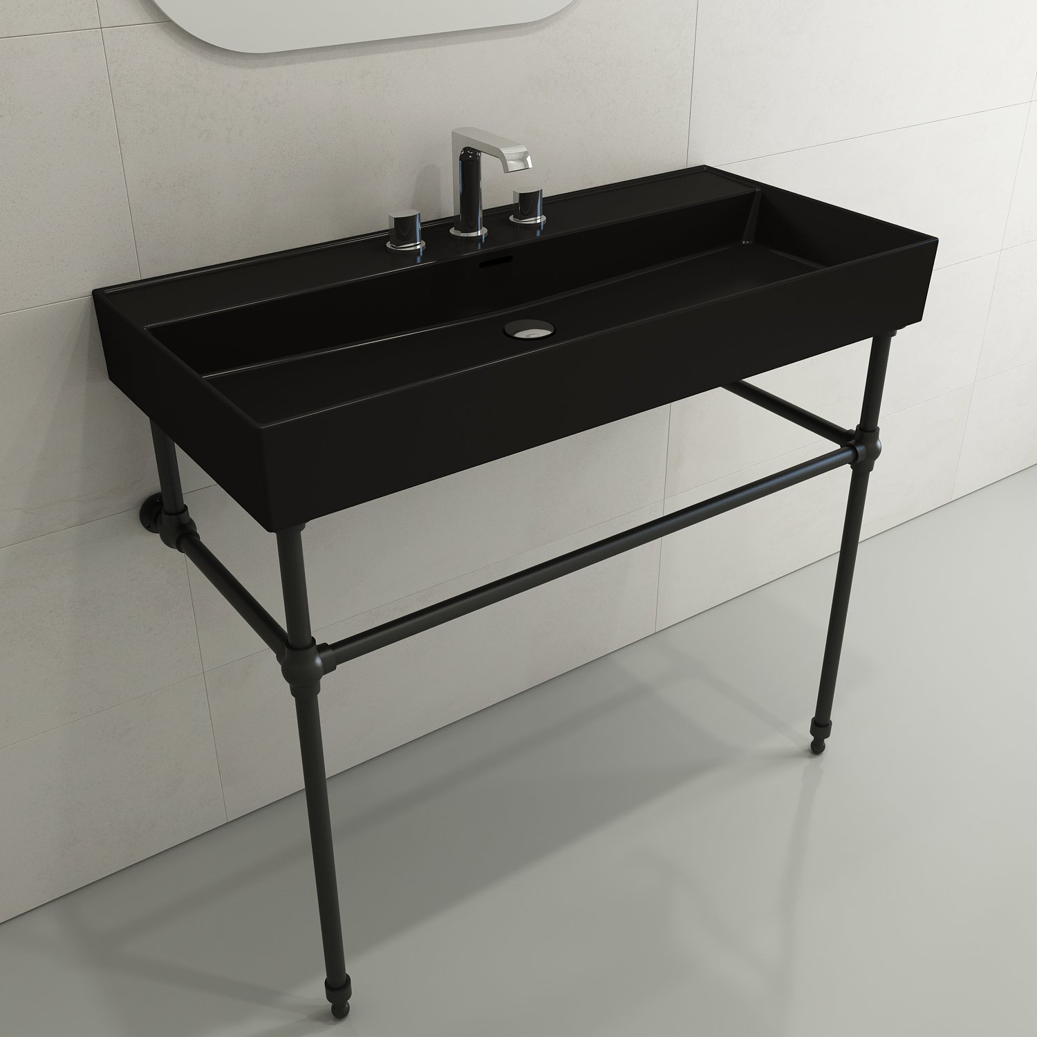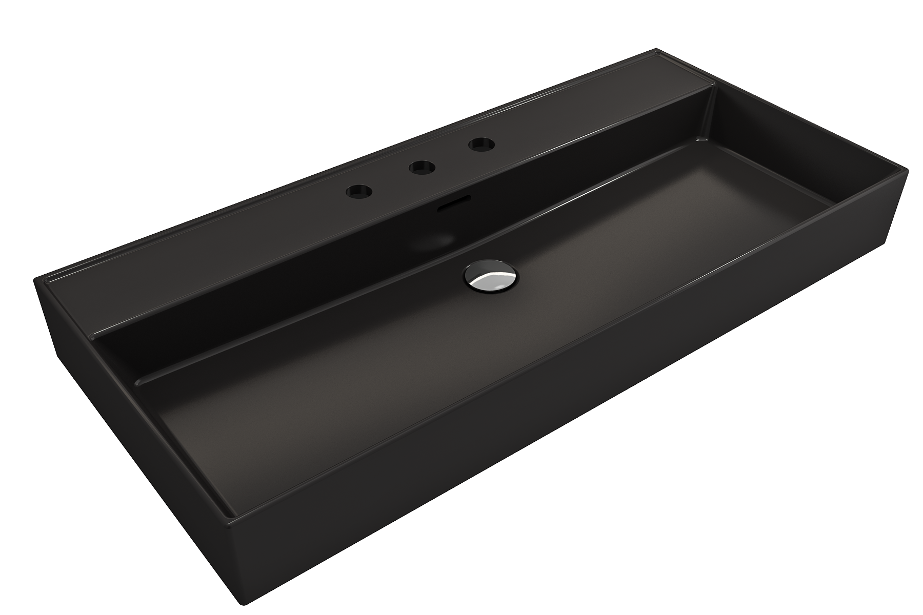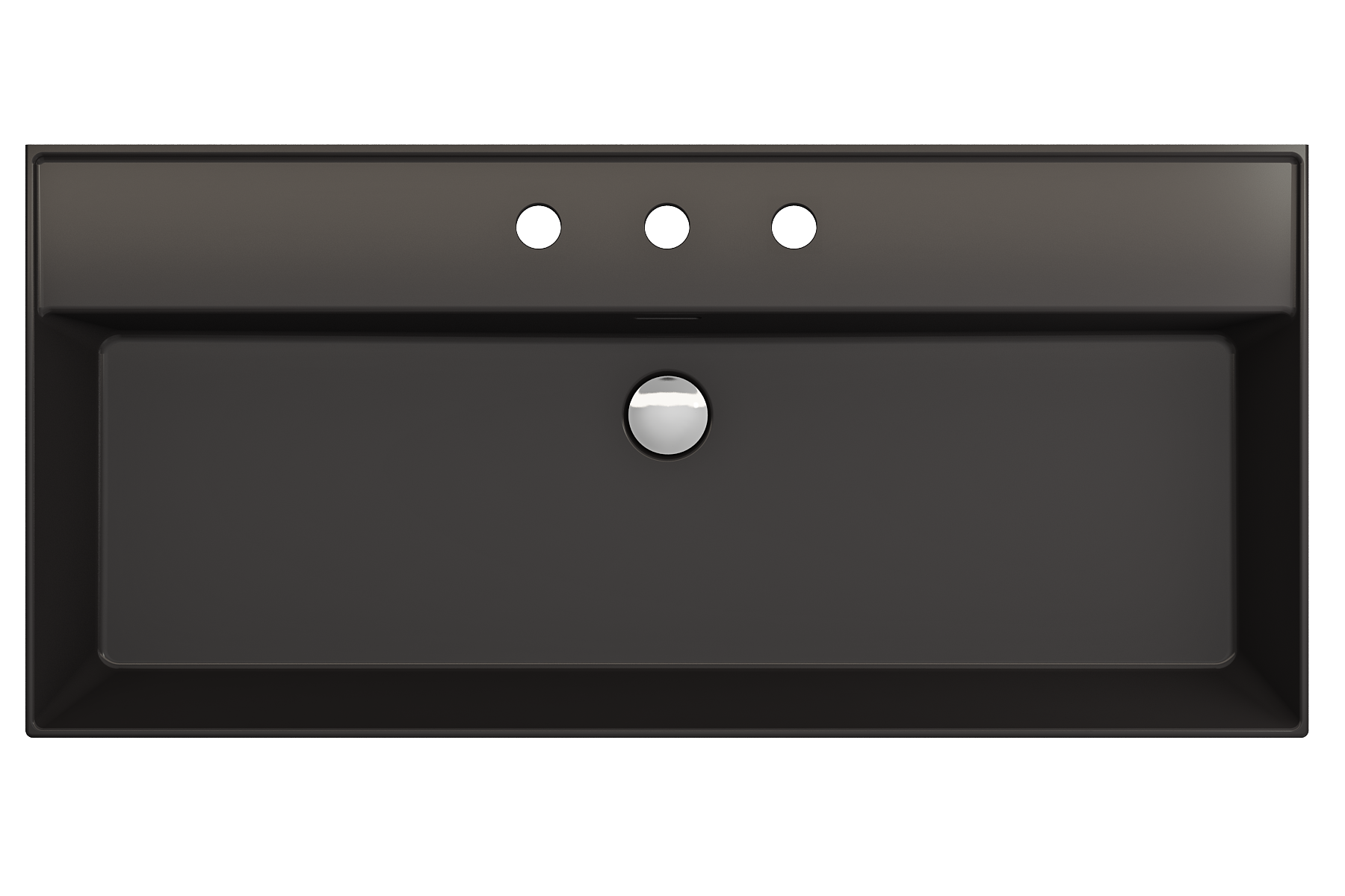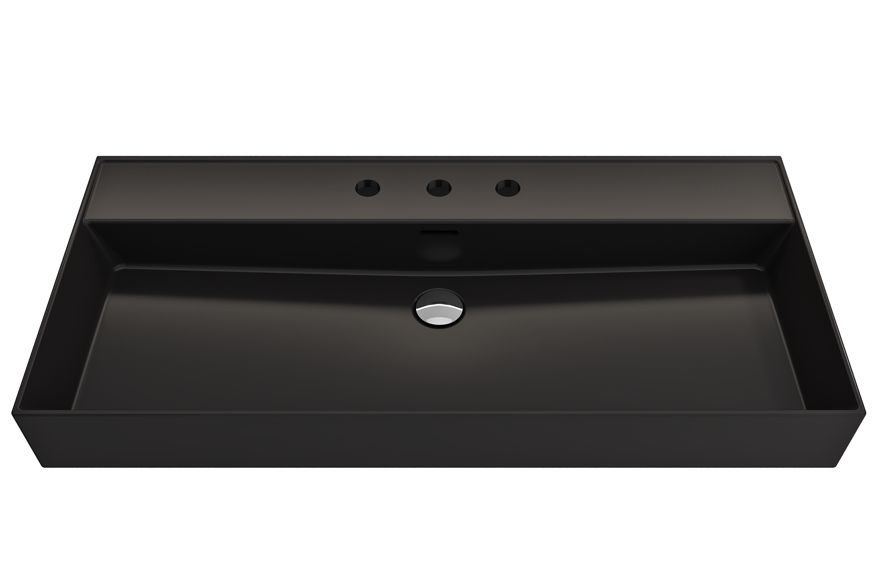 Bathroom sink with 3-hole (in.) faucet setting. May be wall-hung, used with metal console legs, or counterset.