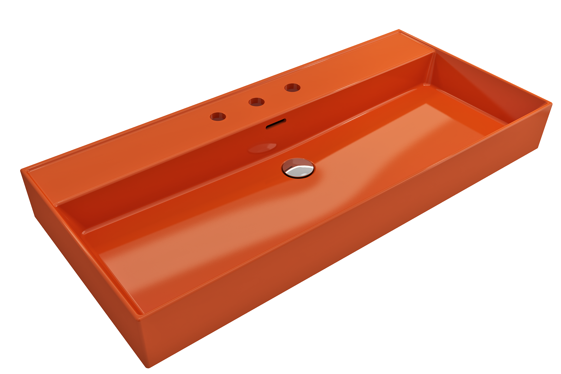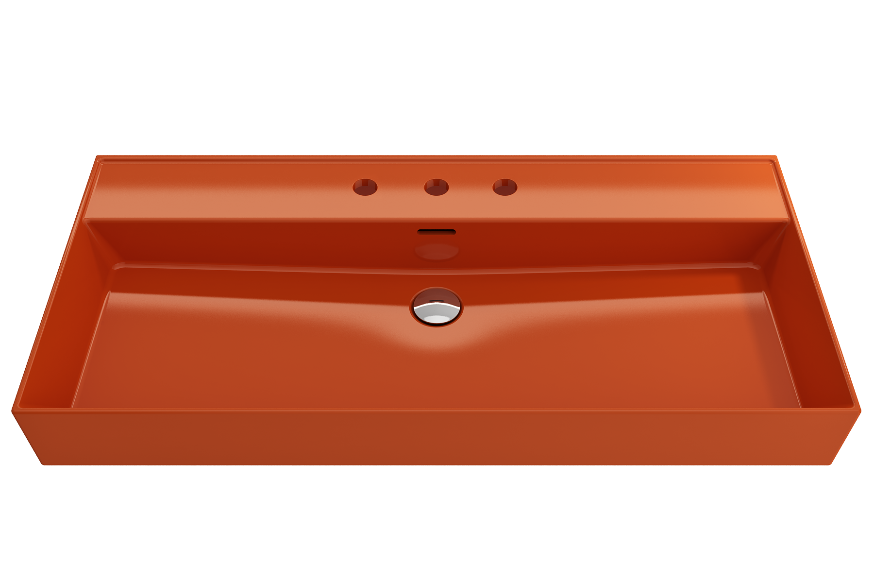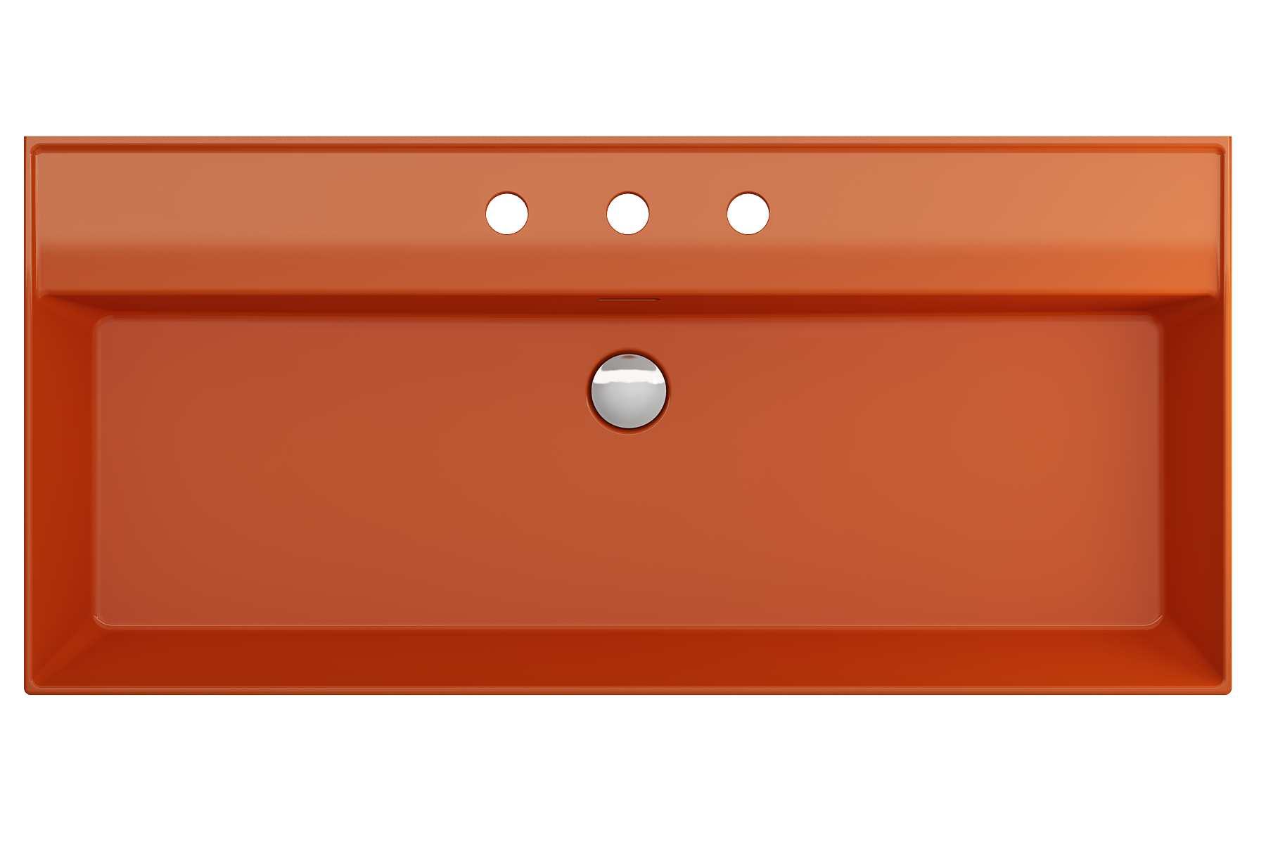 Bathroom sink with 3-hole (in.) faucet setting. May be wall-hung, used with metal console legs, or counterset.