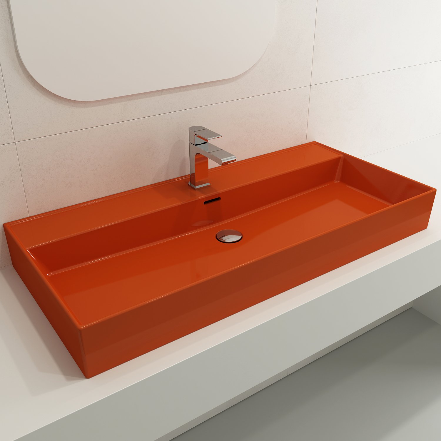 May be set on top of or semi-recessed into counter