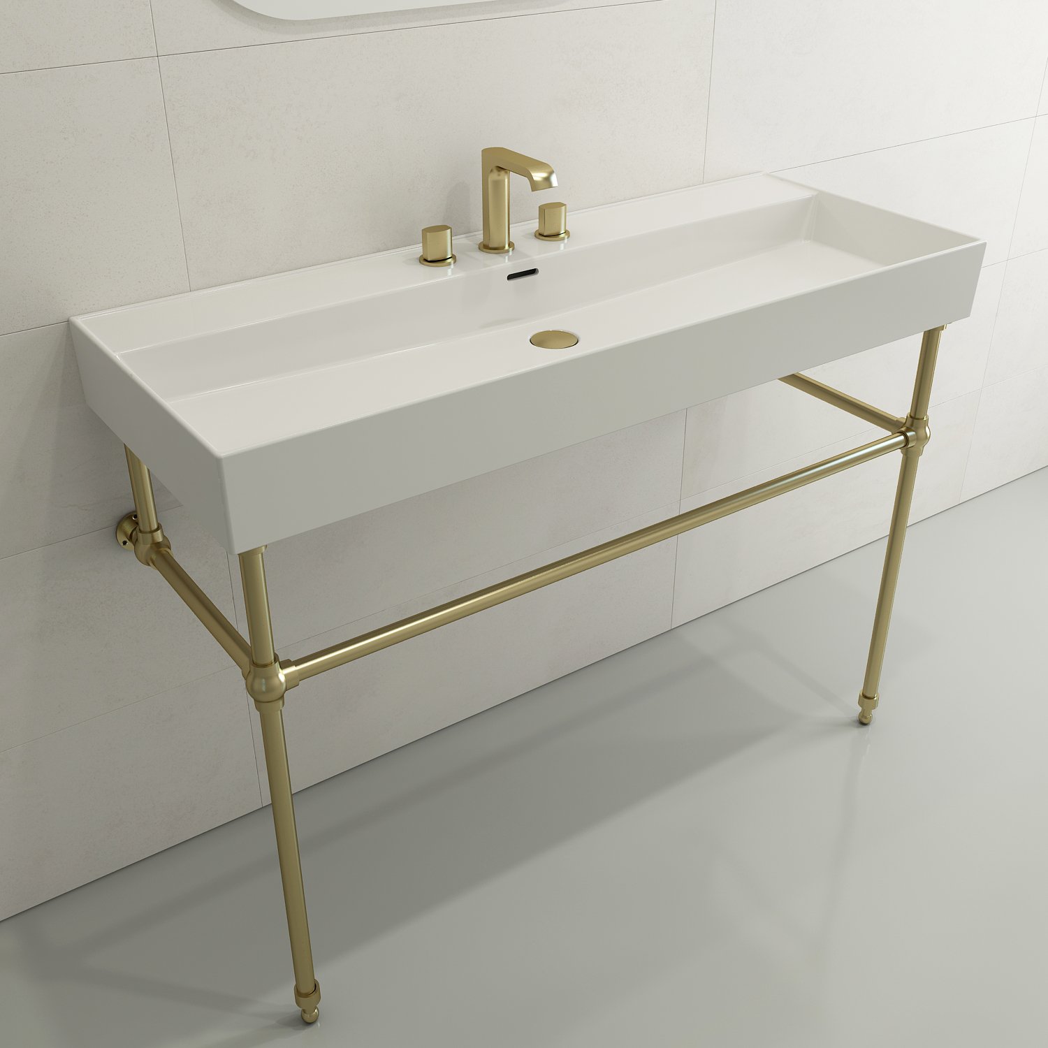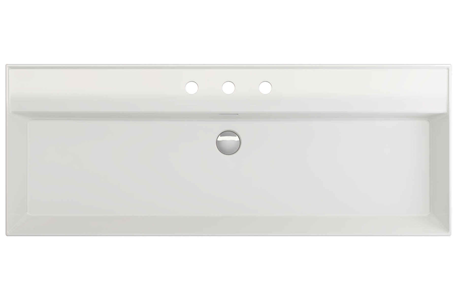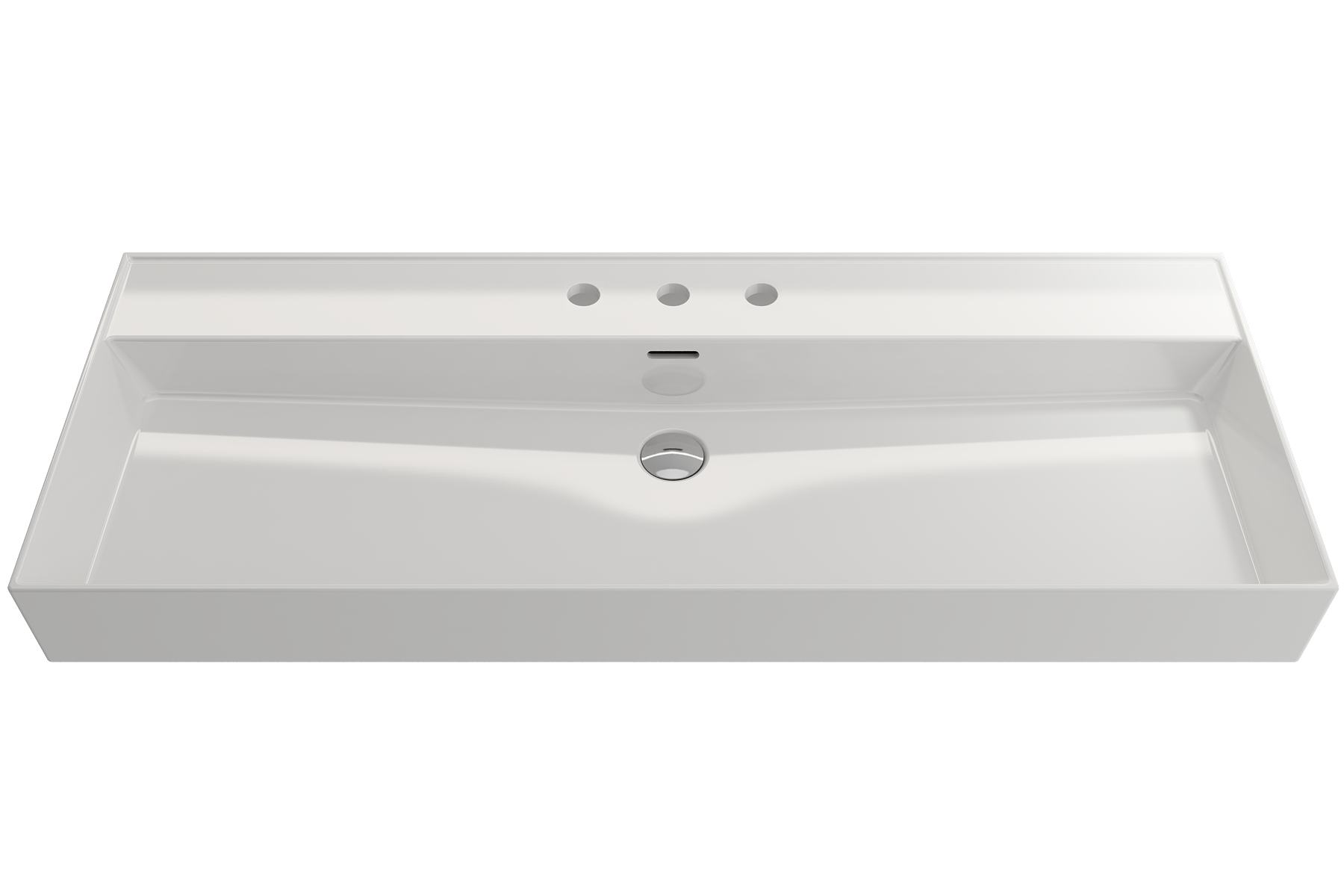 Bathroom sink with 3-hole (8in.)Â faucet setting. May be wall-hung, used with metal console legs, or counterset.