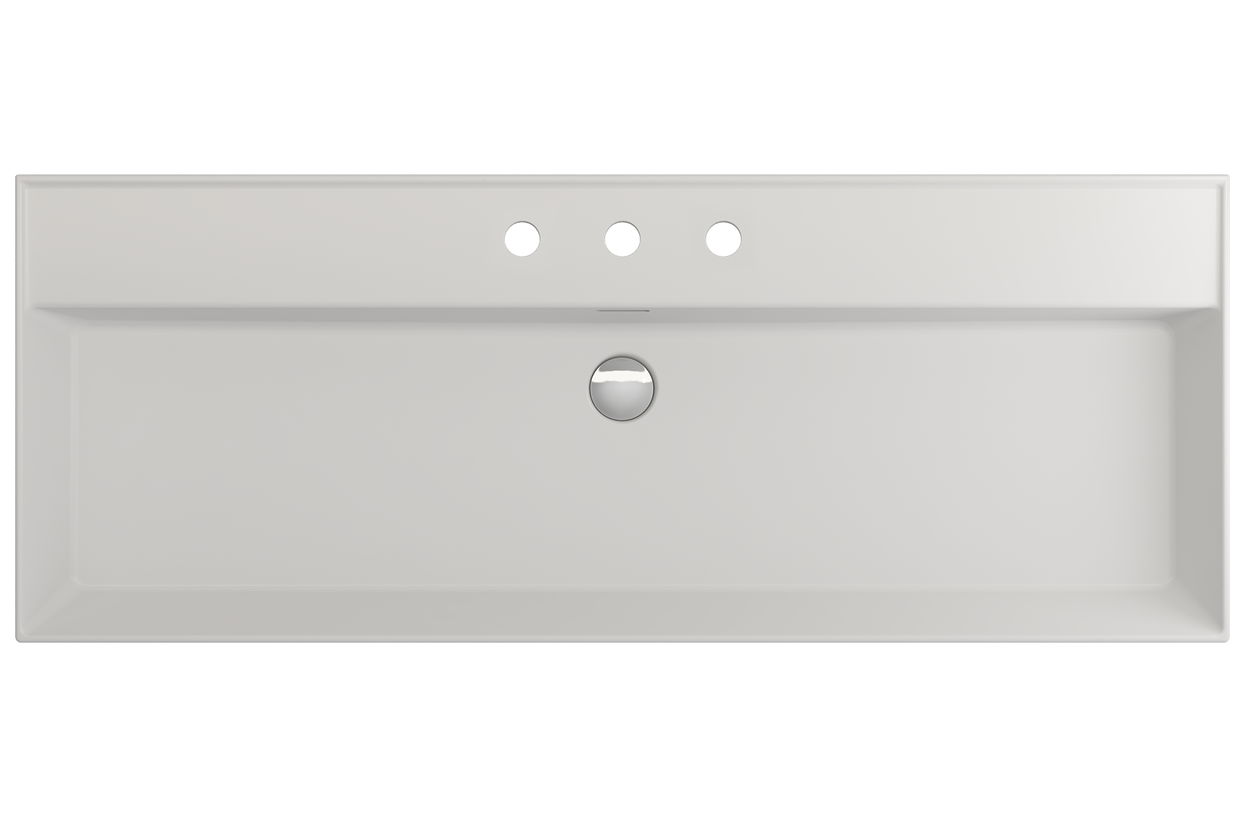 Bathroom sink with 3-hole (8in.)Â faucet setting. May be wall-hung, used with metal console legs, or counterset.
