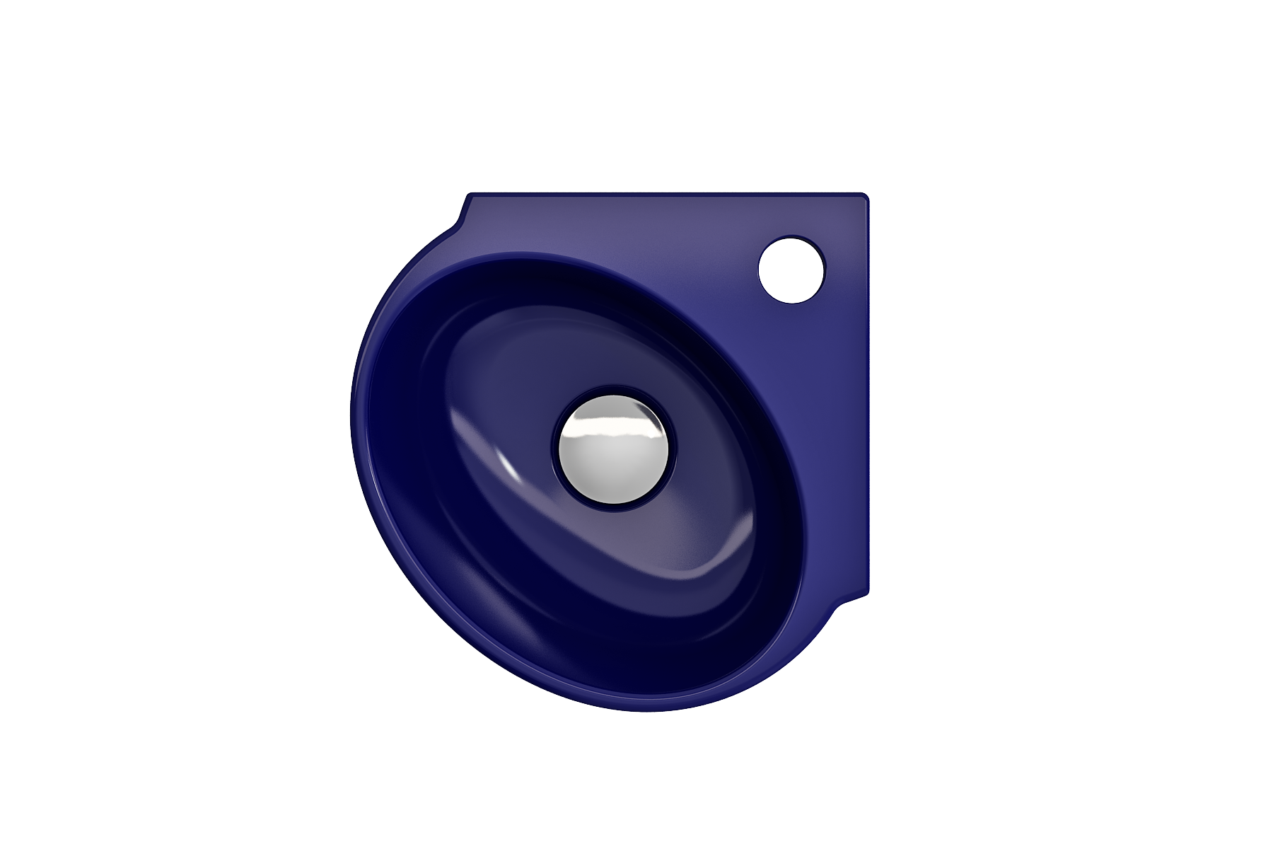 Wall-hung corner sink with single-hole faucet setting and overflow.