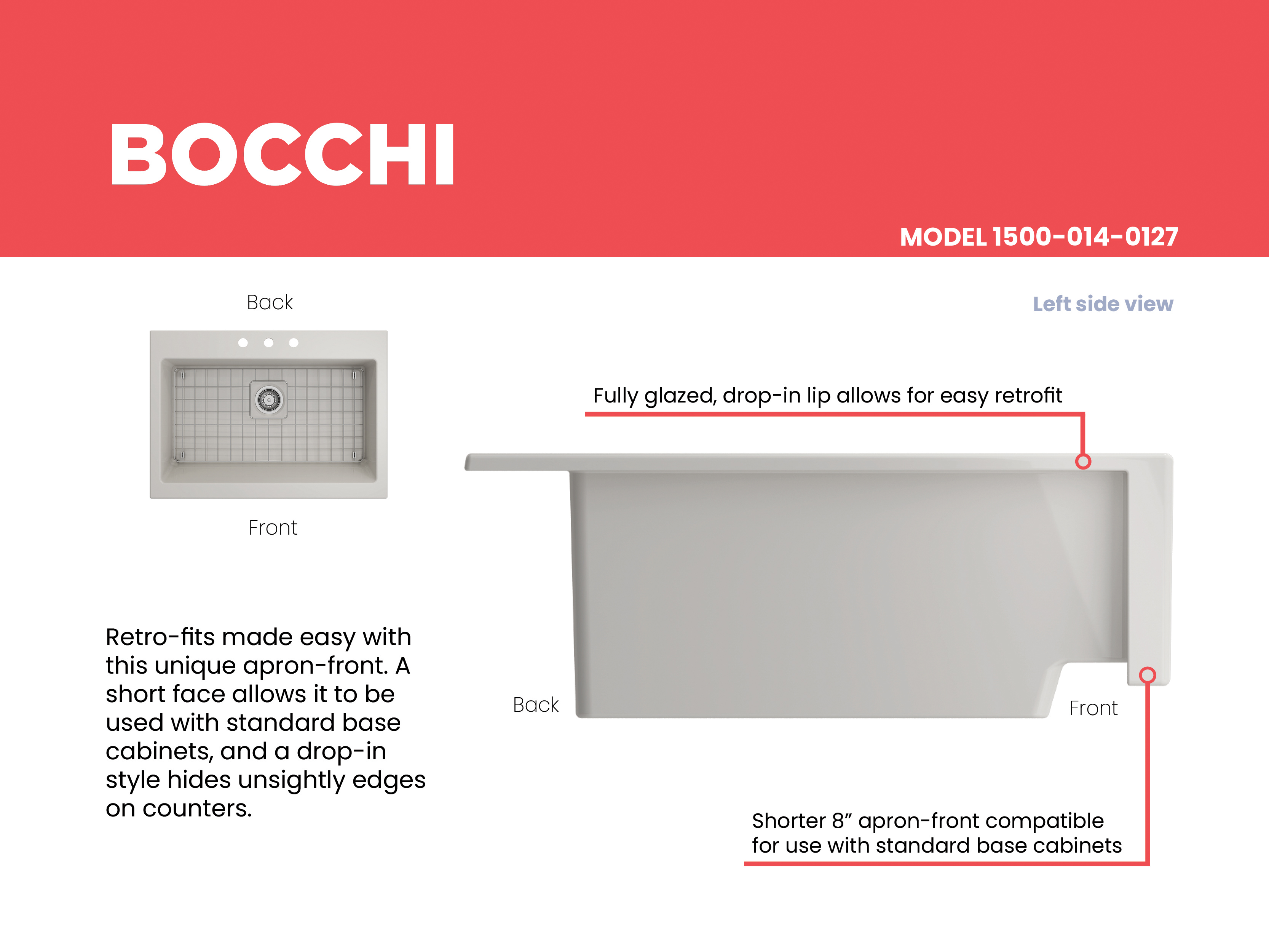 BOCCHI Farmhouse Sinks bring back the ultimate material to your kitchen. Fireclay, a 100% natural organic and recyclable material used by craftsman for centuries to create timeless appliances has now returned to your kitchen. With the firing in our kilns up to 2000°F temperatures, Fireclay becomes the most durable material used in today's kitchens. Thus, dealing with extreme heat coming from pots and pans is definitely not a problem. Due to their special glaze coating fused with the fireclay body, our sinks have a non-porous, uniform, scratch and stain resistant surface. With its protective bottom grid and distinctive looks, BOCCHI Farmhouse Sinks are truly crafted to match your design and functional desires.