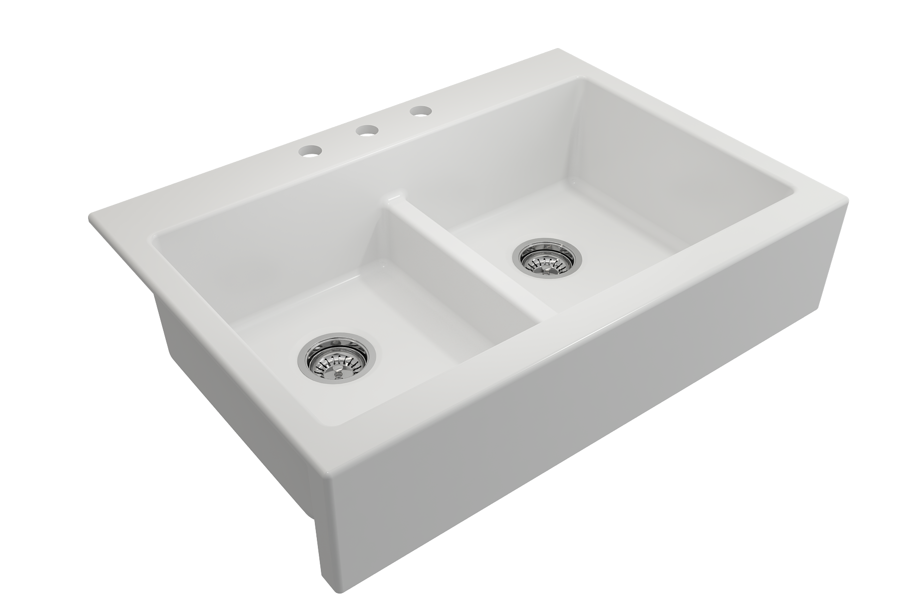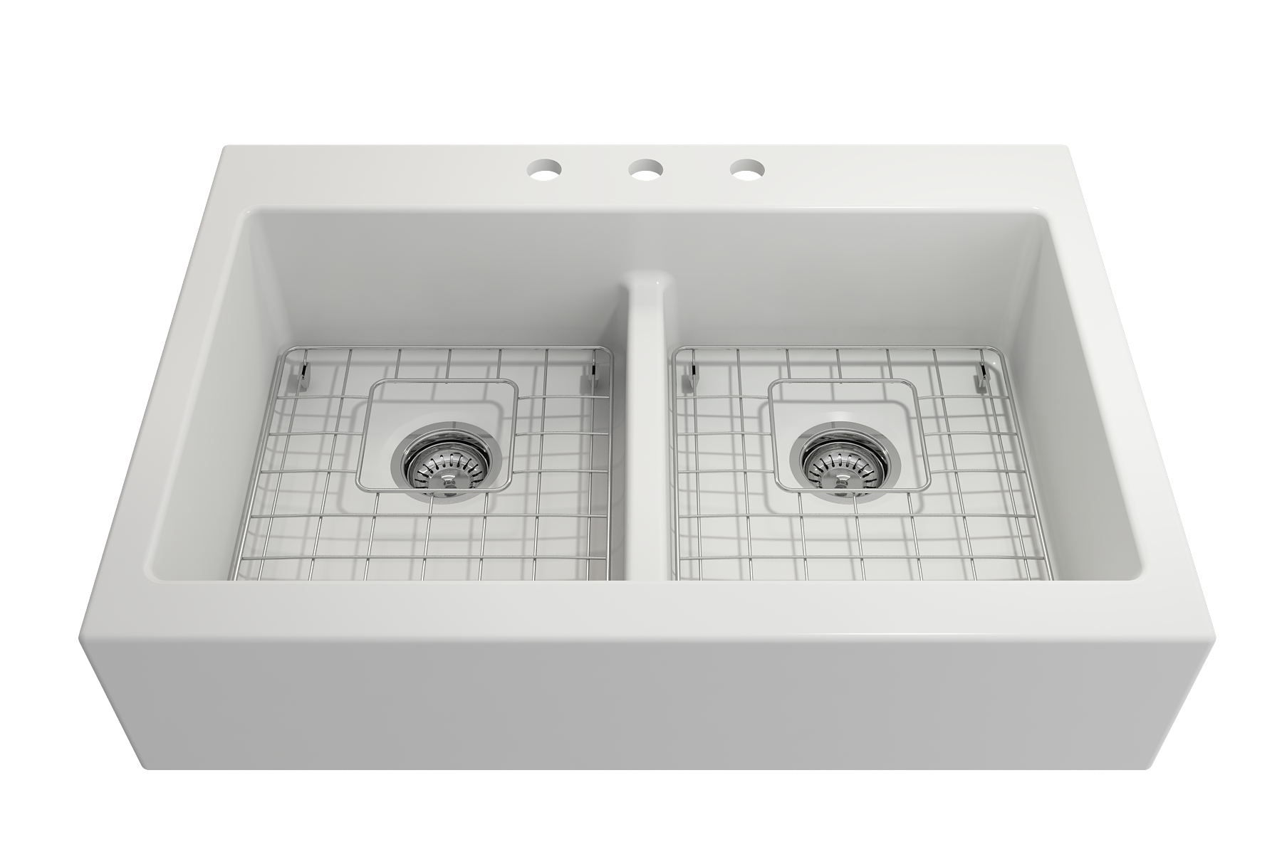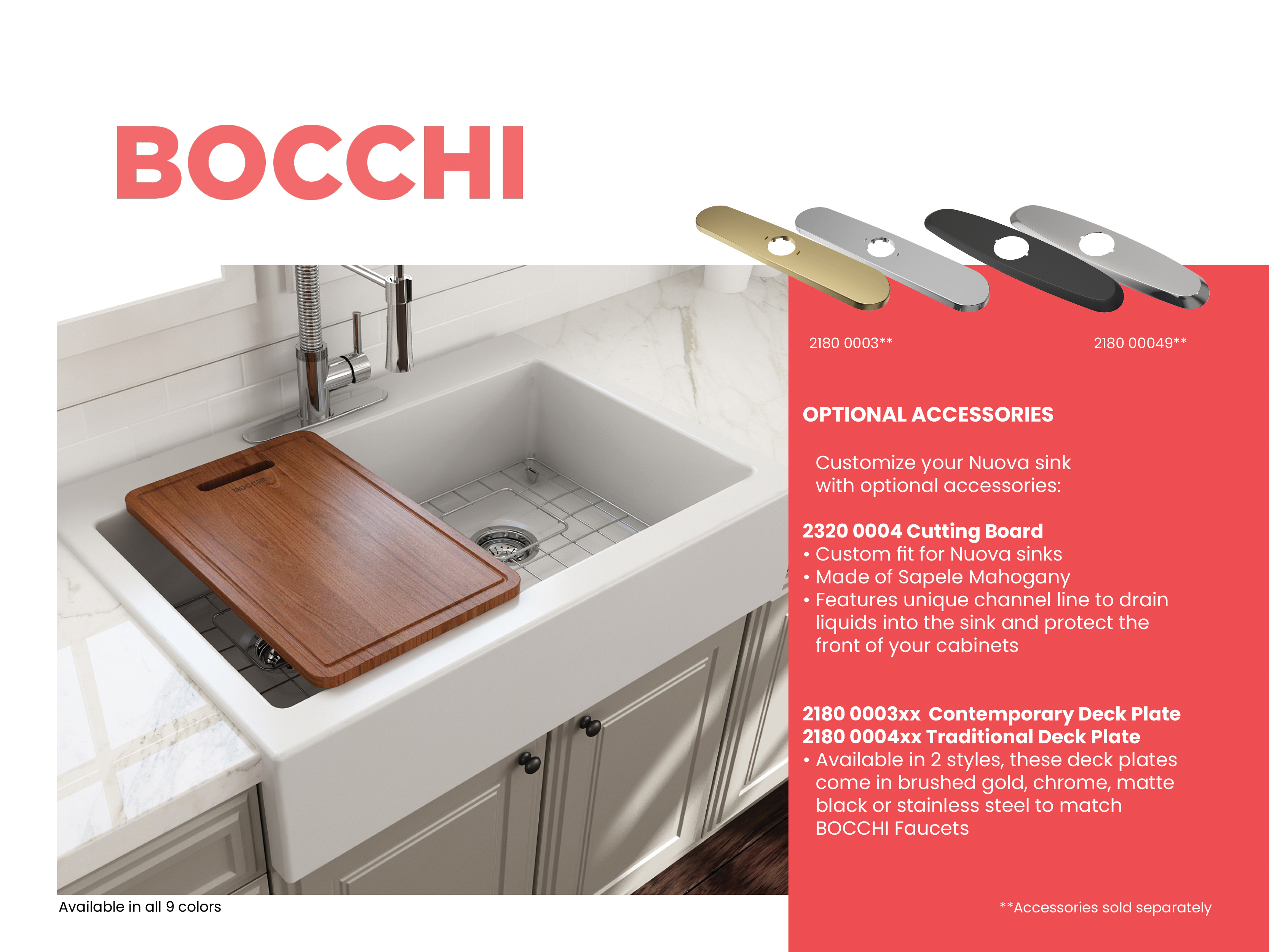 BOCCHI Farmhouse Sinks bring back the ultimate material to your kitchen. Fireclay, a 100% natural organic and recyclable material used by craftsman for centuries to create timeless appliances has now returned to your kitchen. With the firing in our kilns up to 2000°F temperatures, Fireclay becomes the most durable material used in today's kitchens. Thus, dealing with extreme heat coming from pots and pans is definitely not a problem. Due to their special glaze coating fused with the fireclay body, our sinks have a non-porous, uniform, scratch and stain resistant surface. With its protective bottom grid and distinctive looks, BOCCHI Farmhouse Sinks are truly crafted to match your design and functional desires.