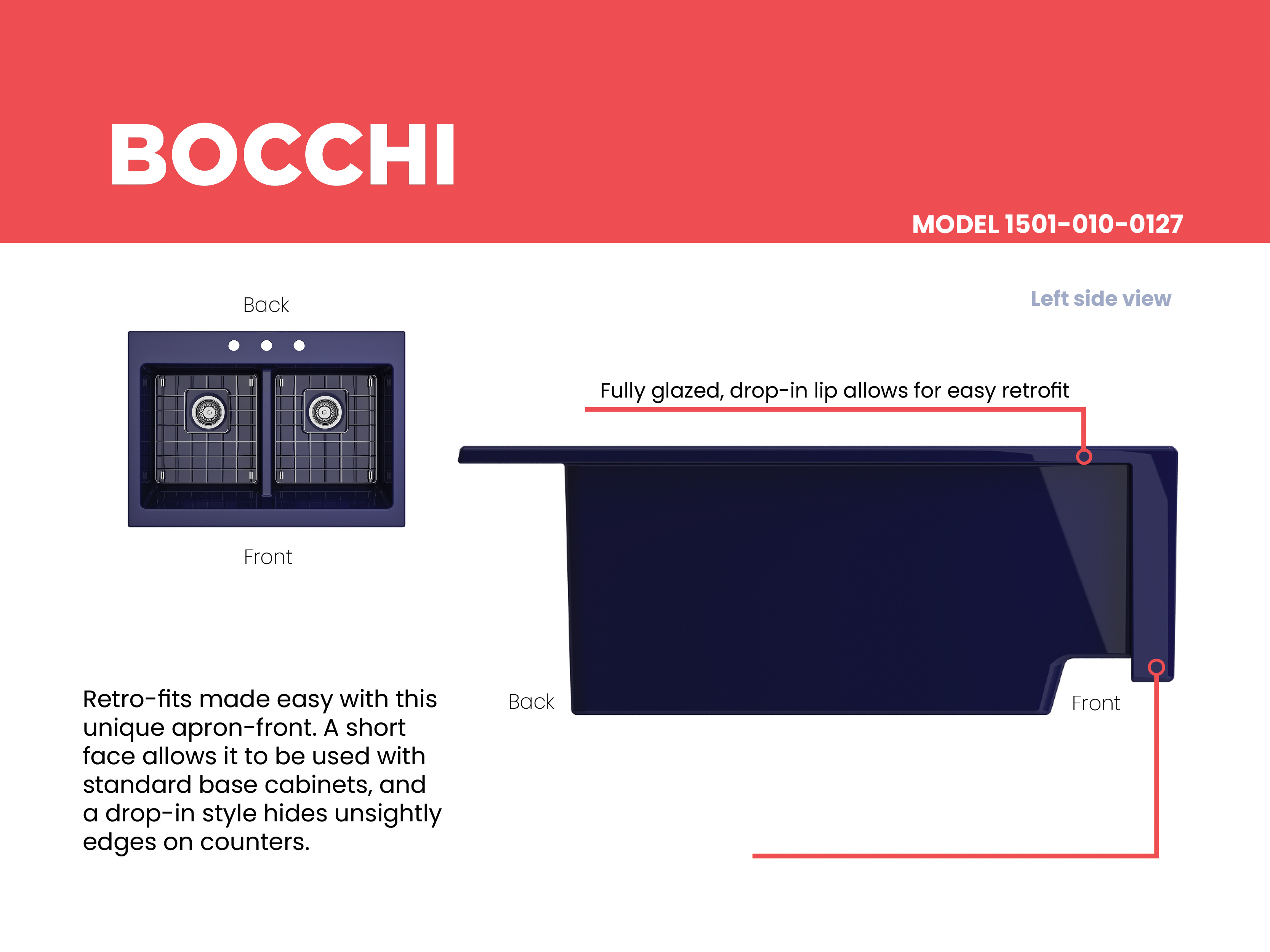 BOCCHI Farmhouse Sinks bring back the ultimate material to your kitchen. Fireclay, a 100% natural organic and recyclable material used by craftsman for centuries to create timeless appliances has now returned to your kitchen. With the firing in our kilns up to 2000°F temperatures, Fireclay becomes the most durable material used in today's kitchens. Thus, dealing with extreme heat coming from pots and pans is definitely not a problem. Due to their special glaze coating fused with the fireclay body, our sinks have a non-porous, uniform, scratch and stain resistant surface. With its protective bottom grid and distinctive looks, BOCCHI Farmhouse Sinks are truly crafted to match your design and functional desires.
