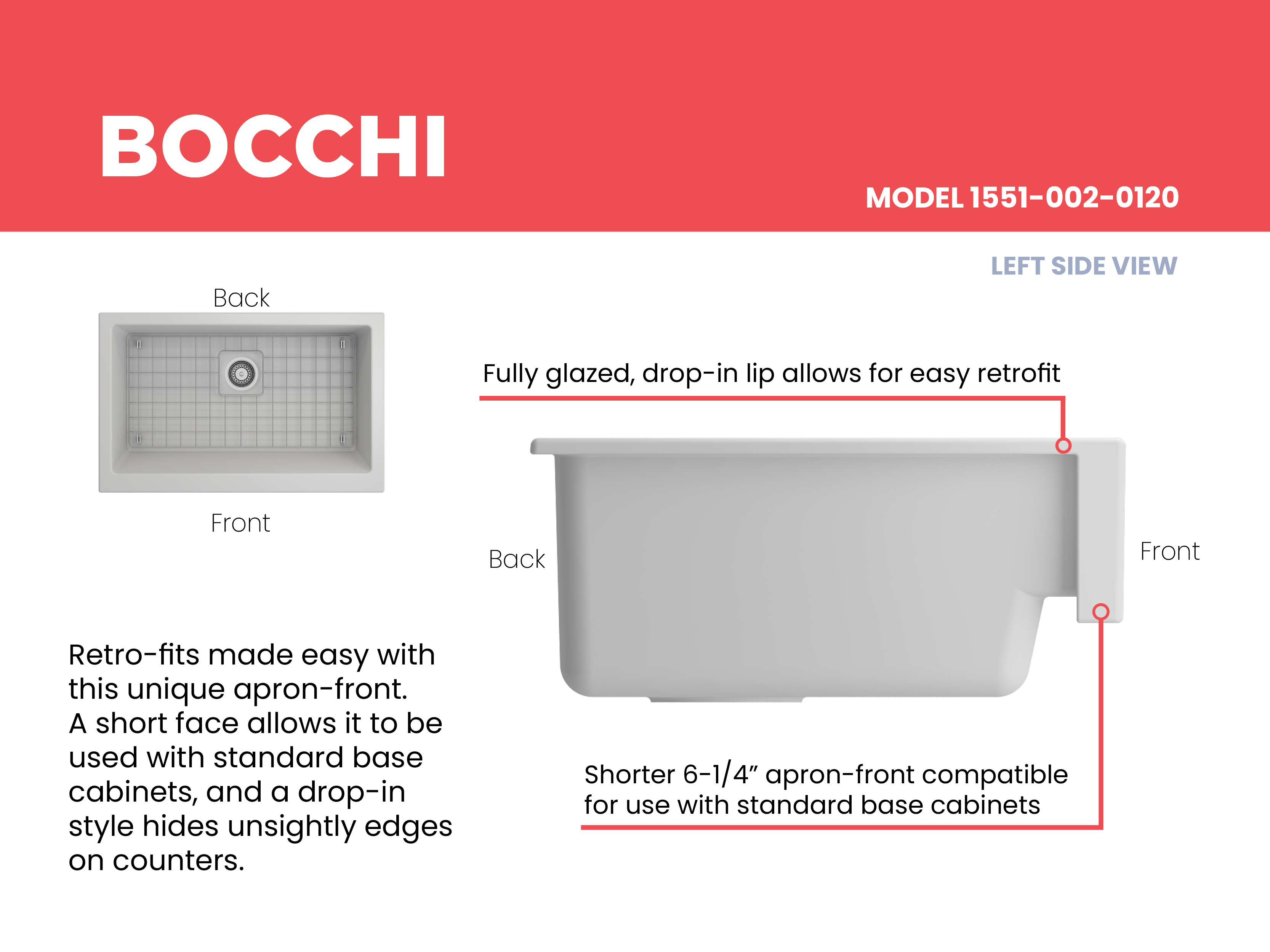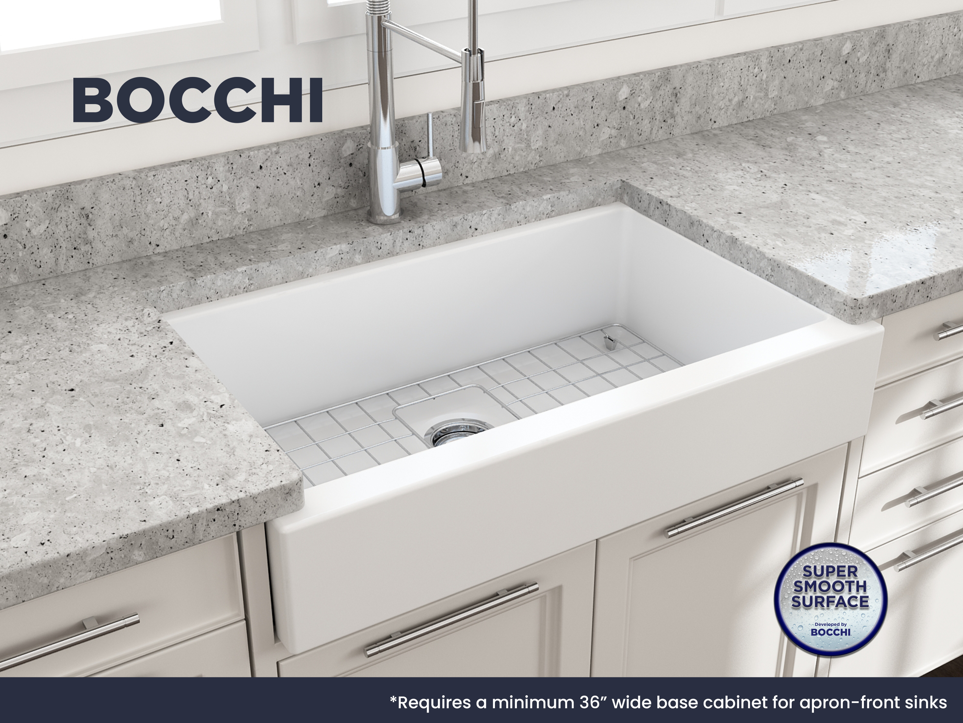 Nuova Pro sinks make remodels a breeze with a specially designed apron-fronts that cleverly hide imperfections and alterations in cabinets and counters. Featuring shorter faces to allow for use on standard base cabinets, they slant back to the deeper depth farmhouses are known for. Retrofits are made easy with these unique apron-fronts. A shorter 6.65Â inch face allow them to be used with standard base cabinets before dropping back to a deeper 10 inches. Drop-in installation recommended to accomodate the faucet deck.