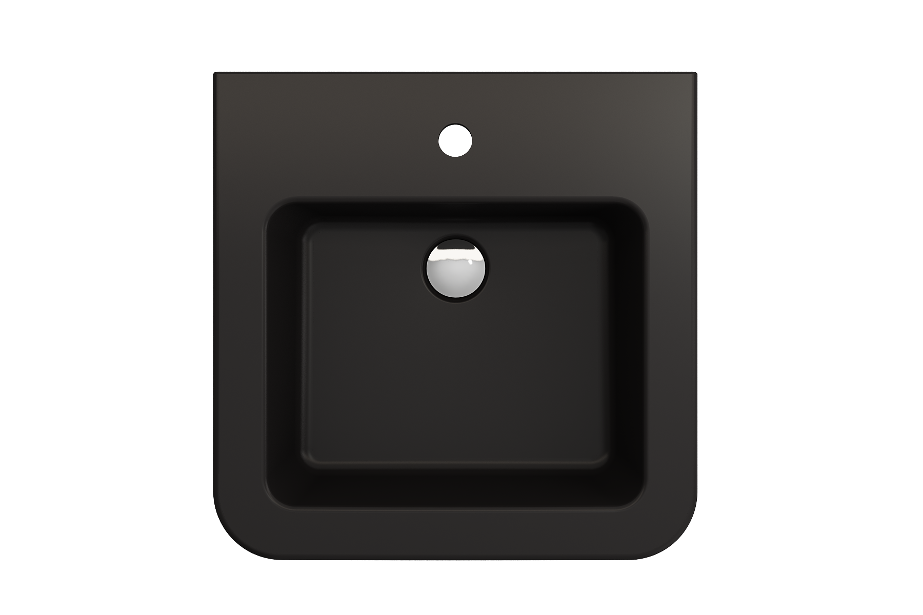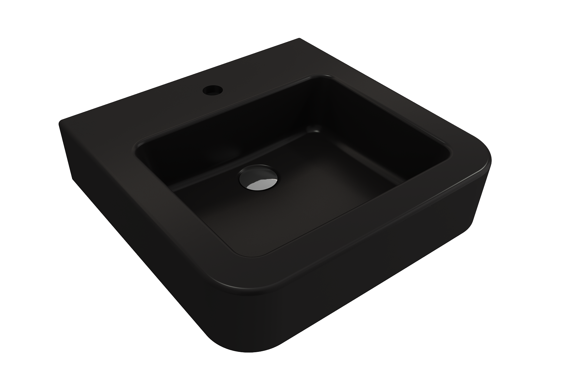 Bathroom sink with single-hole faucet setting. May be wall-hung or counterset.